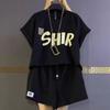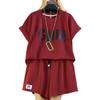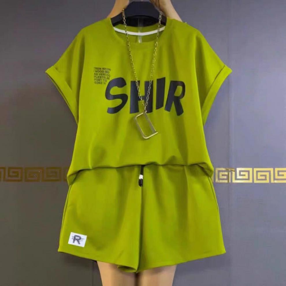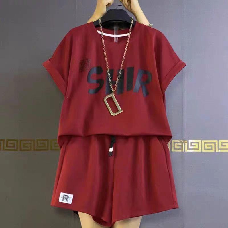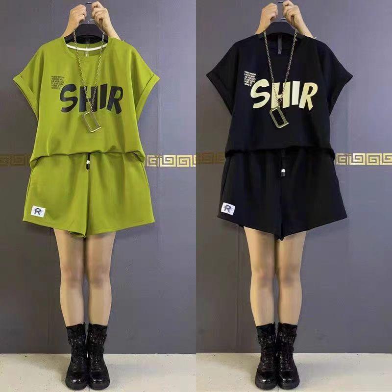 Traje deportivo de ocio para mujer talla grande plus 200 jin reductor de edad entallado cubierto de carne verano para correr conjunto de dos piezas