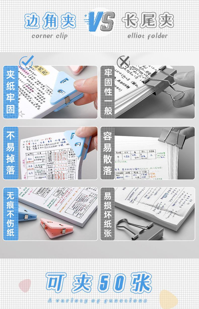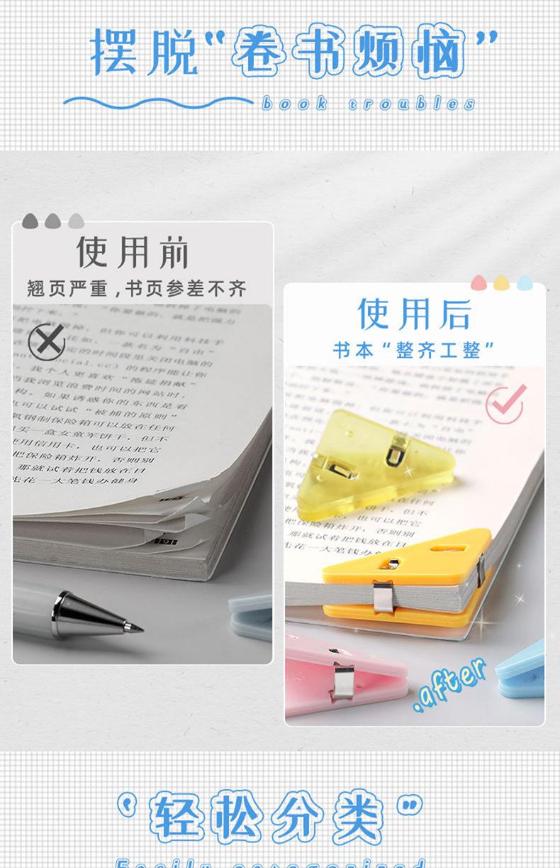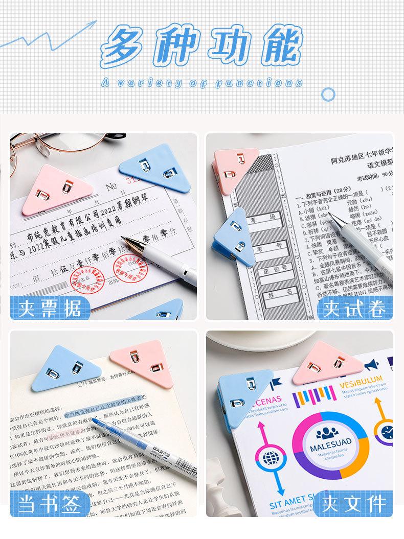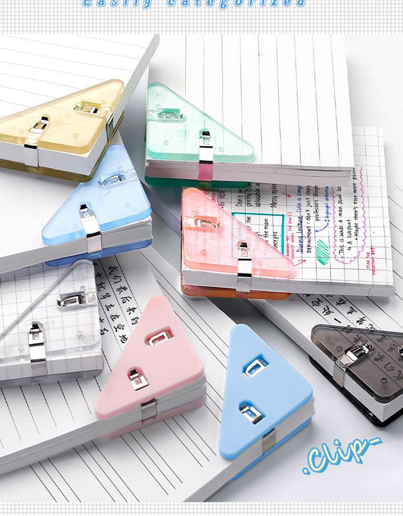 5 clips triangulares multifunción transparentes de ángulo recto para esquina lateral, clip para libro, soporte para cuenta de mano anti-rizado de datos