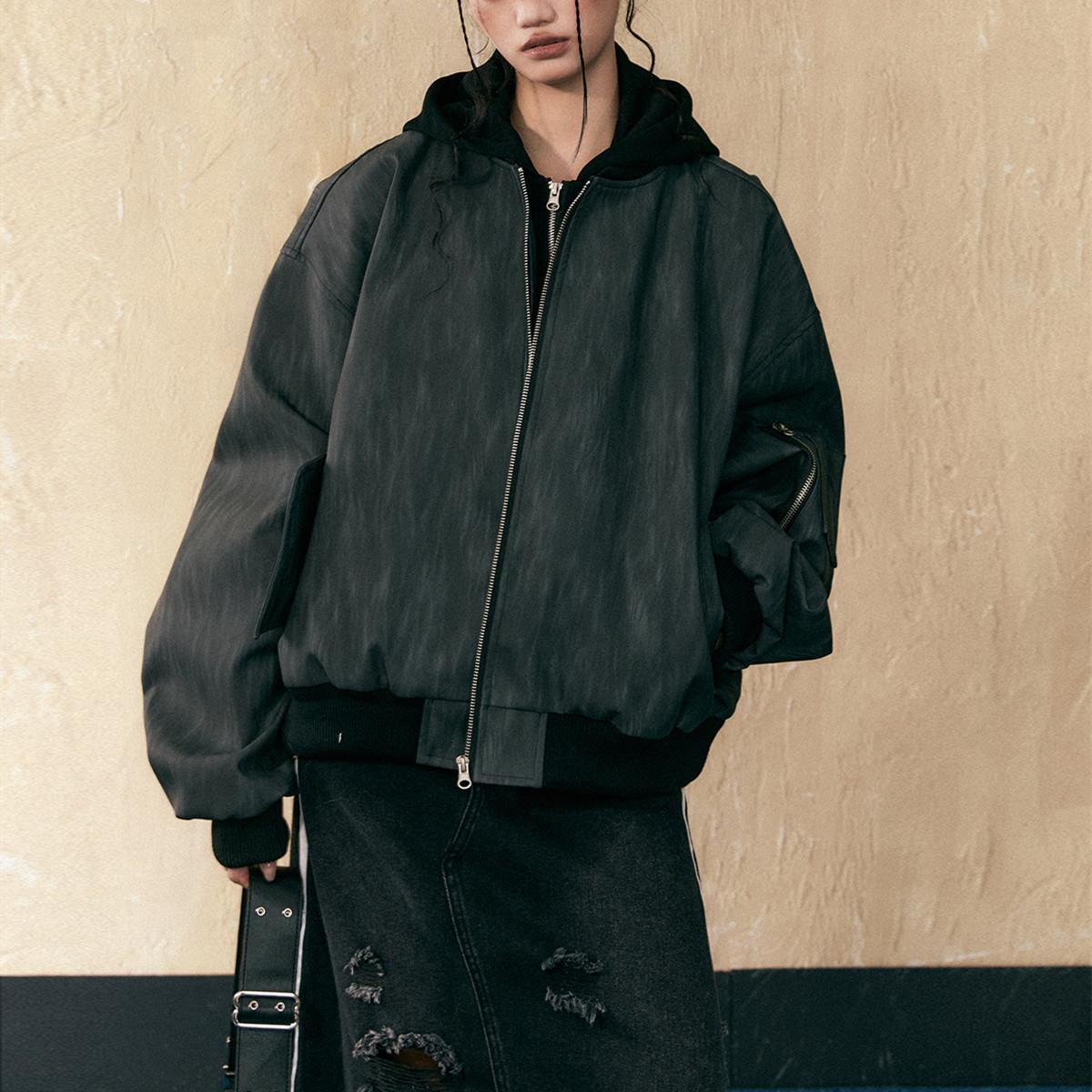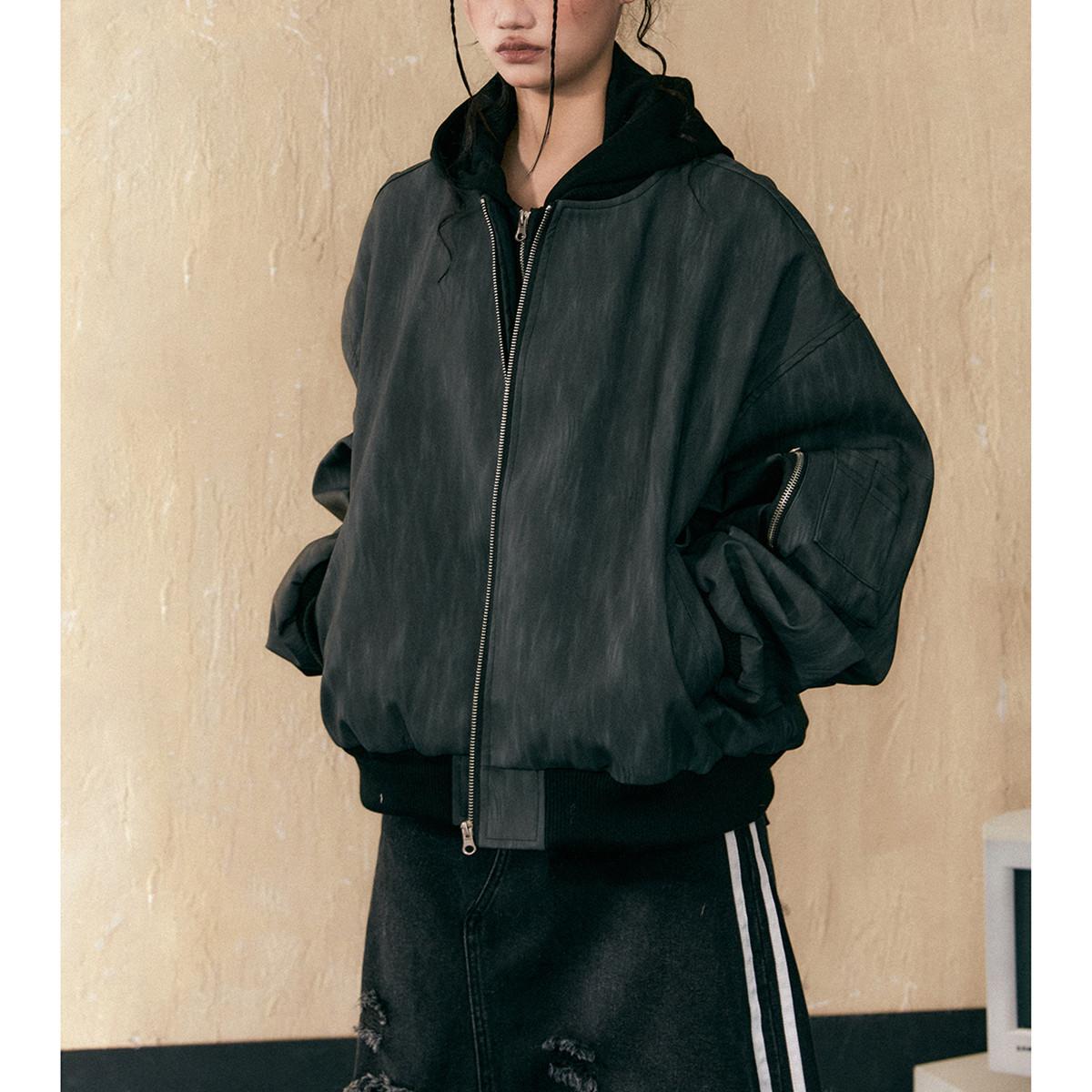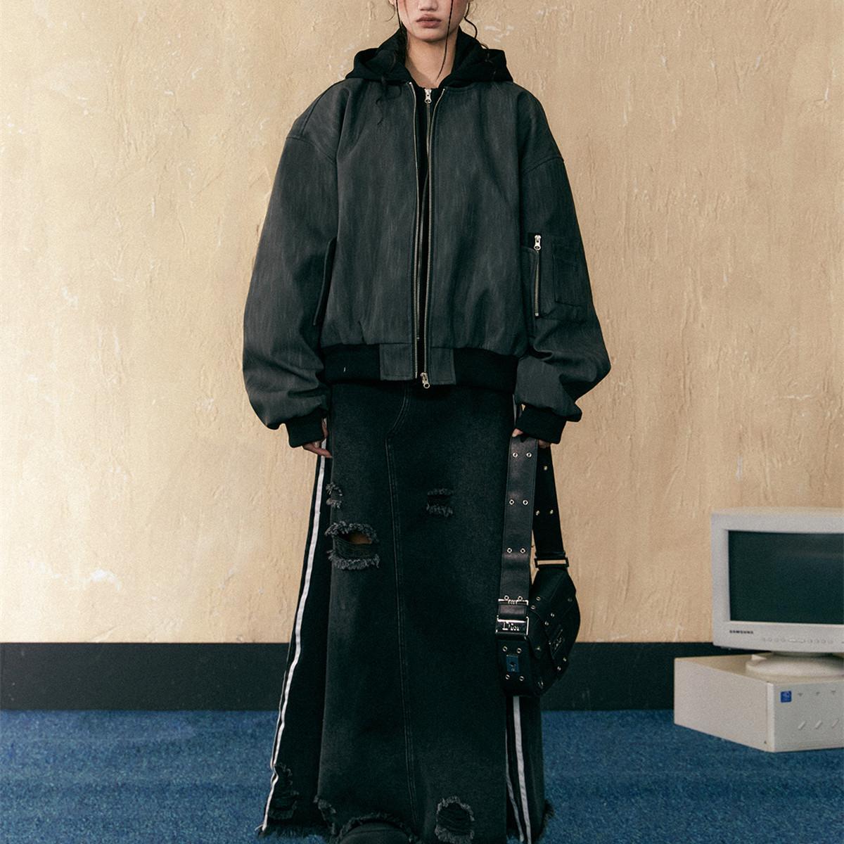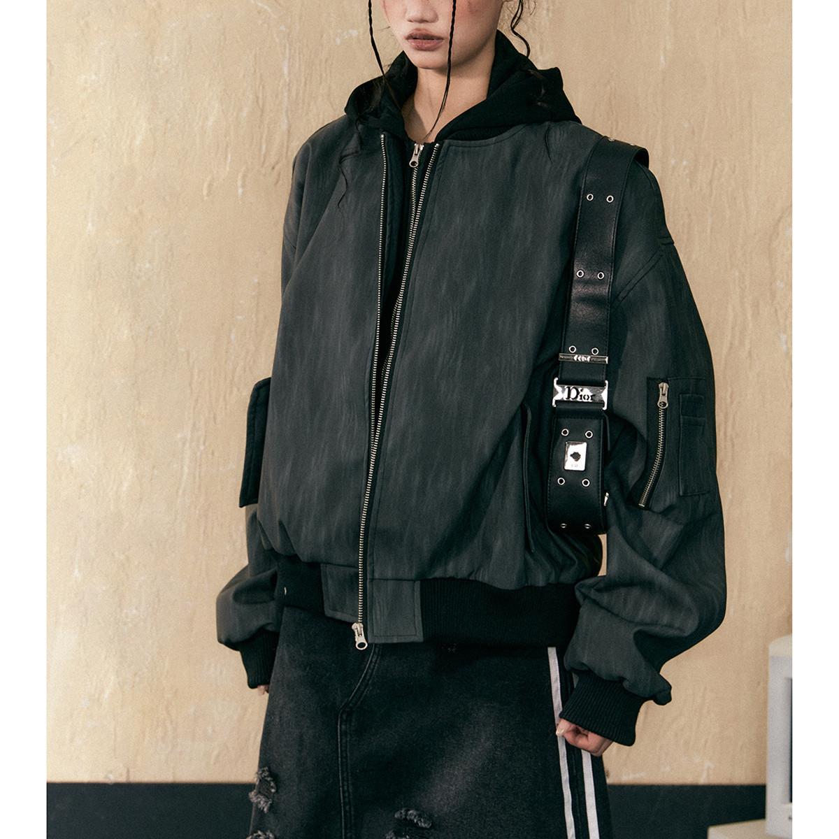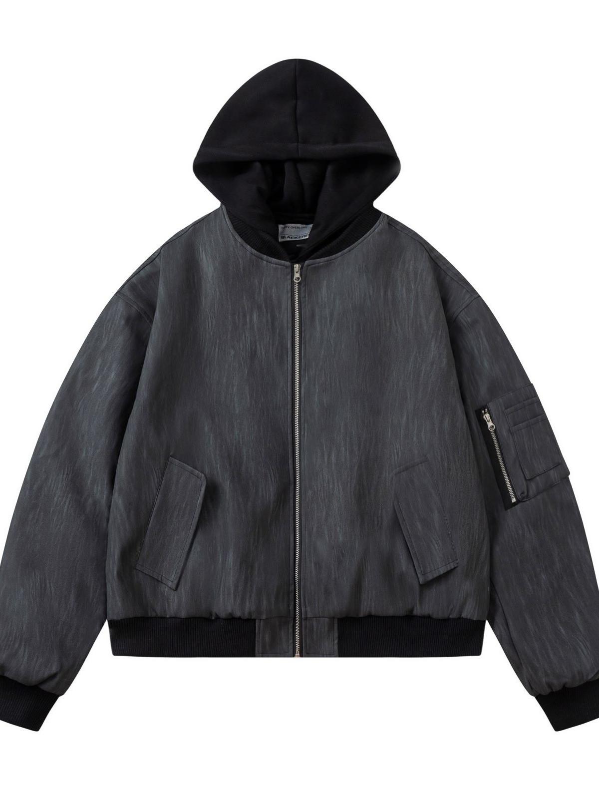 Chaqueta de trabajo retro americana 2020 Primavera y Otoño nuevo diseño abrigo de cuero con capucha de dos piezas falsas top de moda