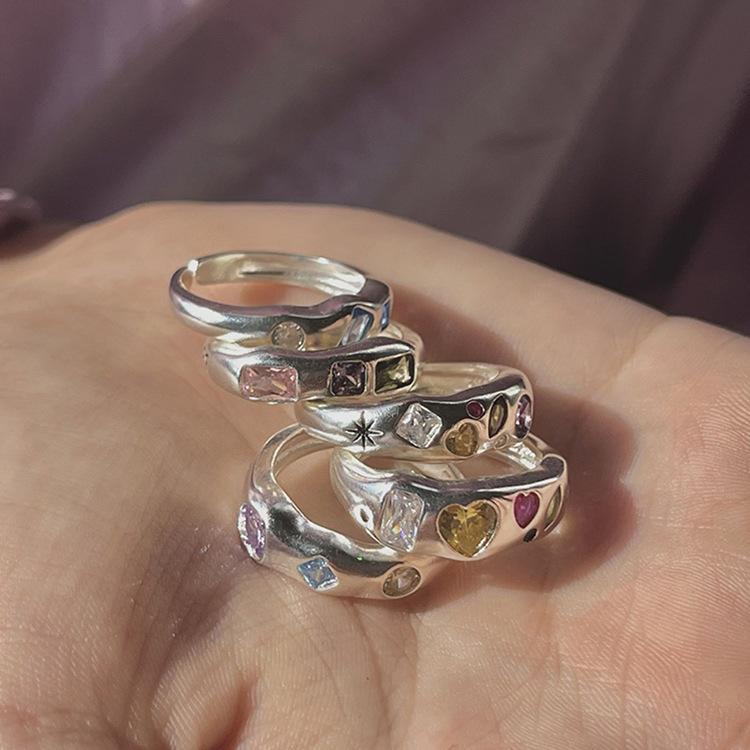 Anillo irregular colorido para mujer, diseño de nicho, anillo de dedo de alta calidad, personalizado, de moda, anillo abierto para bolso.