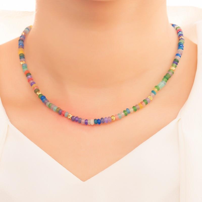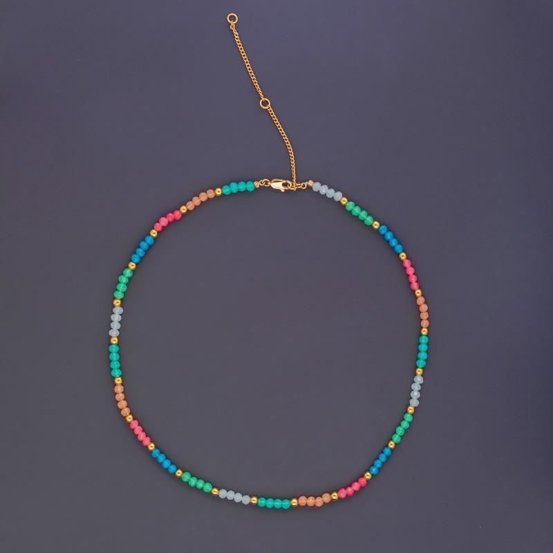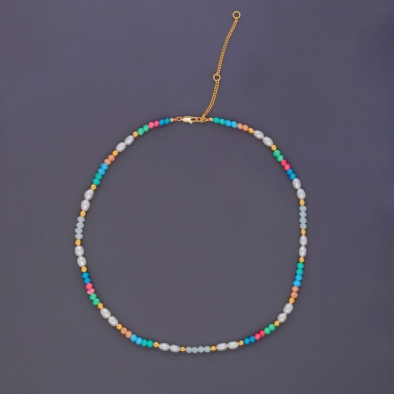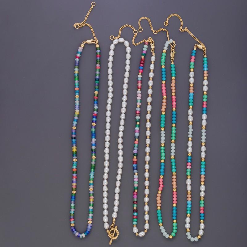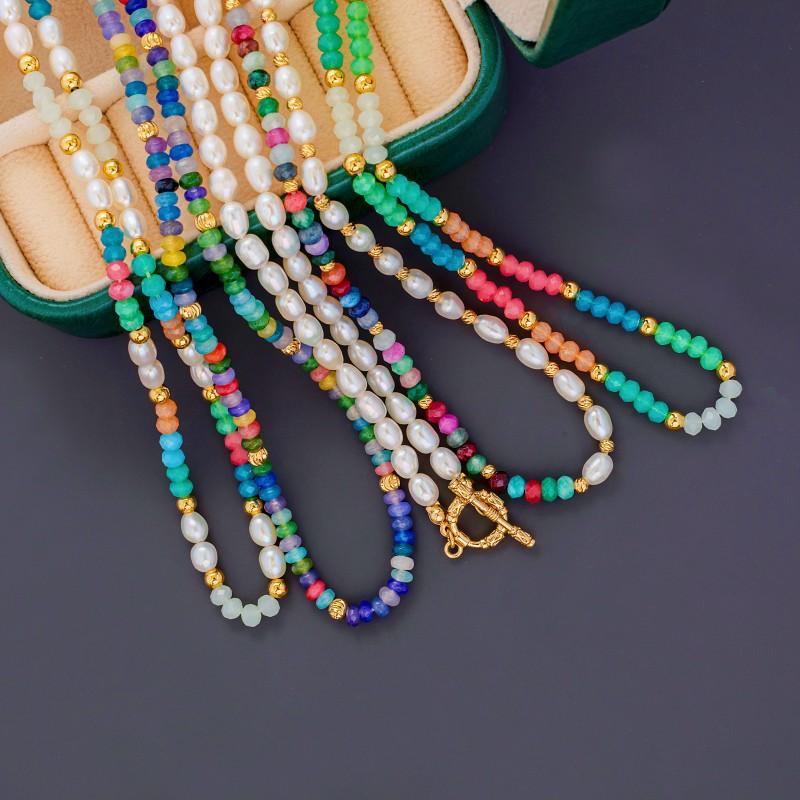 Nuevo Diseño Nicho Collar de Cuentas de Piedra Colorida Simple y de Moda Cadena Clavicular de Perla de Agua Dulce Collar Versátil para Mujeres