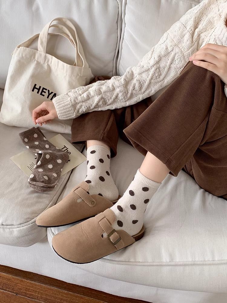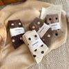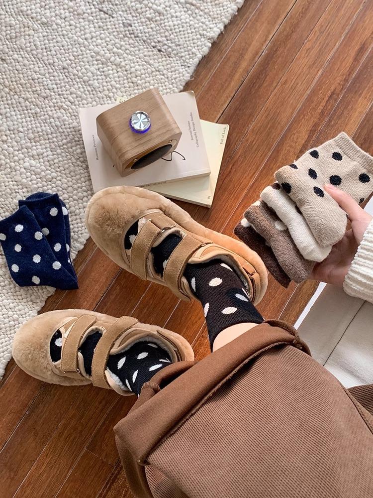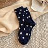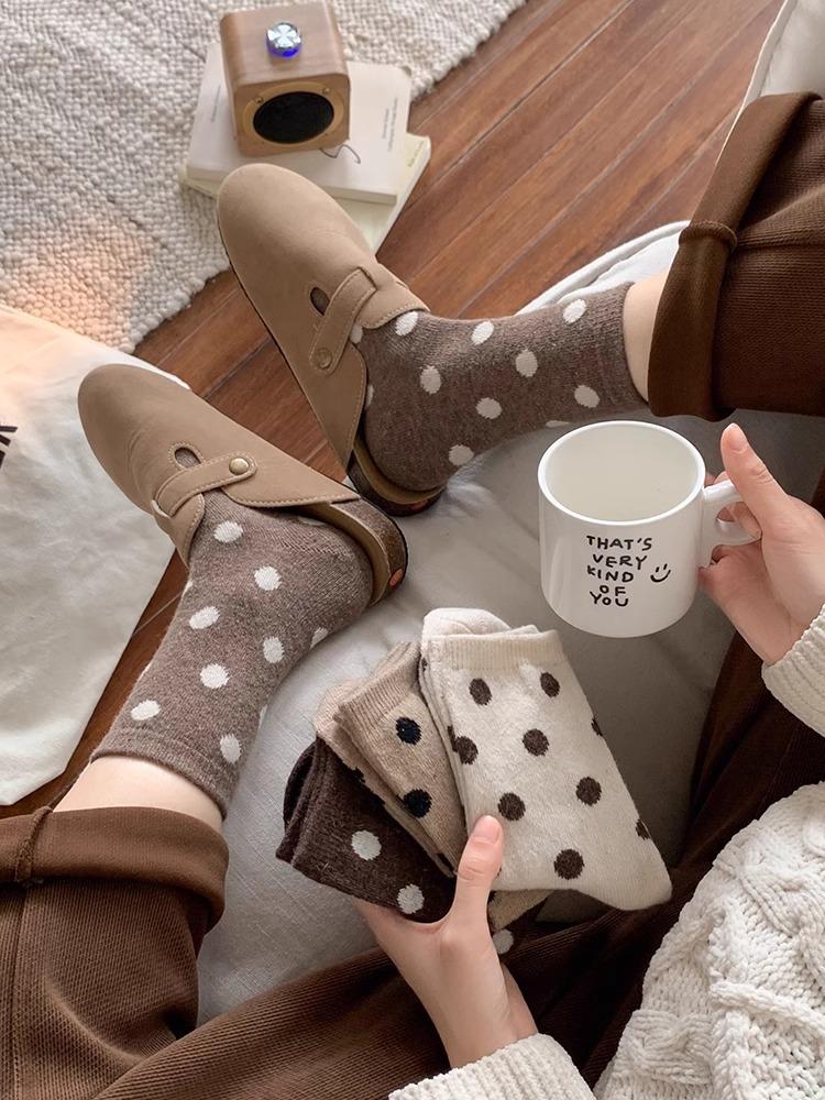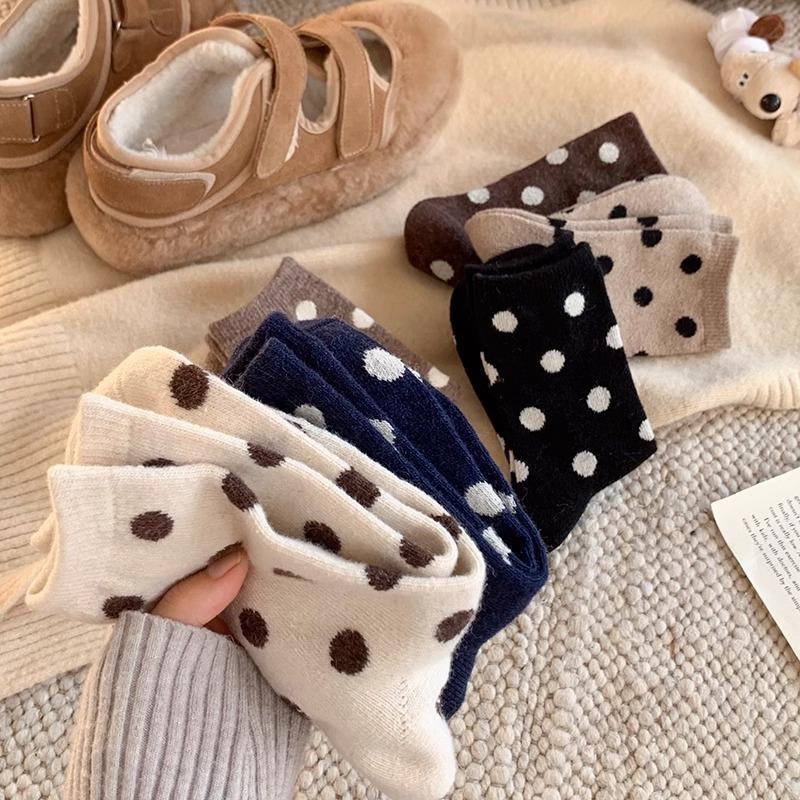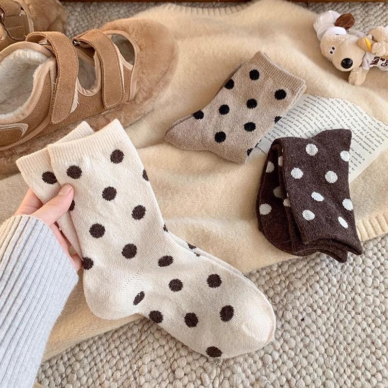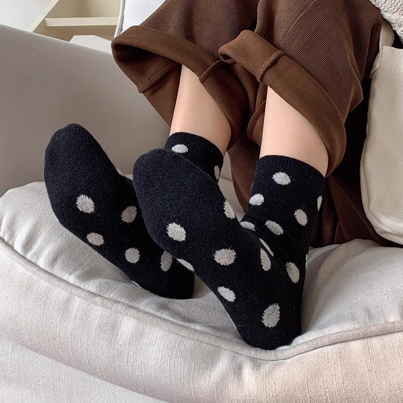 Calcetines de lana de lunares para mujer, calcetines de media pantorrilla, otoño e invierno, cálidos y gruesos, calcetines de invierno de pelo Maillard de lunares japoneses