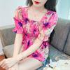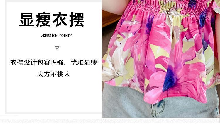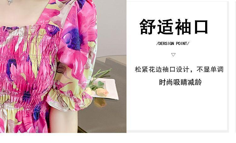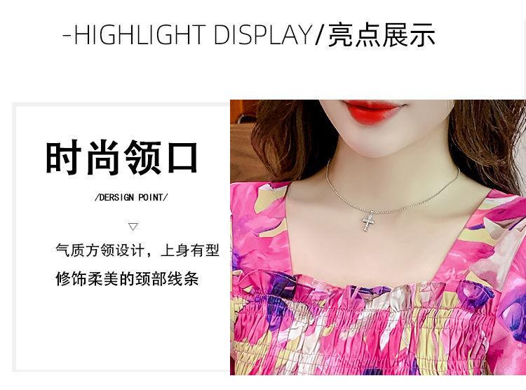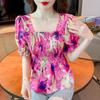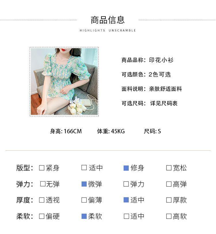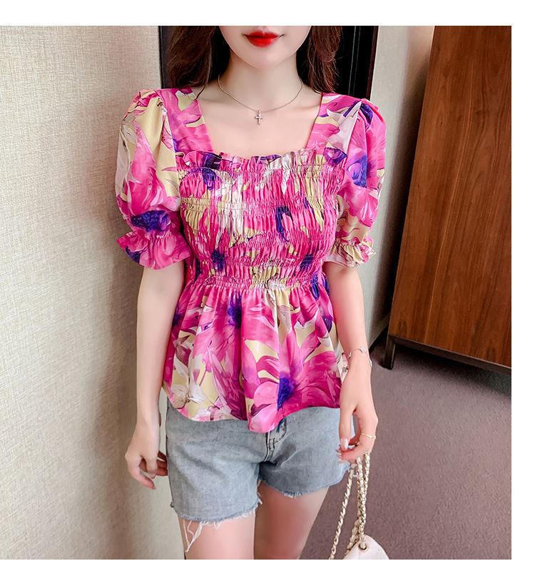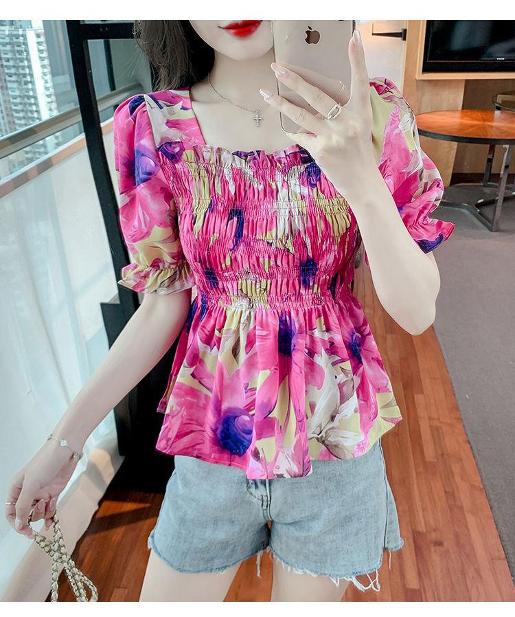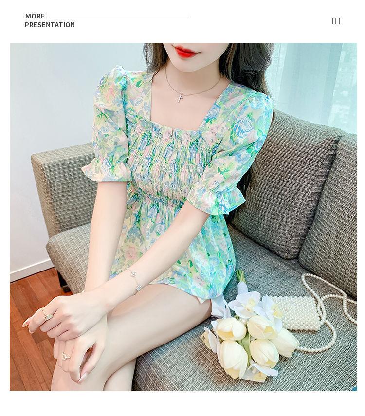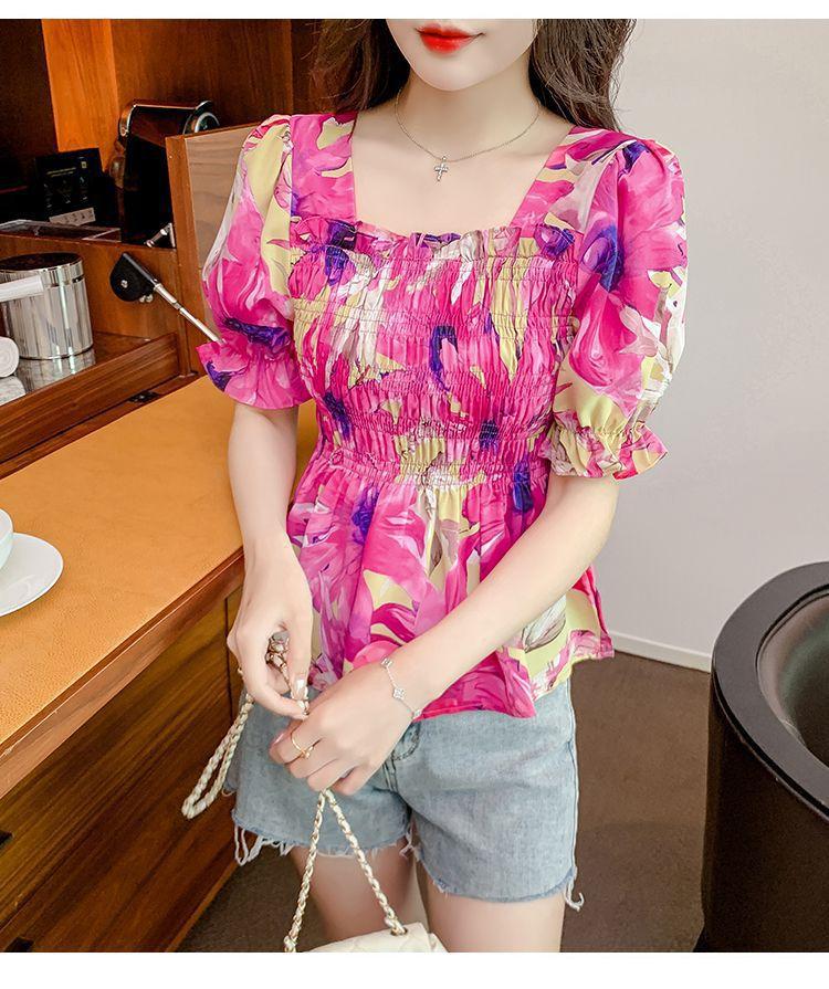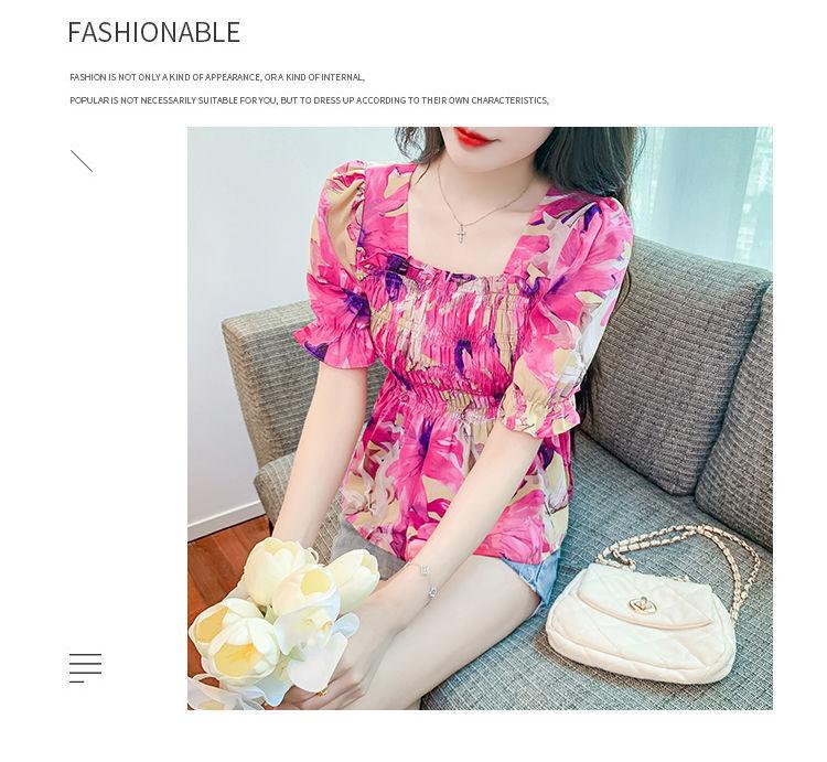 Camisa de manga corta con cuello cuadrado floral y mangas abullonadas para mujer, diseño de verano, estilo francés nicho, estilo muñeca dulce.