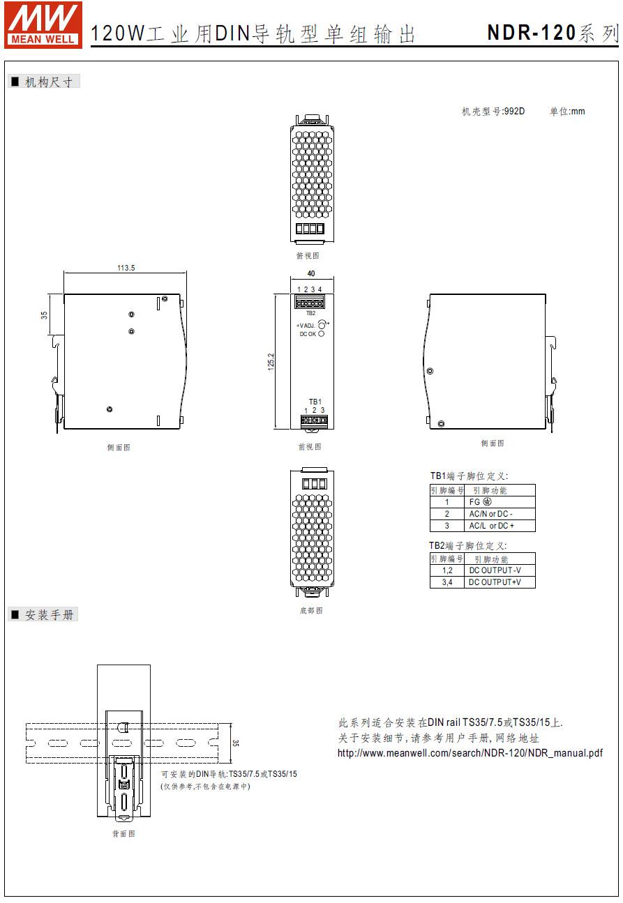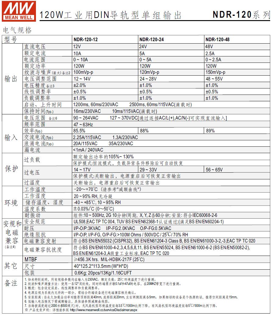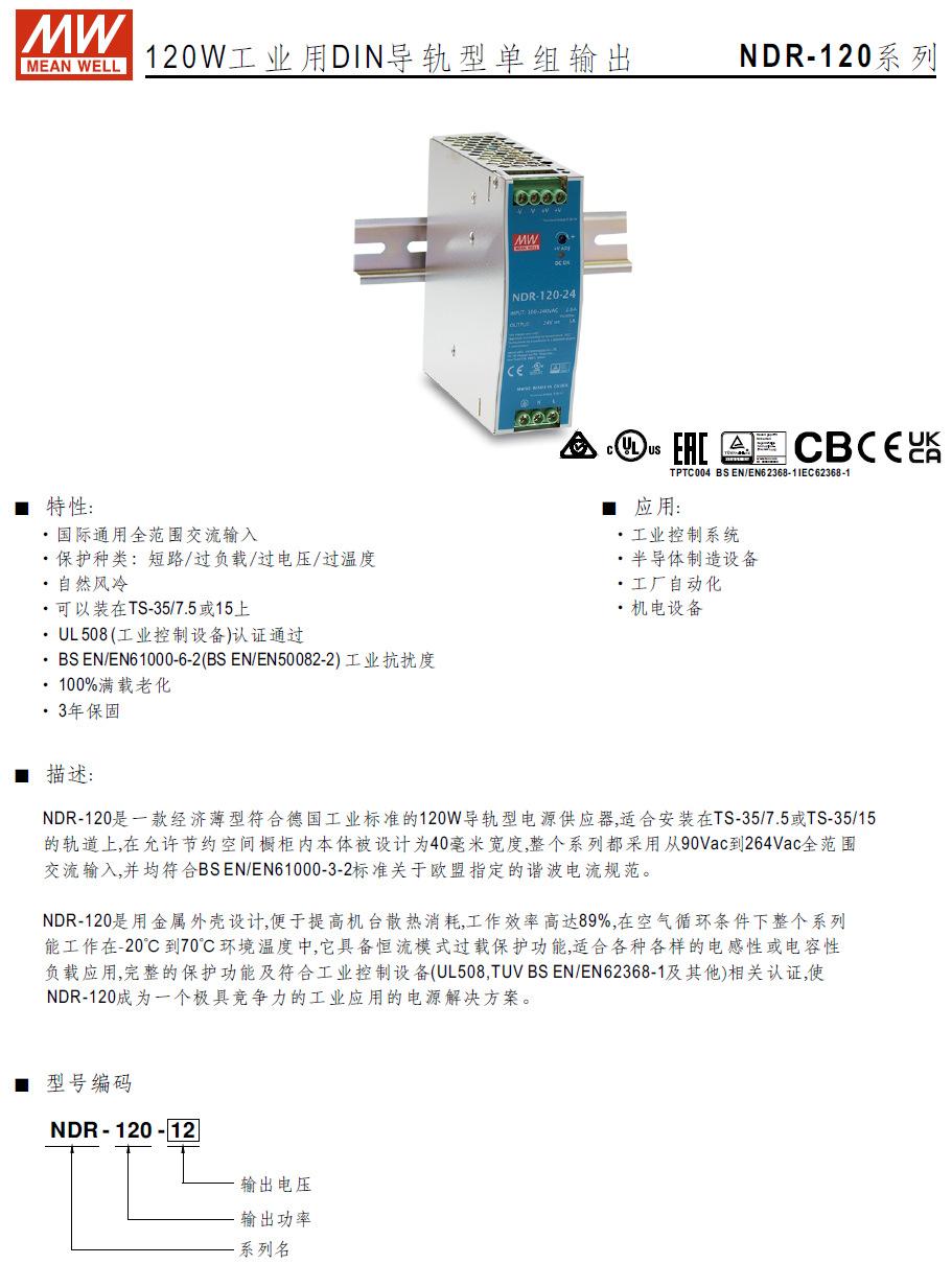 Foco NDR-120-24/12/48 montaje en carril fuente de alimentación 24V5A Taiwán Mean Well