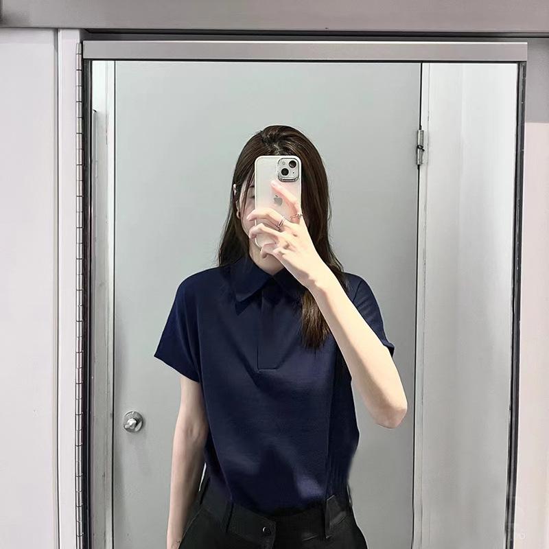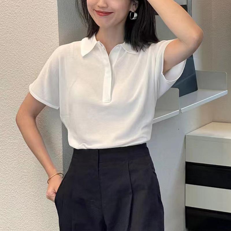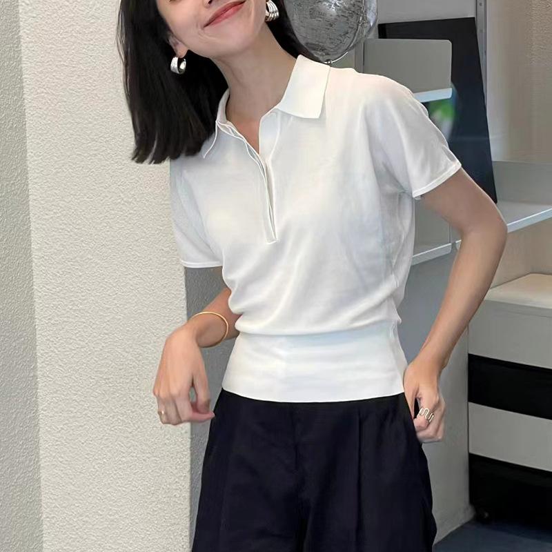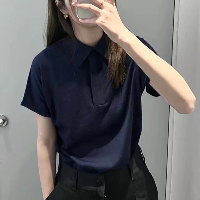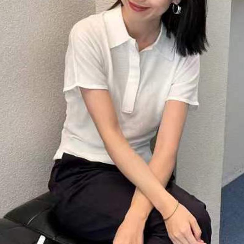 Envío Gratis Reemplazo Moda Holgada Perezosa Verano Nueva Camiseta de Cuello Polo para Mujer Top de Punto para Mujer Estilo Cos
