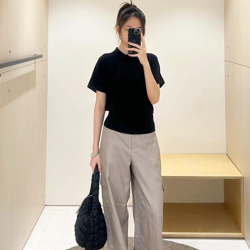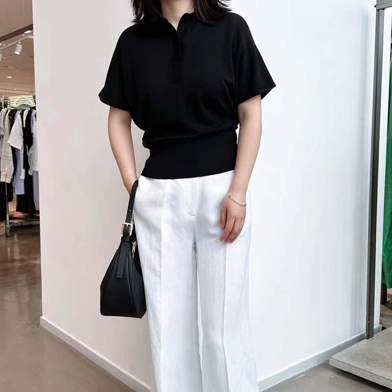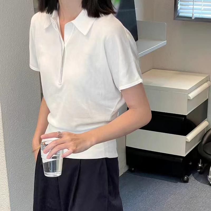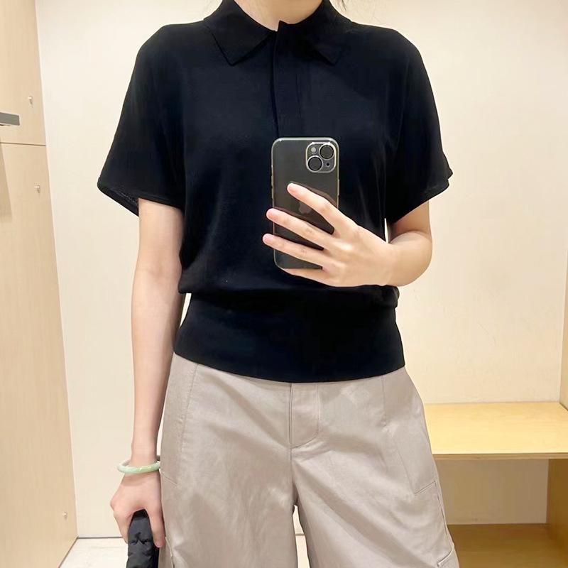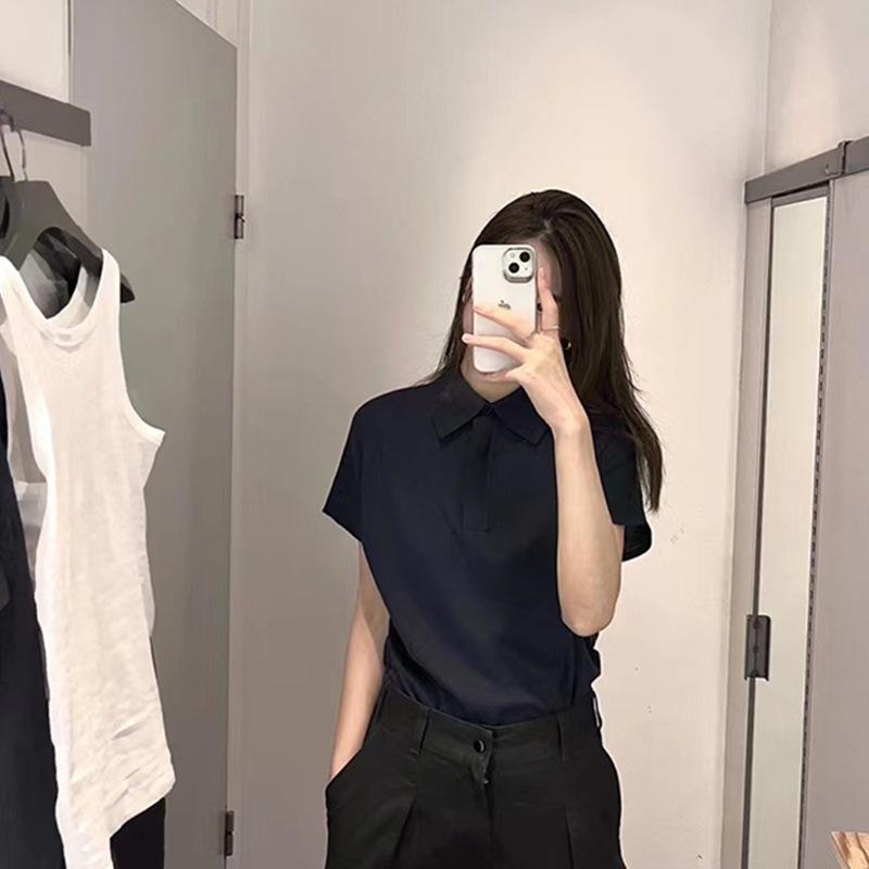 Envío Gratis Reemplazo Moda Holgada Perezosa Verano Nueva Camiseta de Cuello Polo para Mujer Top de Punto para Mujer Estilo Cos