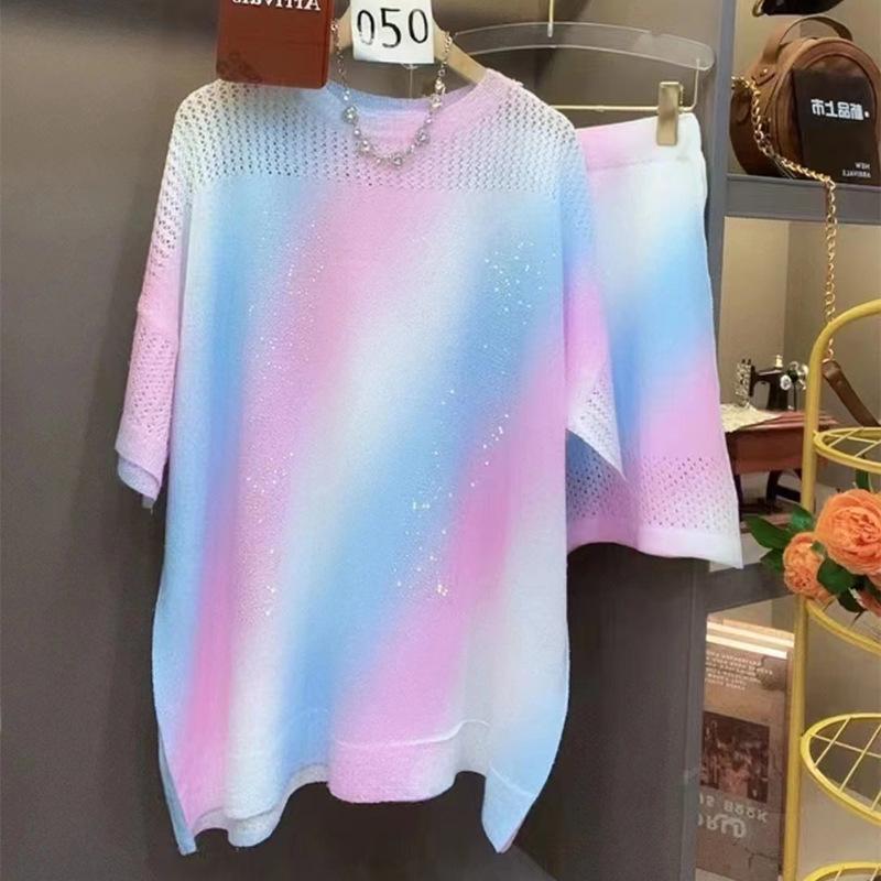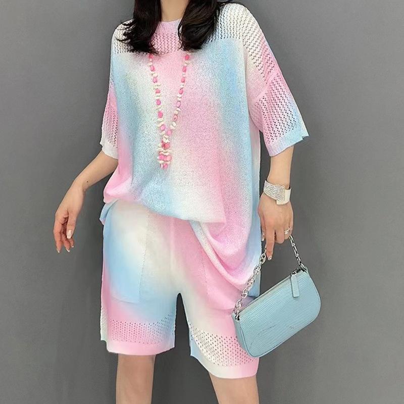 Verano Nuevo Top Camiseta Seda de Hielo Traje Degradado Shorts 2023 Verano Popular en Internet Conjunto de Dos Piezas Reductor de Edad para Mujer