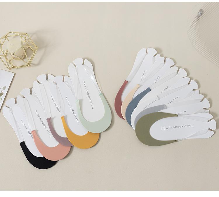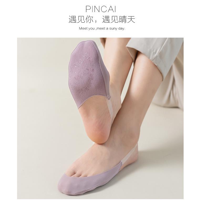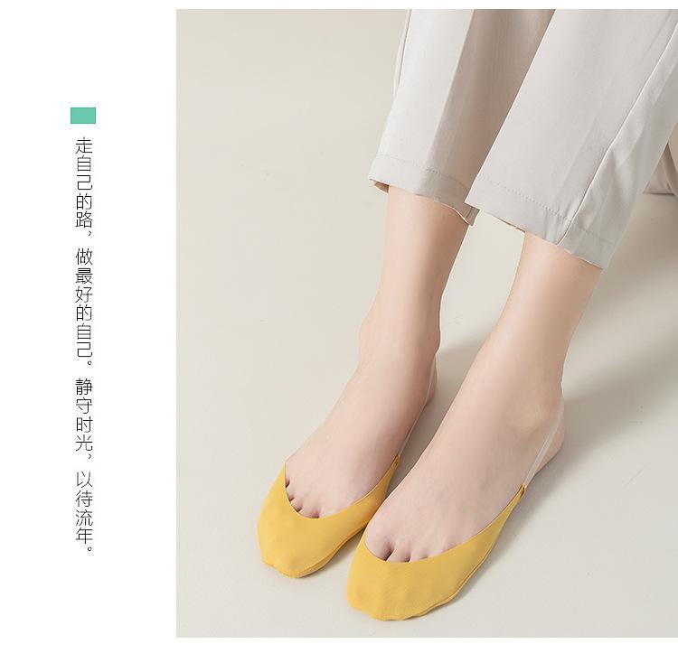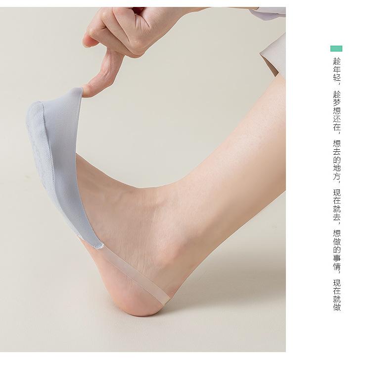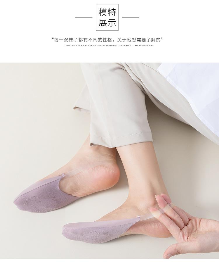 Correa Transparente Calcetines Invisibles Mujer Calcetines Tacones Altos Color Sólido Fondo de Algodón Antideslizante Medio Pie Super Bajos Seda de Hielo Barco