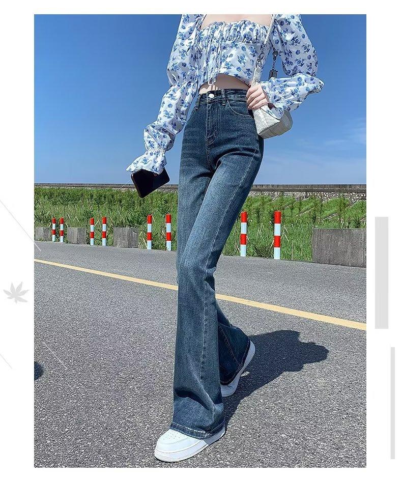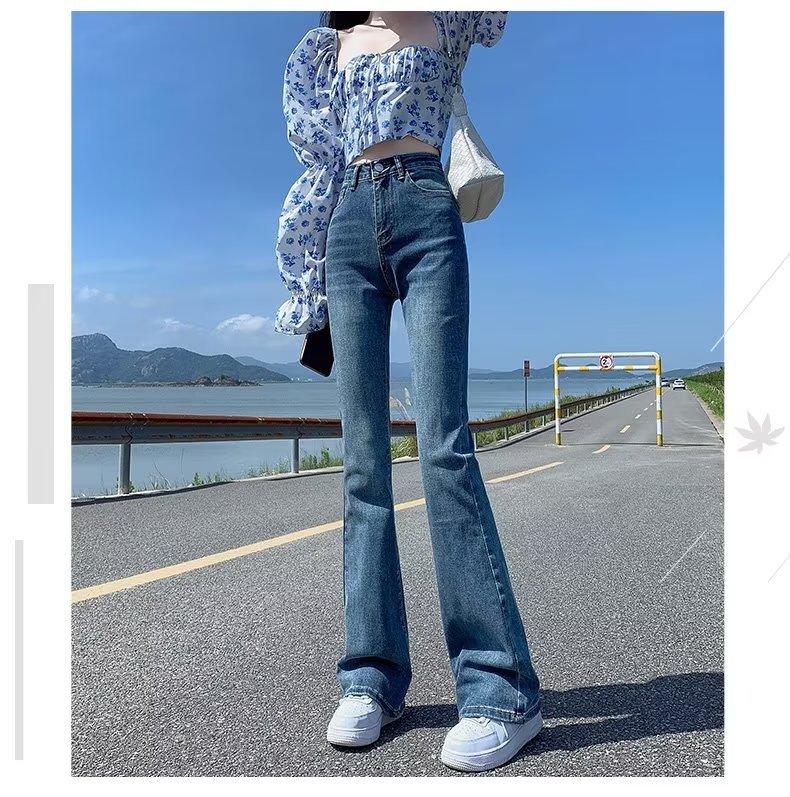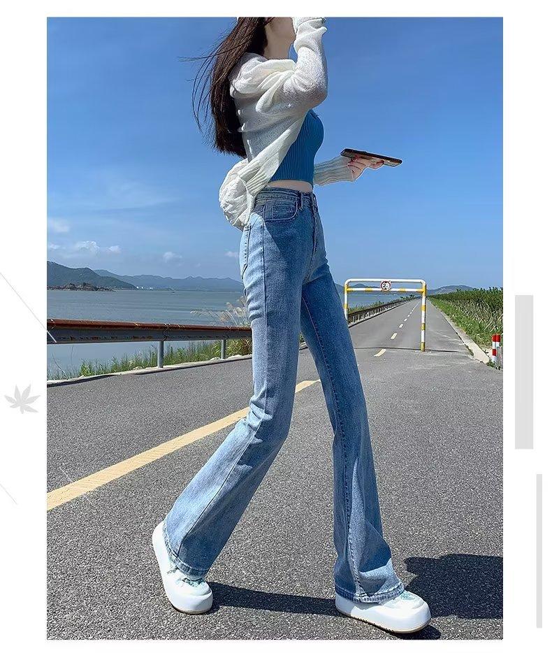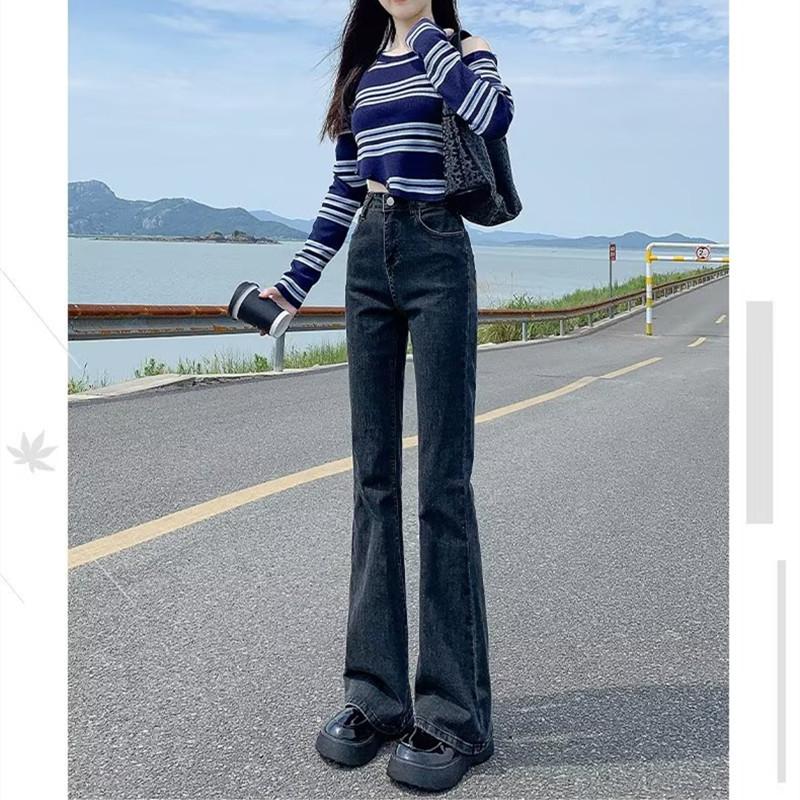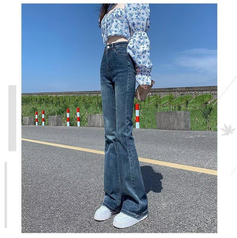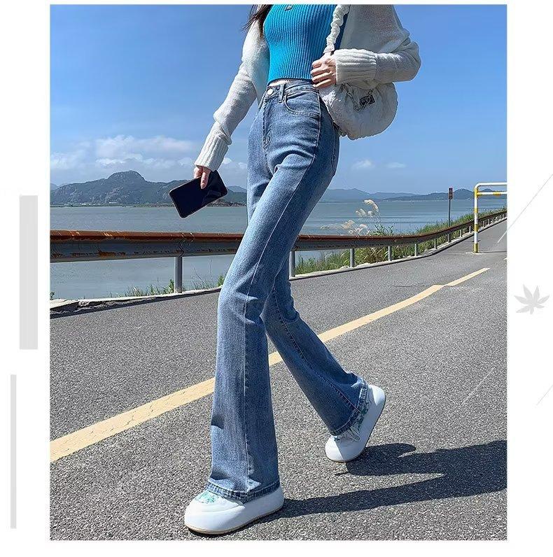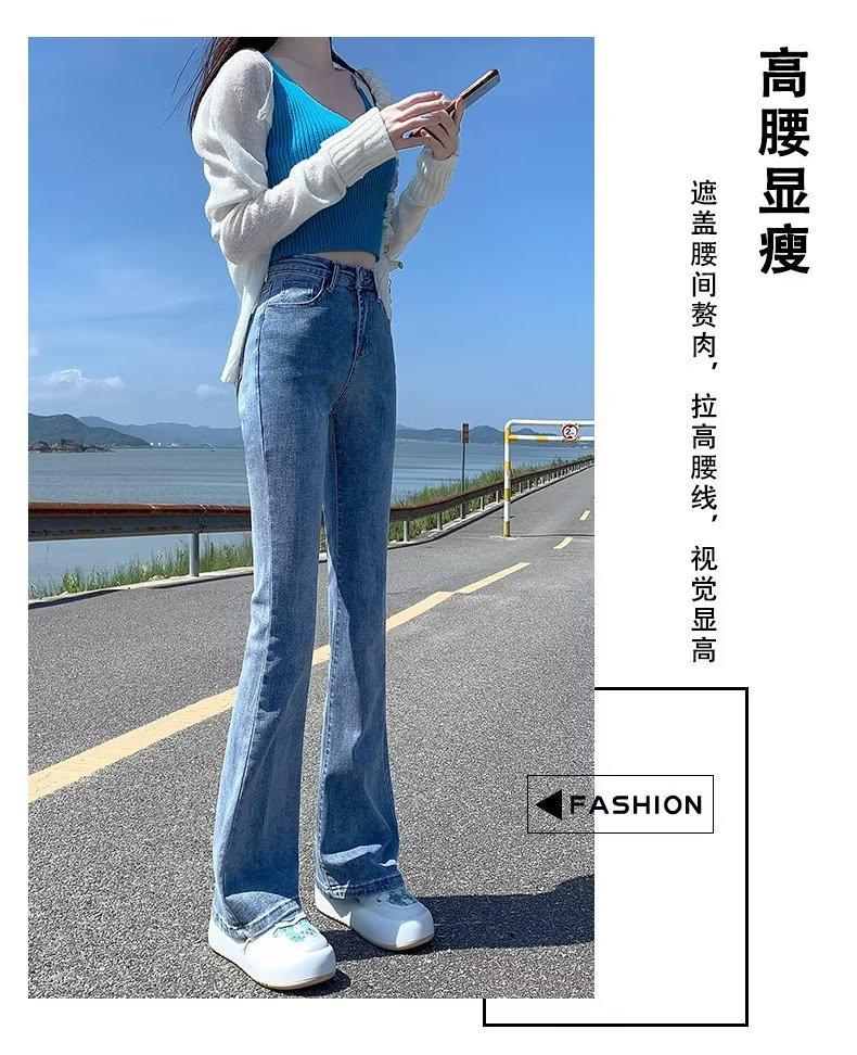Pantalones vaqueros ajustados de cintura alta para mujer, estilo retro, versátiles, de herradura, de primavera y otoño de 2023, acampanados pequeños, al por mayor