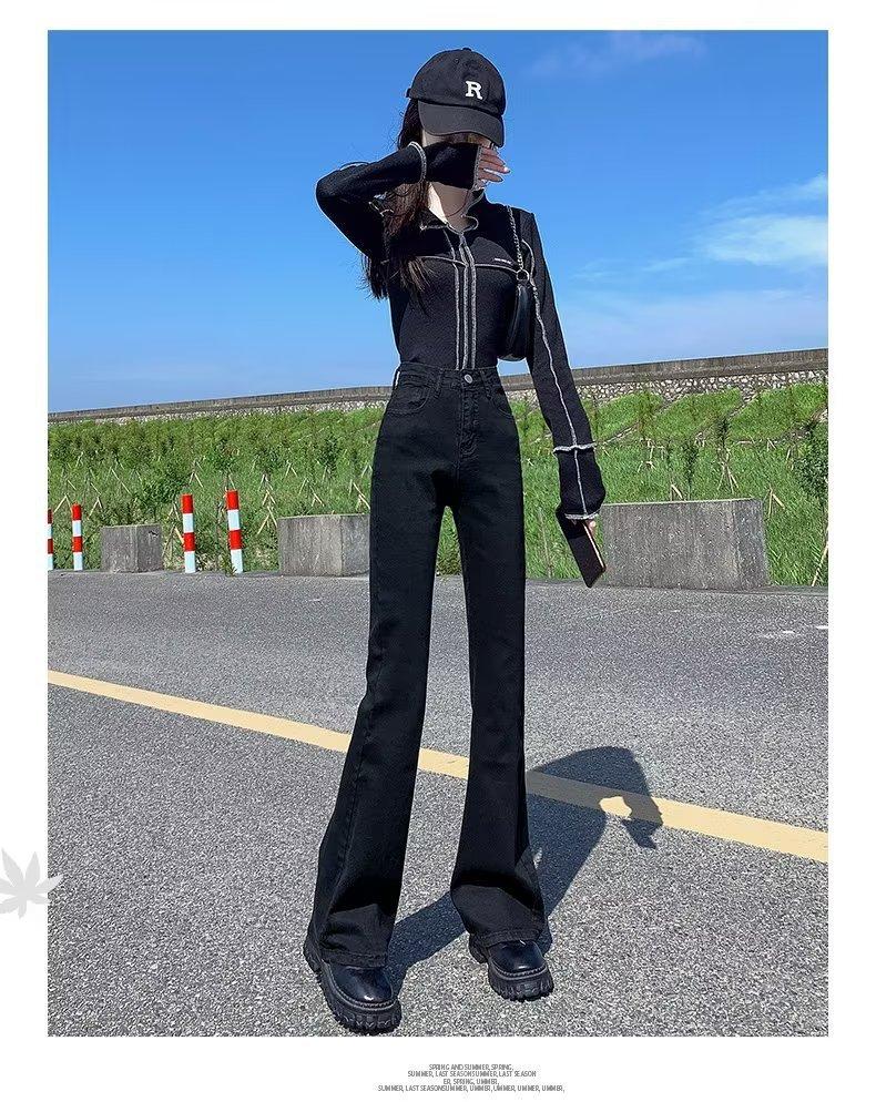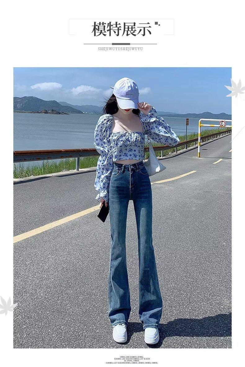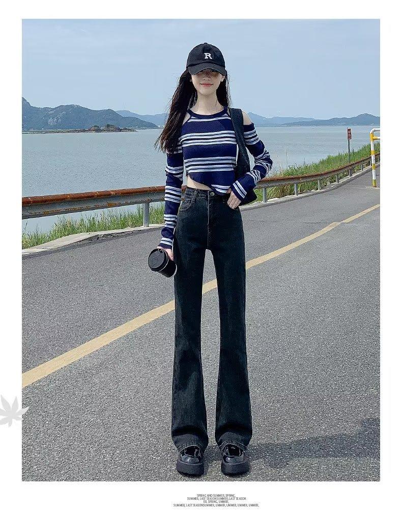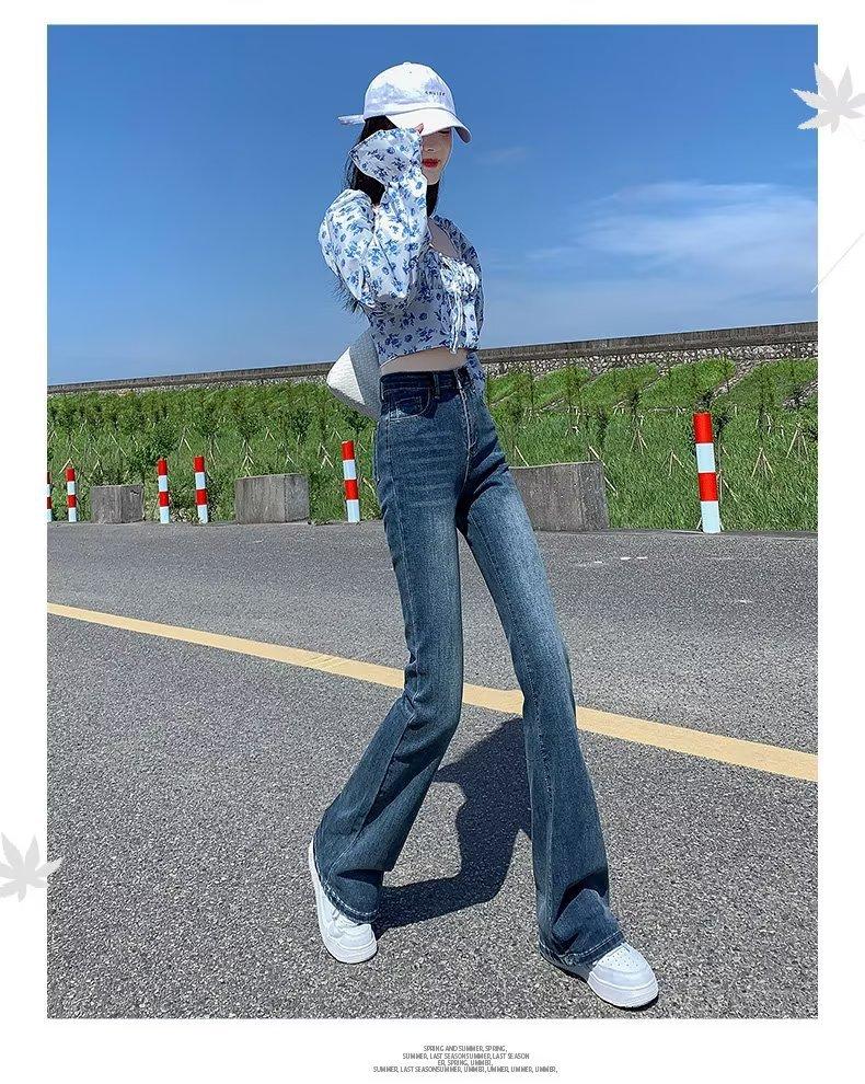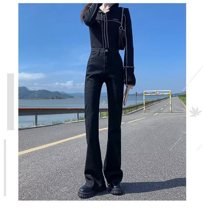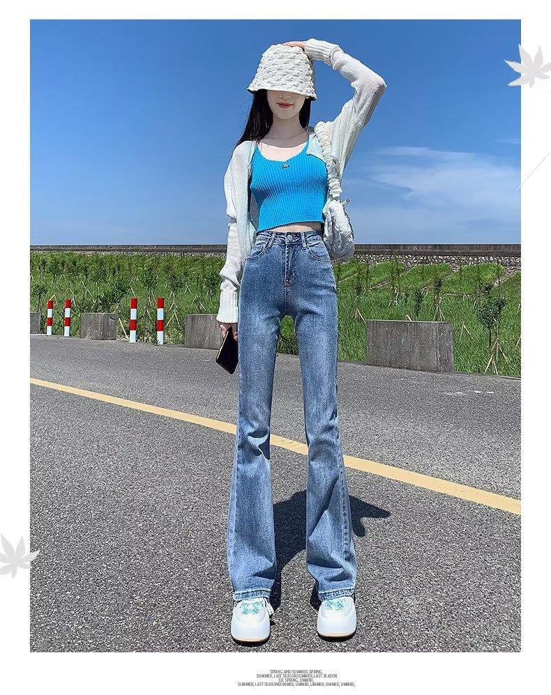 Pantalones vaqueros ajustados de cintura alta para mujer, estilo retro, versátiles, de herradura, de primavera y otoño de 2023, acampanados pequeños, al por mayor