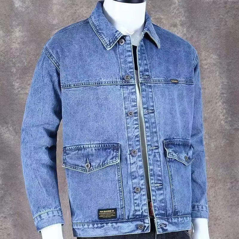 Abrigo de mezclilla para hombre primavera y otoño holgado chaqueta overol marca de moda vintage alta calle solapas ropa superior
