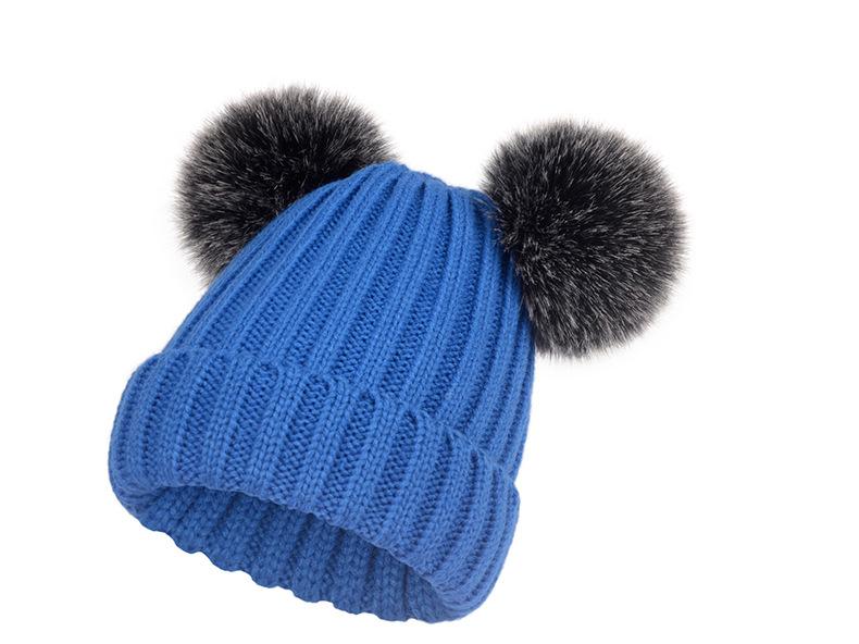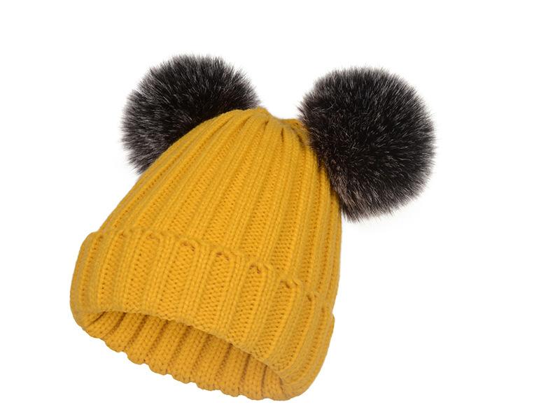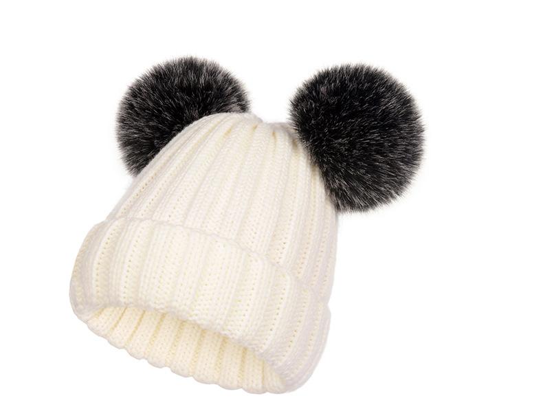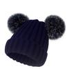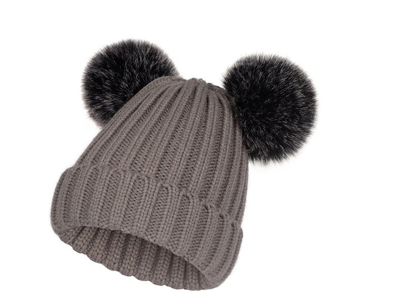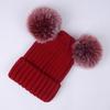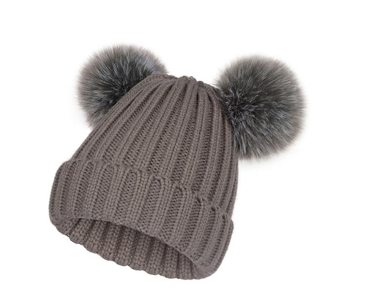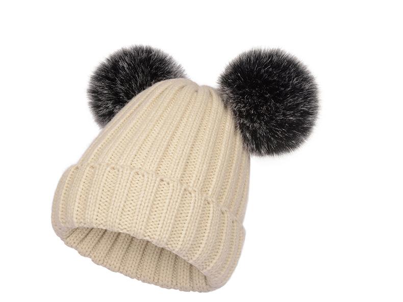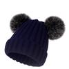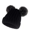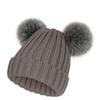Gorro de lana de otoño e invierno, gorro con doble pompón de piel, color escarcha de hierba, gorro con pompón de imitación de piel de zorro, gorro de punto cálido grueso con forro polar