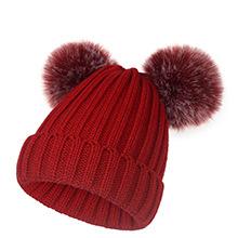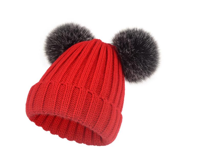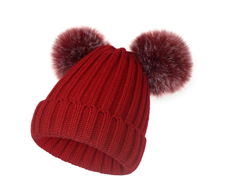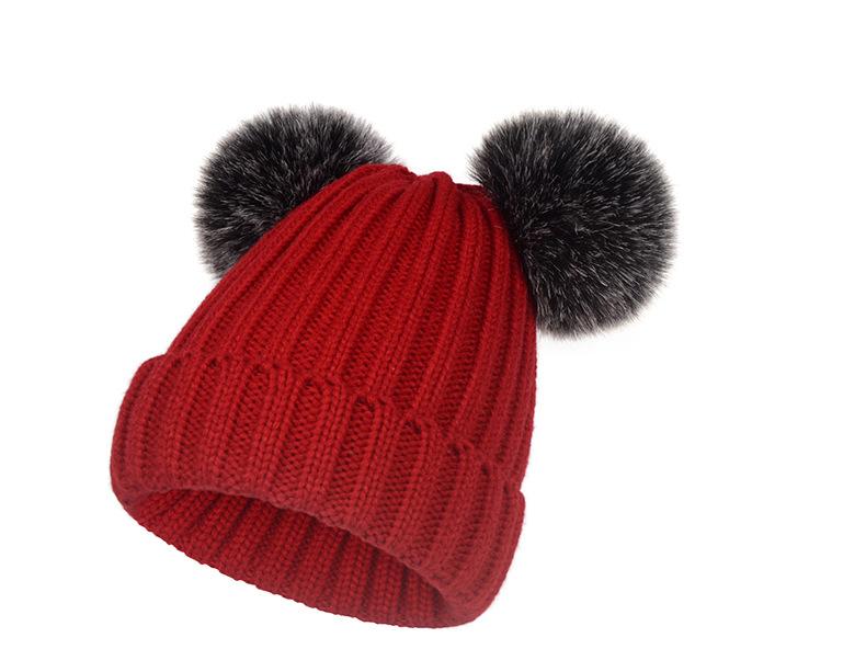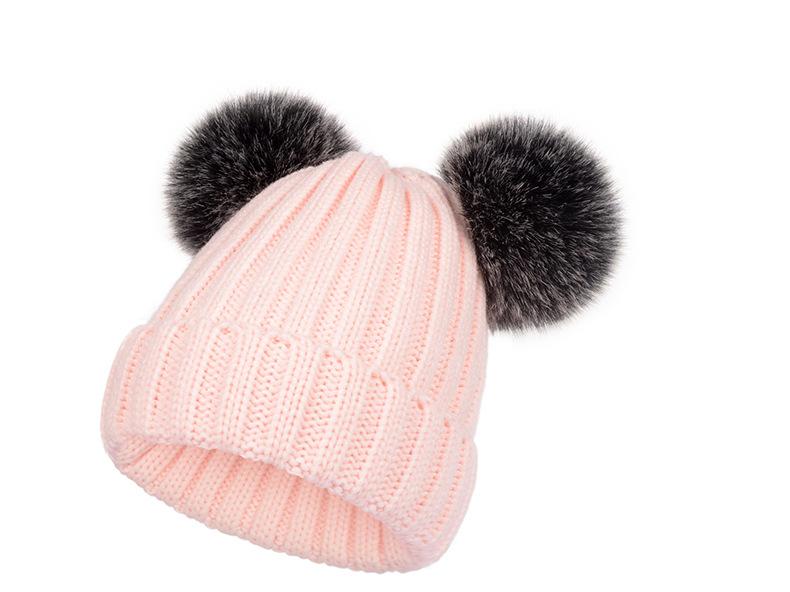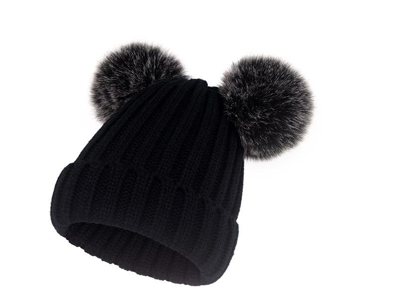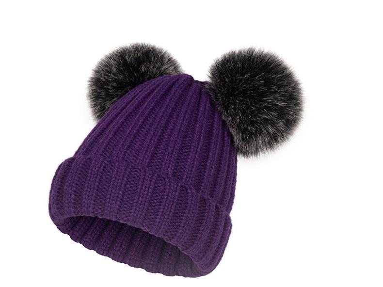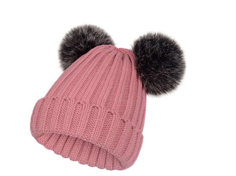 Gorro de lana de otoño e invierno, gorro con doble pompón de piel, color escarcha de hierba, gorro con pompón de imitación de piel de zorro, gorro de punto cálido grueso con forro polar