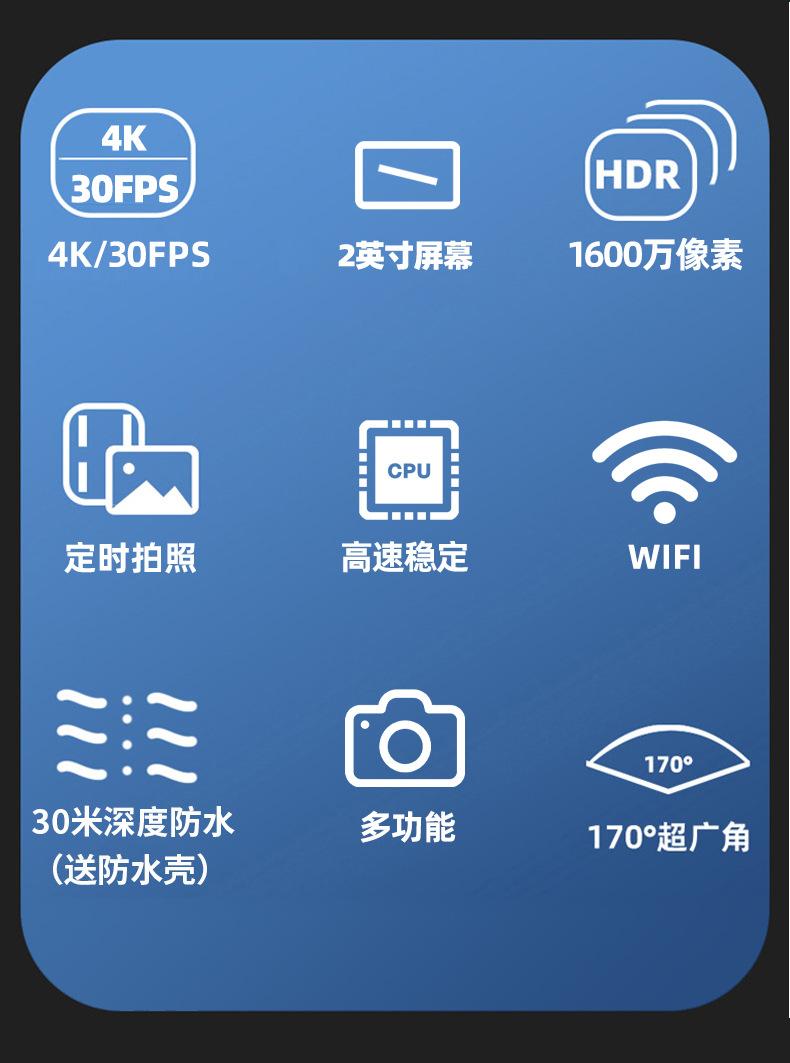 Cámara deportiva nueva y popular transfronteriza 4K, grabadora de conducción al aire libre impermeable, cámara deportiva de pantalla única de fábrica