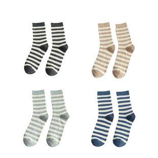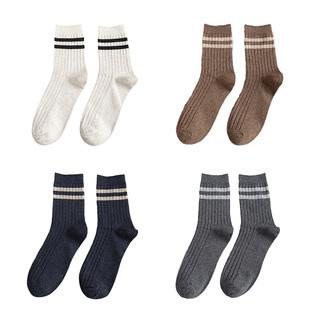 ![]() Calcetines gruesos de tubo medio a rayas estampadas para mujer, de algodón puro, cómodos, transpirables, de grosor medio, juego de 4 colores