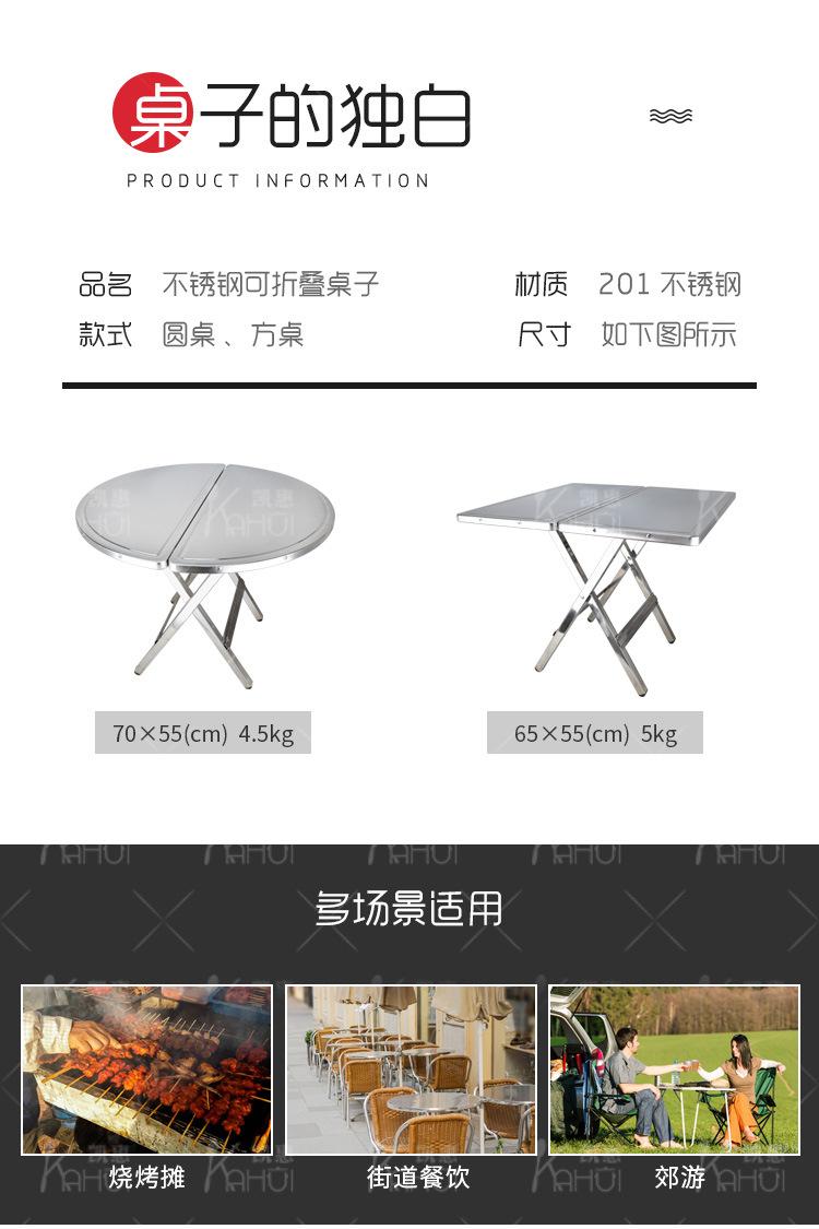 【Nombre del producto】Mesa plegable de acero inoxidable
