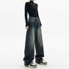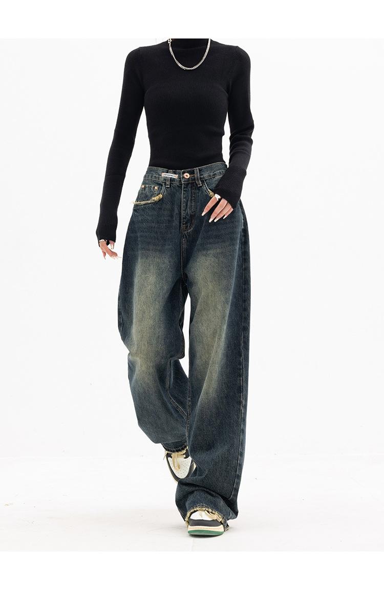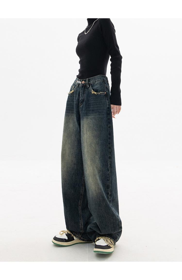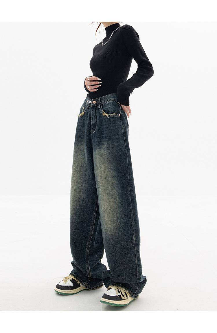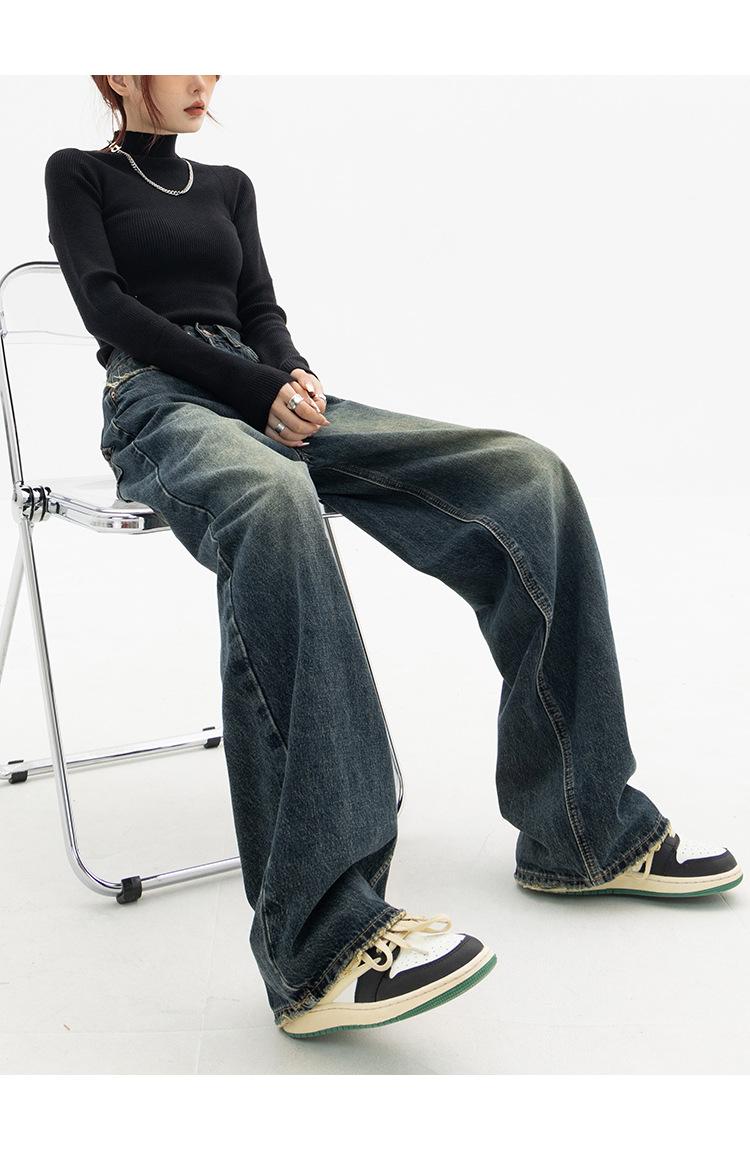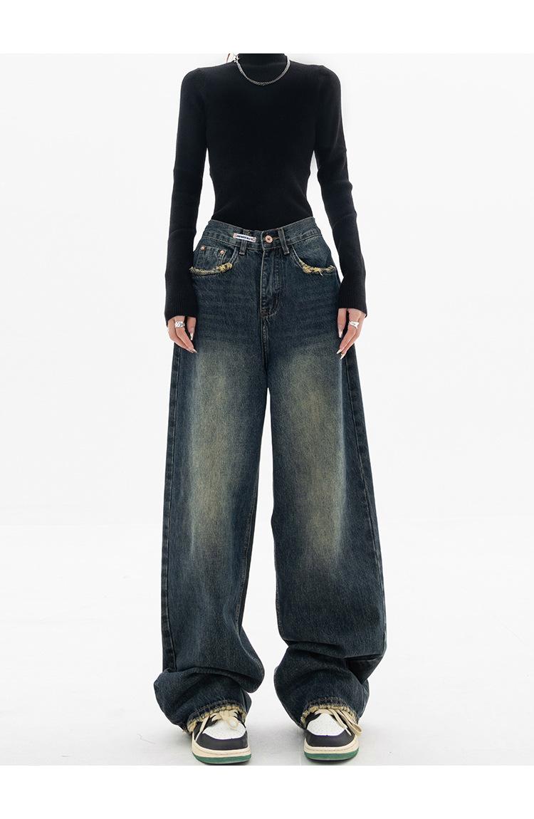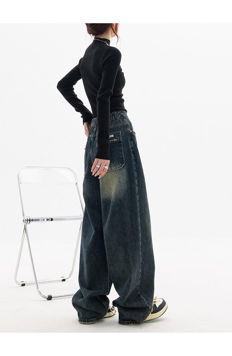 Jeans azul oscuro de verano para mujer, cintura alta, adelgazantes, rectos, holgados, estilo americano retro, casual de calle, combinan con todo, pantalones de pierna ancha
