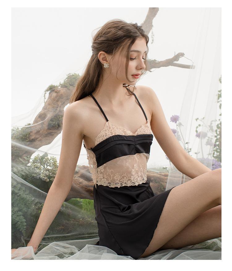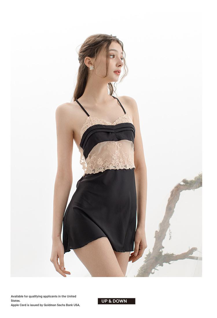 Pijama de seda helada estilo francés, sensual y fragante, para mujer, estilo Pure Desire, pijama de sexo privado, camisón estilo universitario.