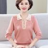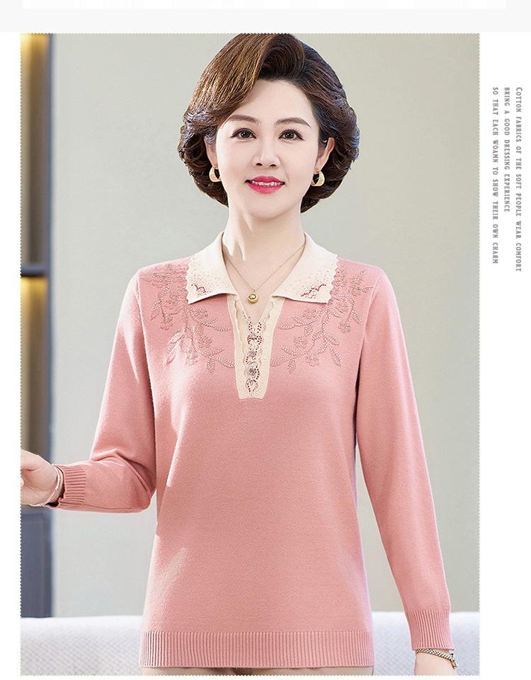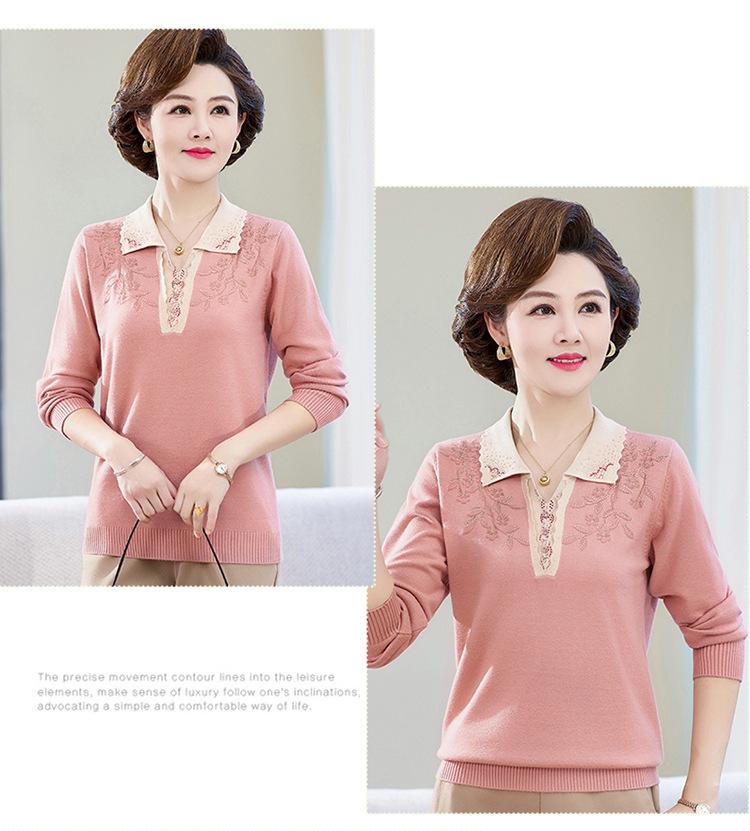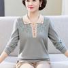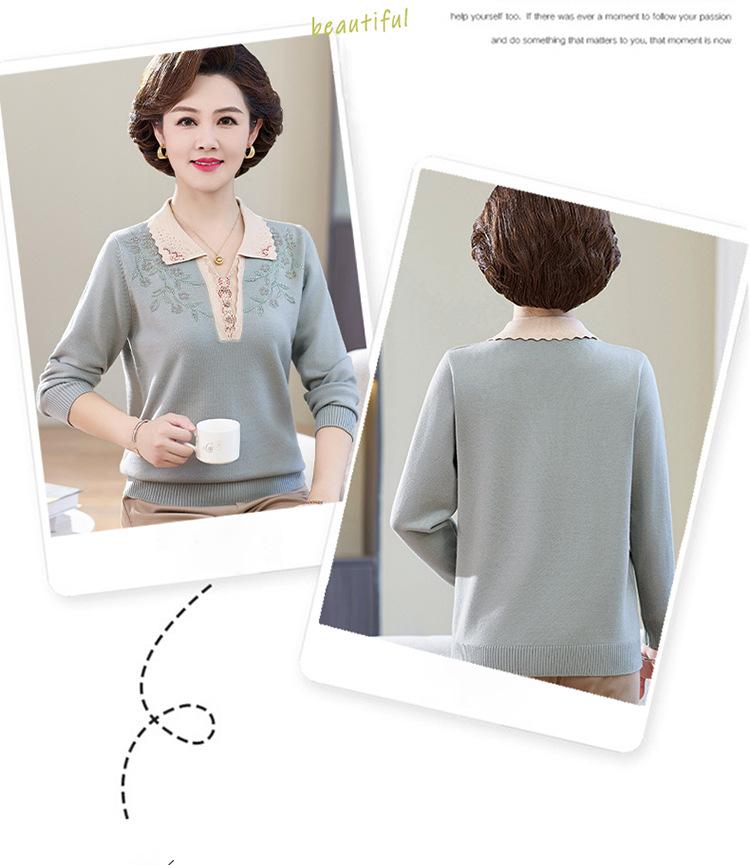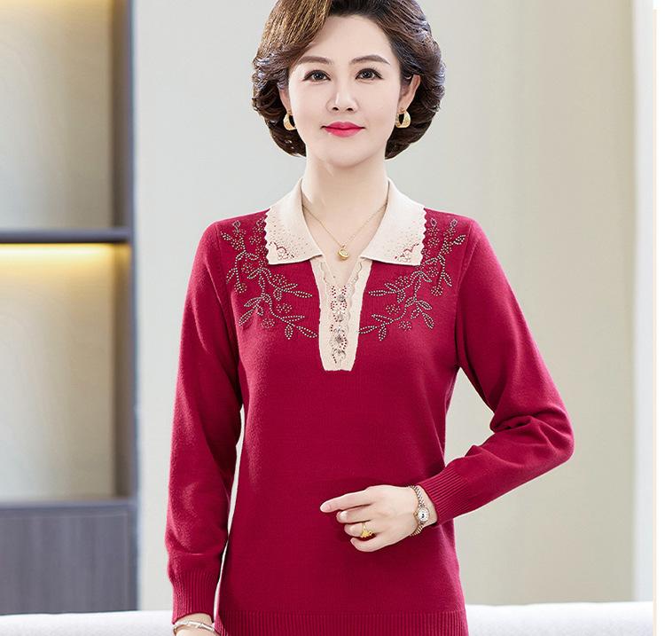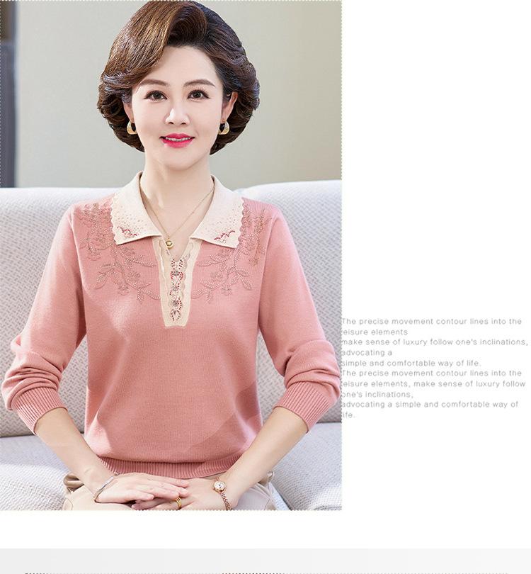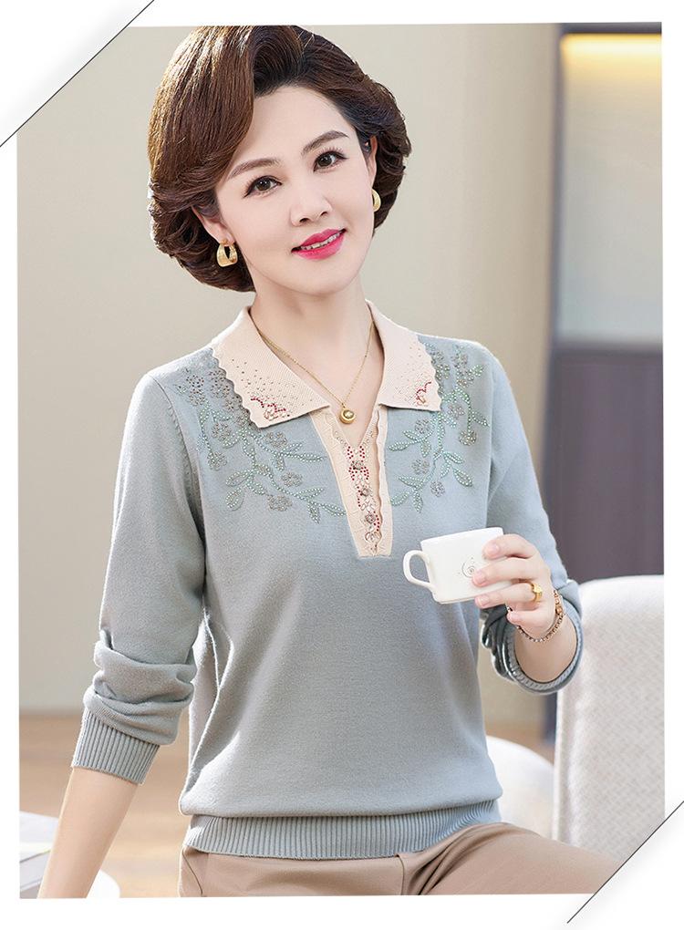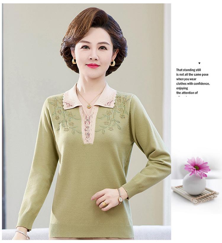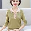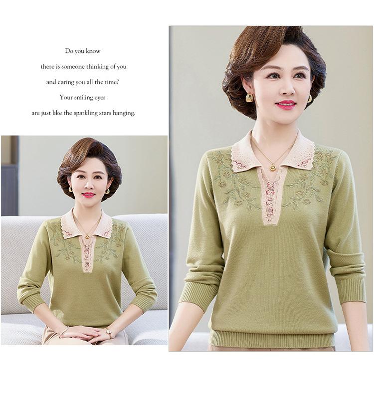 Camisa de punto de manga larga de primavera para madres de mediana edad, blusa bordada, nueva camisa de fondo estilo occidental de otoño para mujeres de mediana edad y mayores