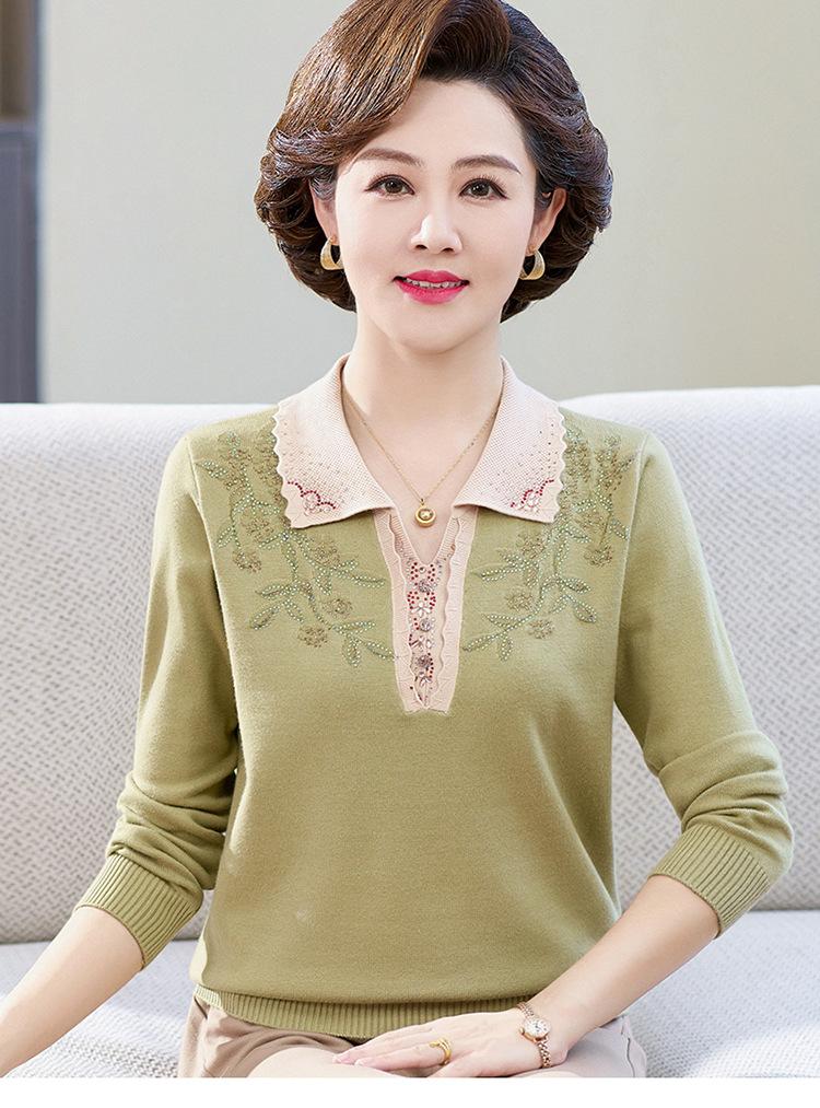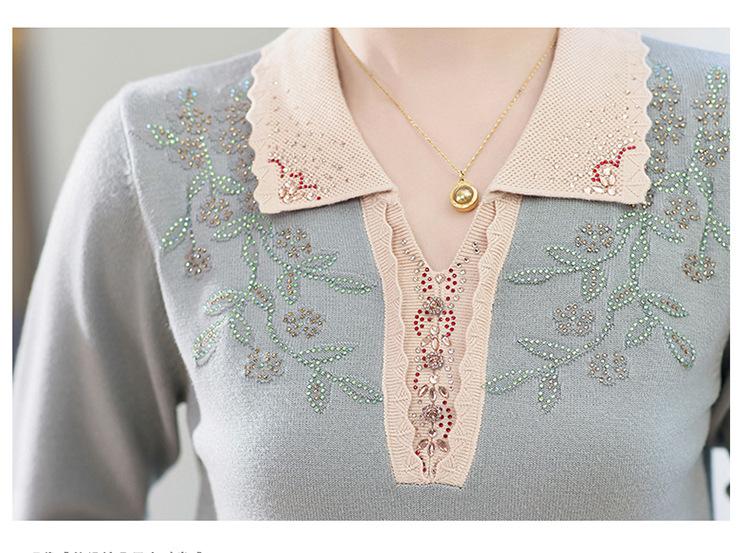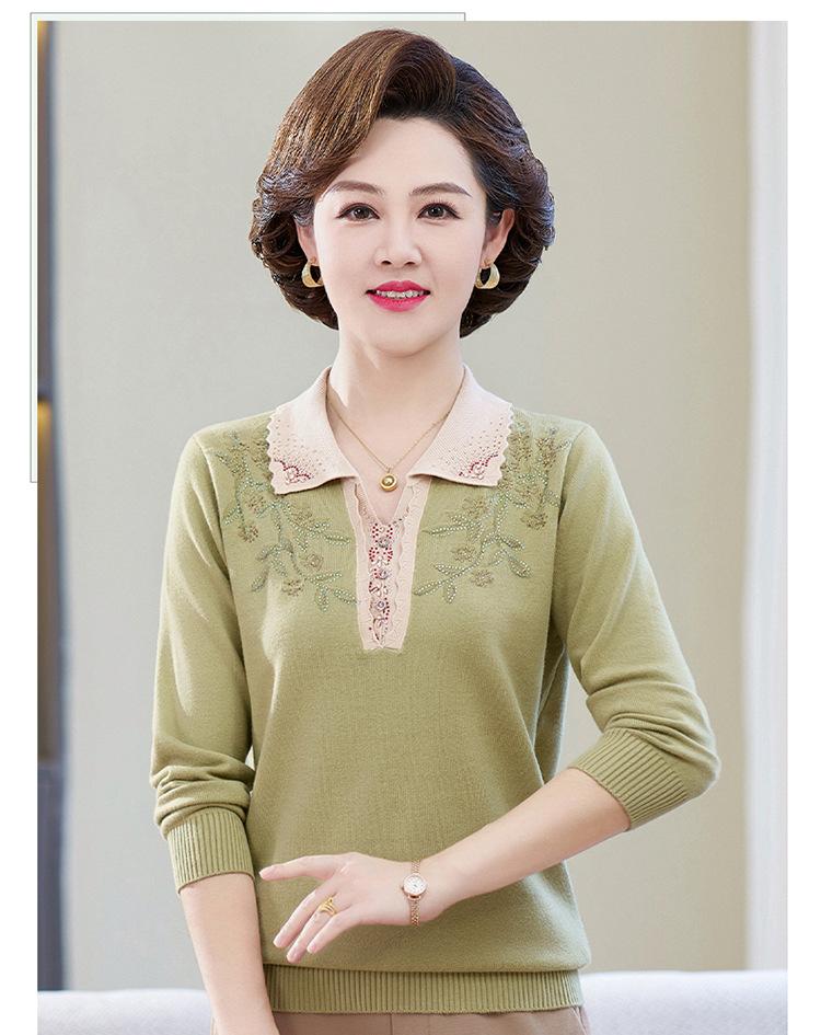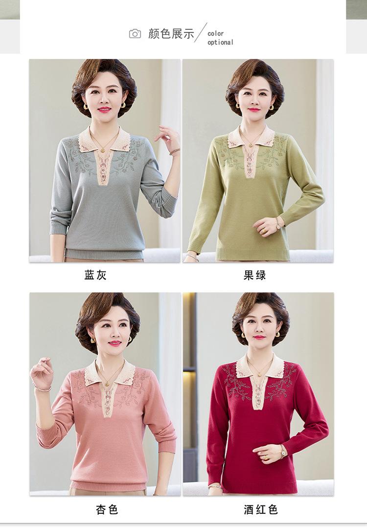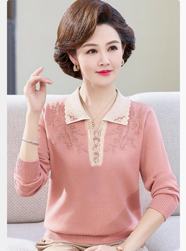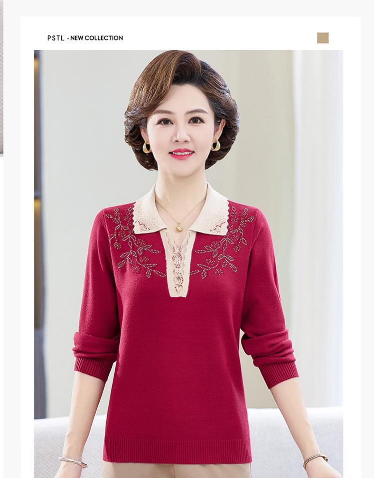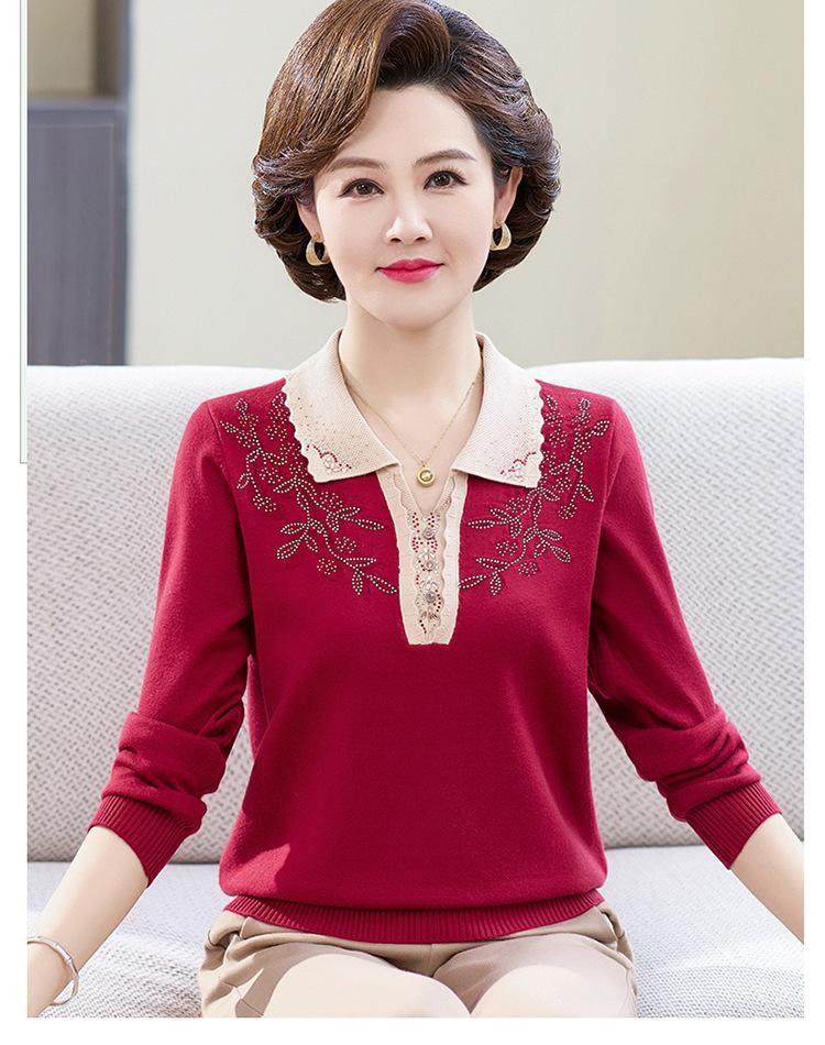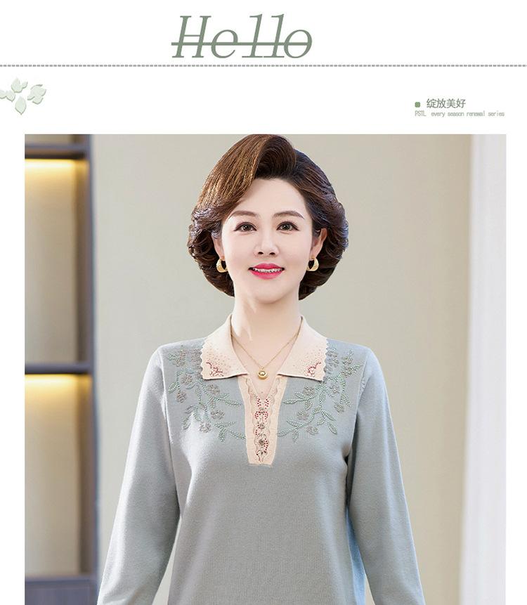 Camisa de punto de manga larga de primavera para madres de mediana edad, blusa bordada, nueva camisa de fondo estilo occidental de otoño para mujeres de mediana edad y mayores