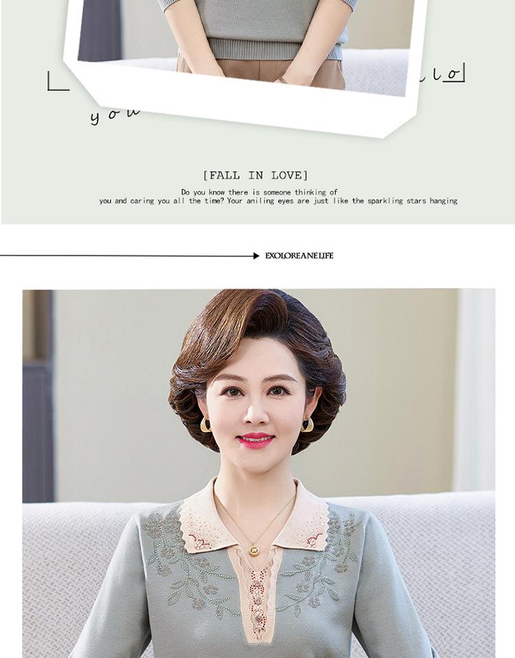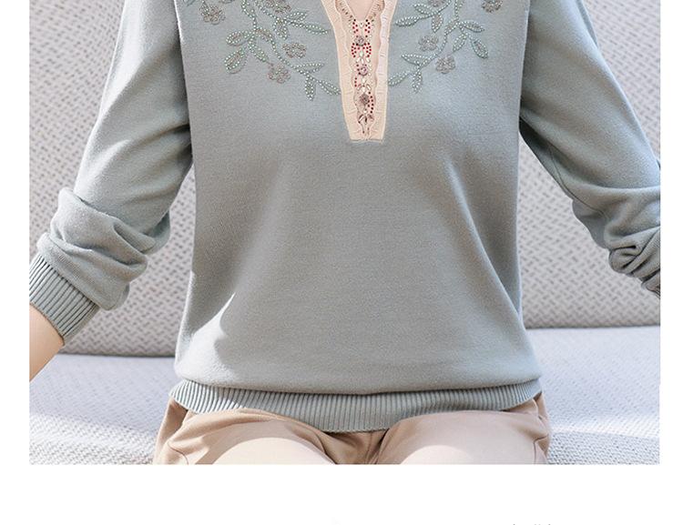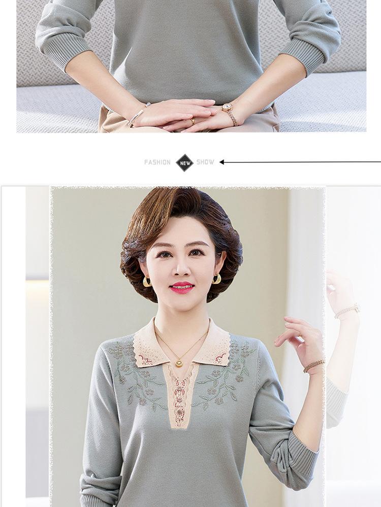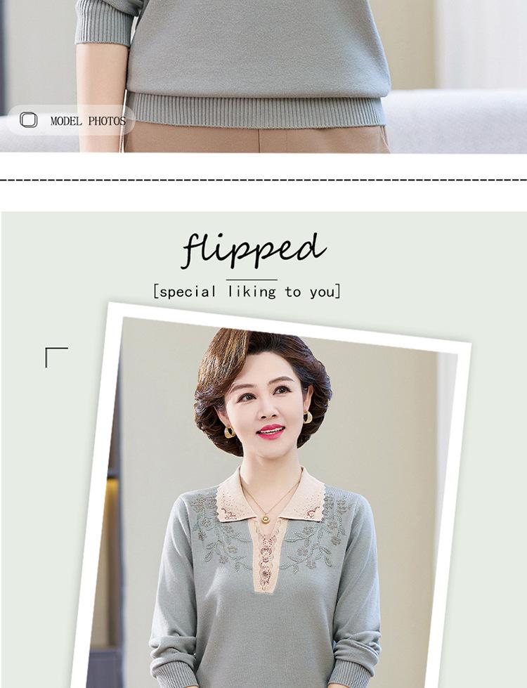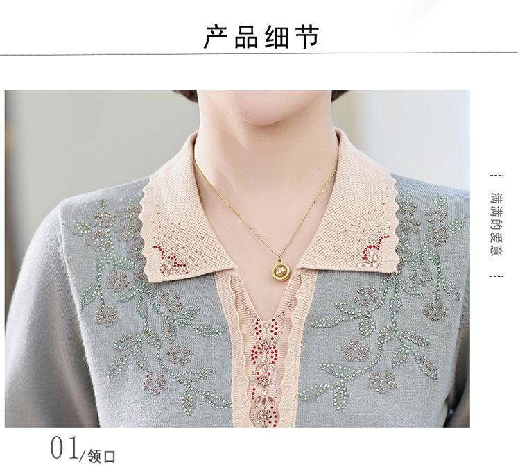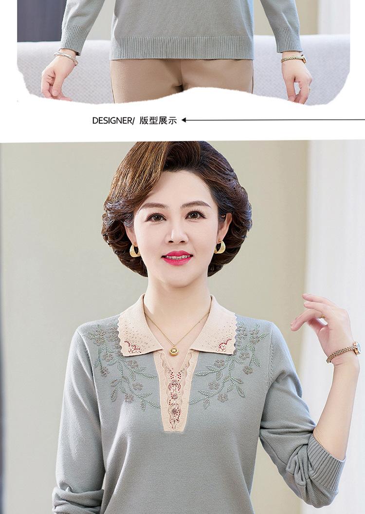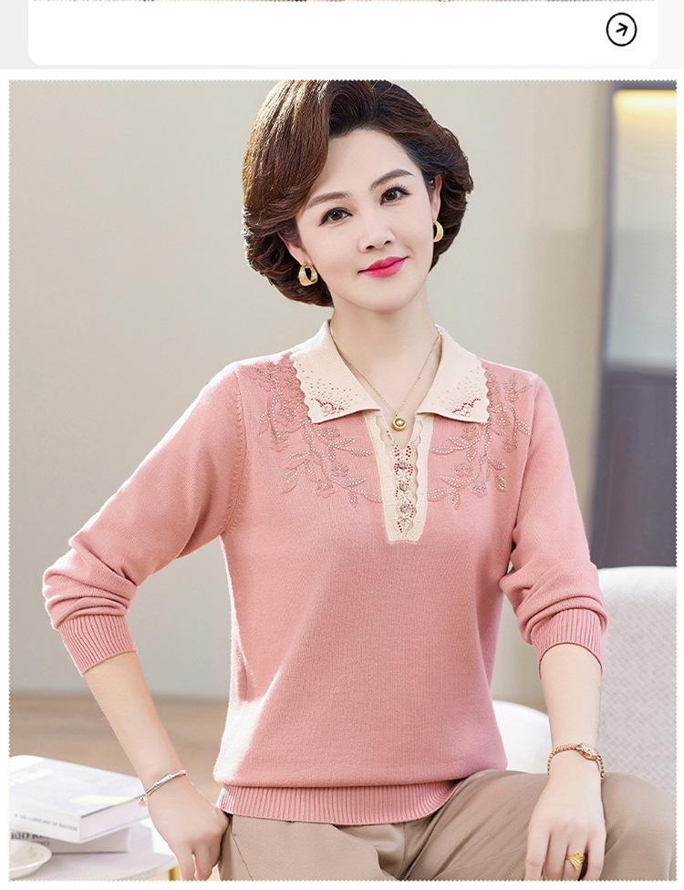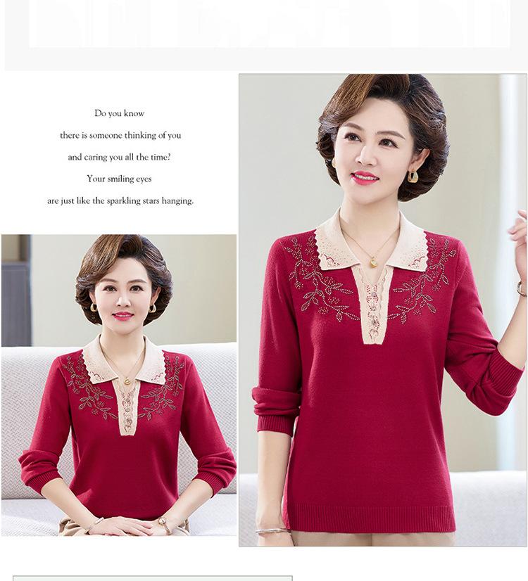 Camisa de punto de manga larga de primavera para madres de mediana edad, blusa bordada, nueva camisa de fondo estilo occidental de otoño para mujeres de mediana edad y mayores