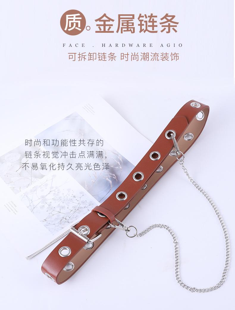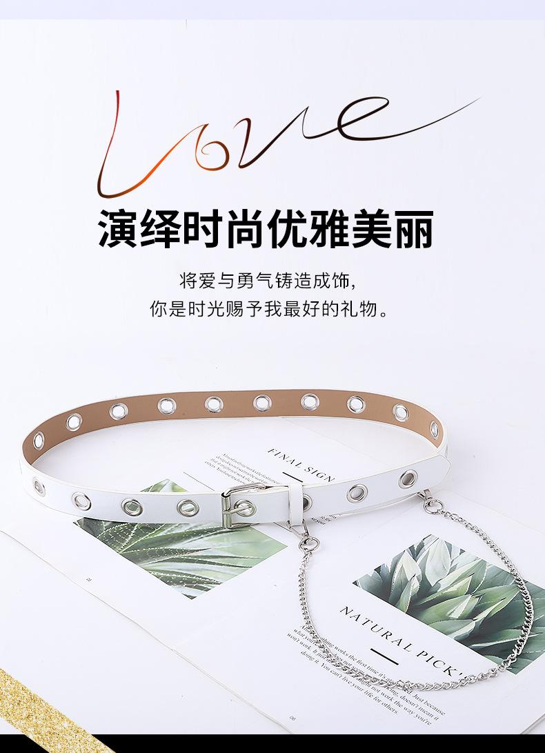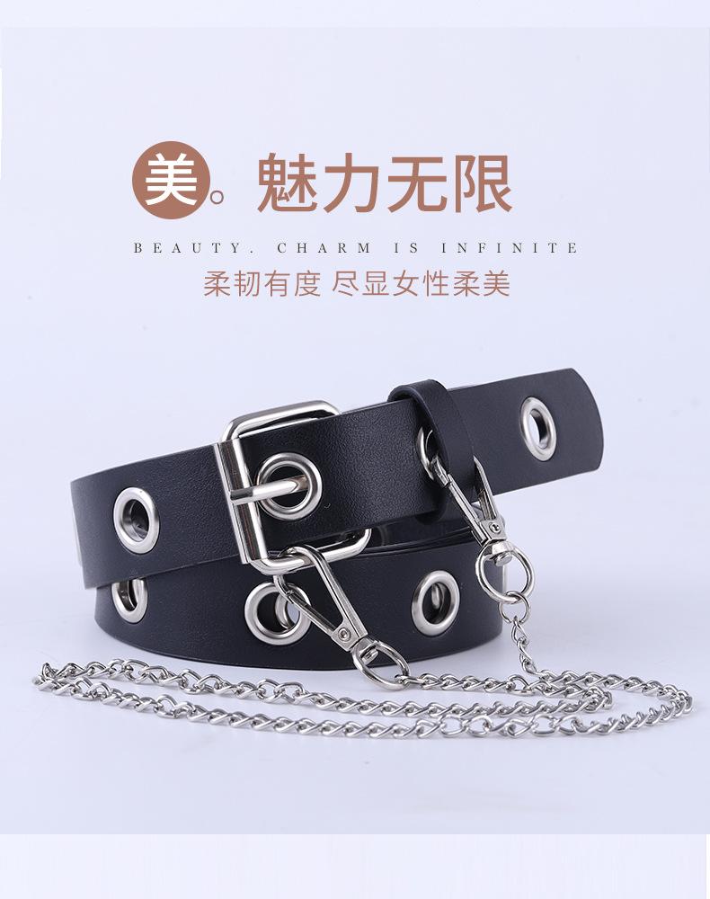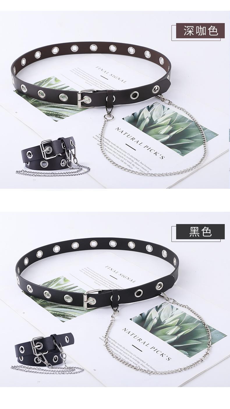 Cinturón de cadena estilo punk estrictamente seleccionado para mujer, estilo informal, con hebilla de pasador y decoración de ojo hueco.