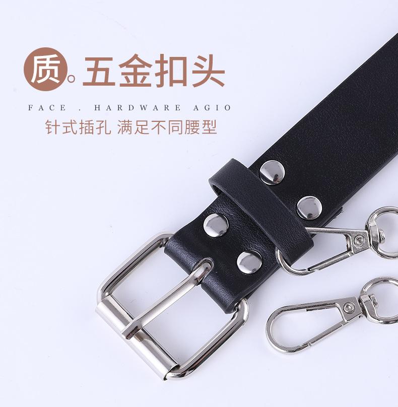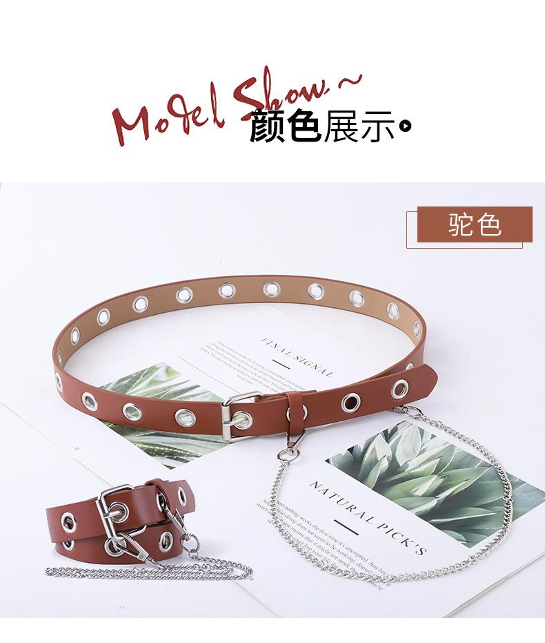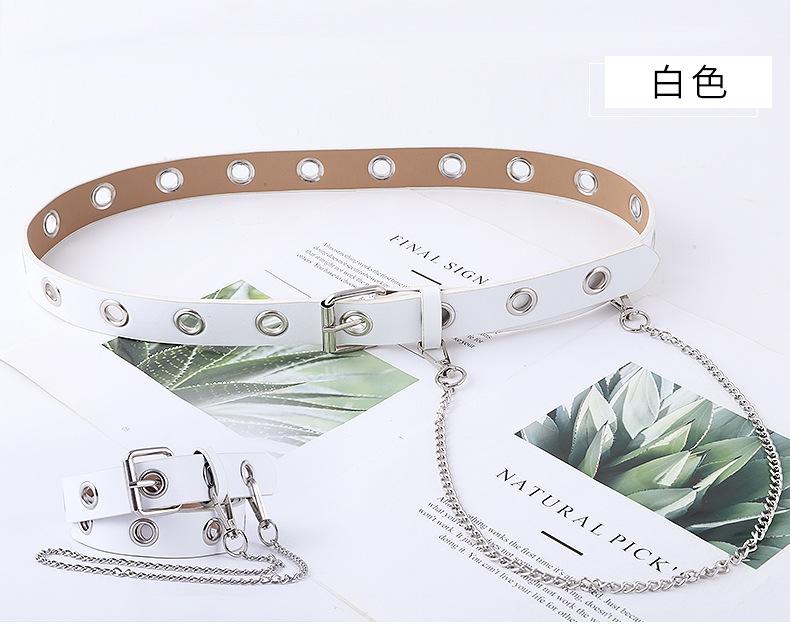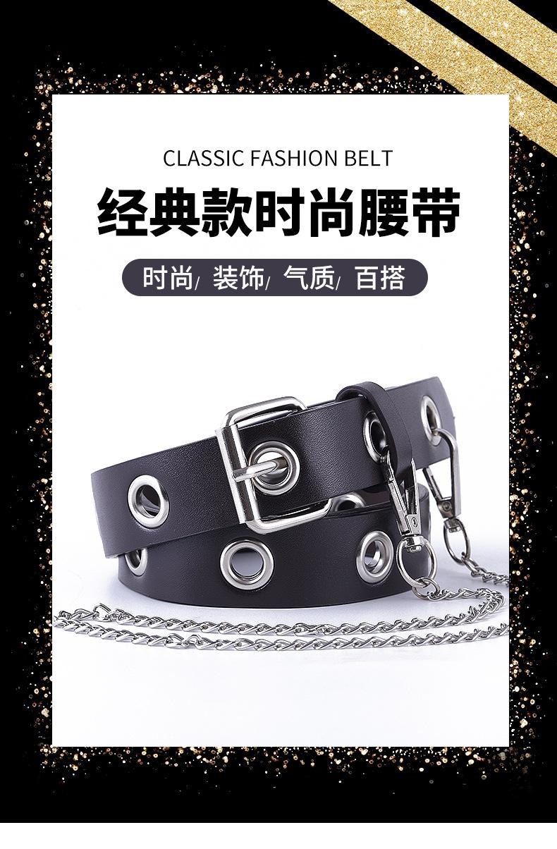 Cinturón de cadena estilo punk estrictamente seleccionado para mujer, estilo informal, con hebilla de pasador y decoración de ojo hueco.