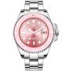 Reloj de mujer con esfera grande, correa de acero, luminoso, resistente al agua, automático, mecánico, reloj de mujer con contador