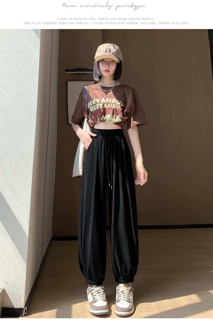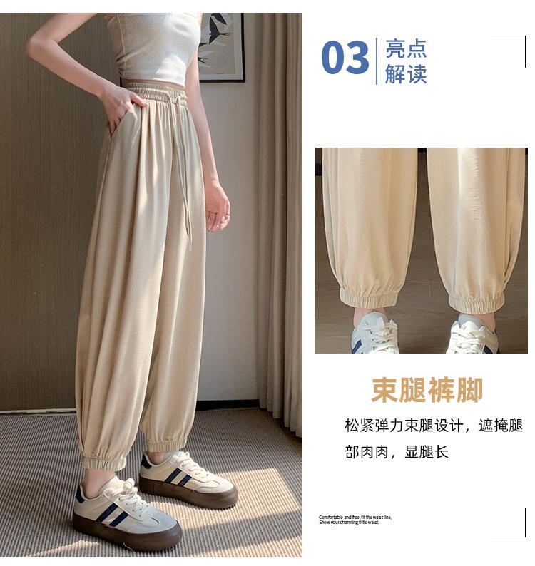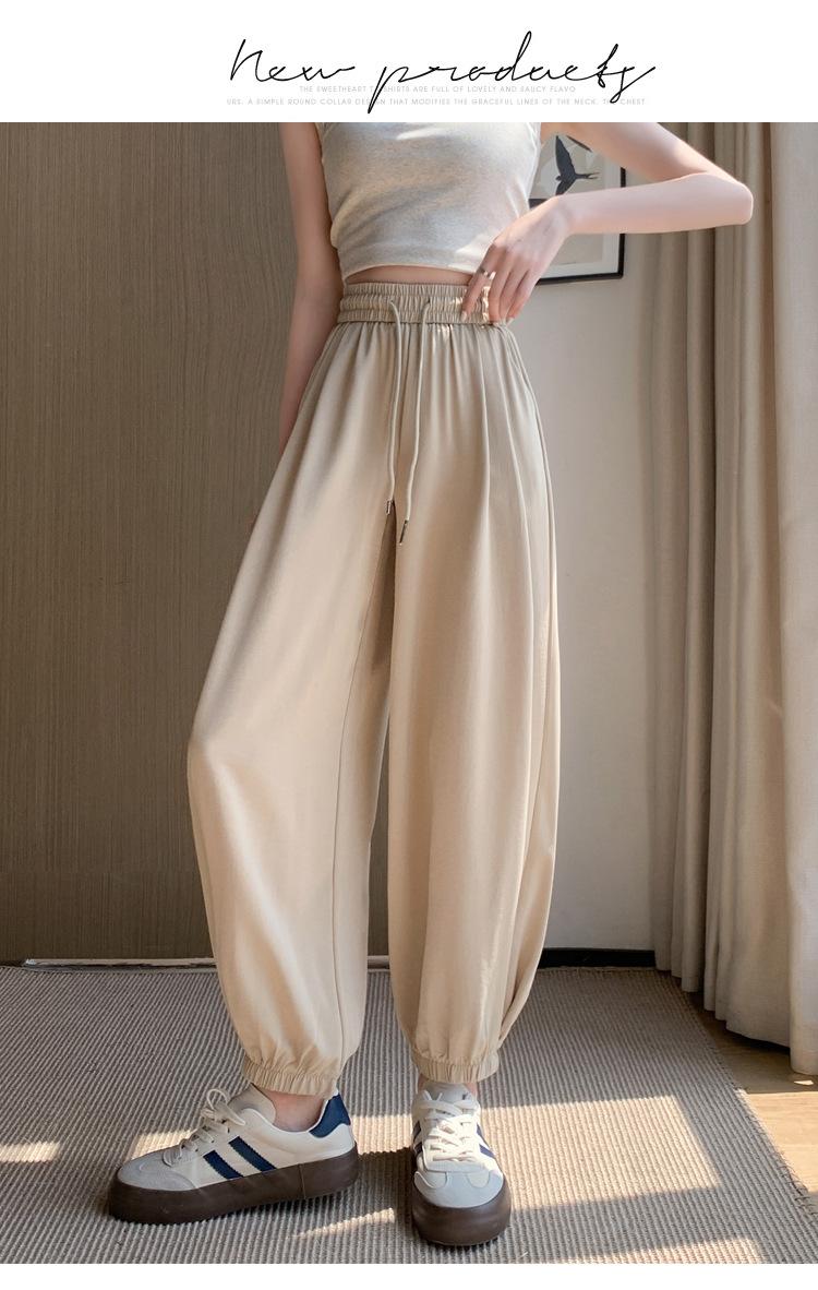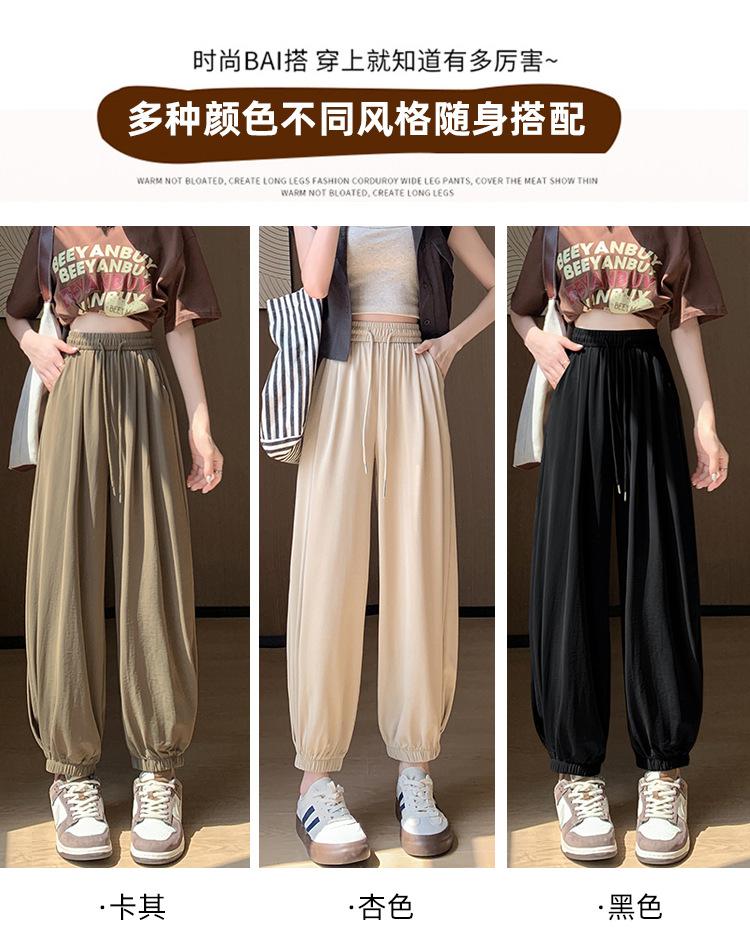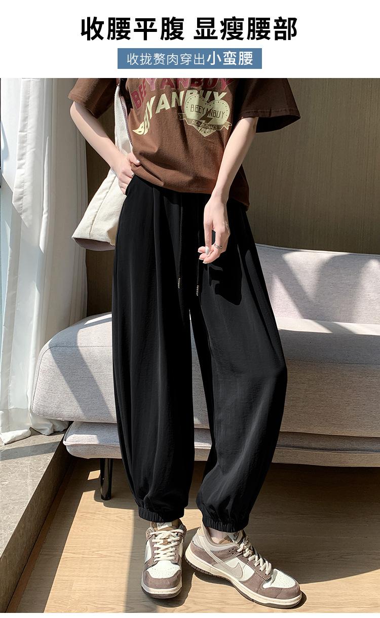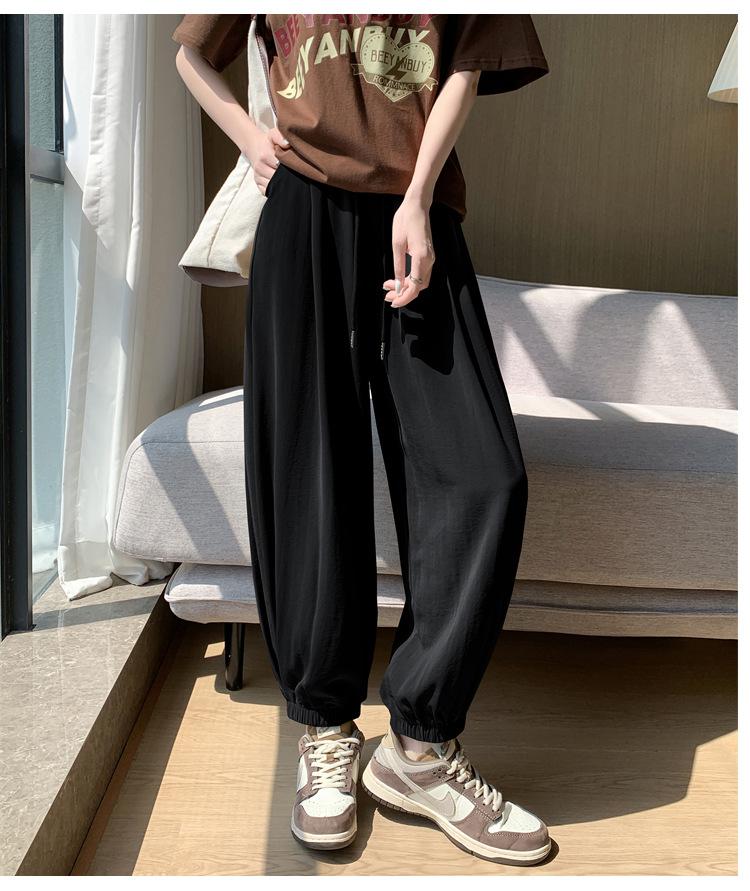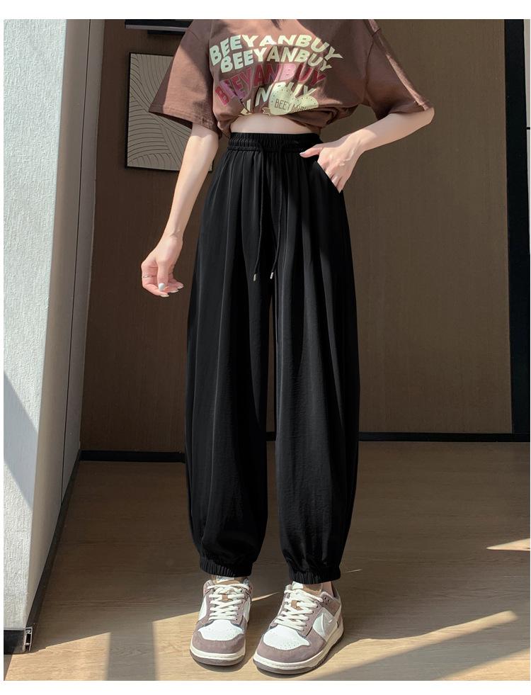 Pantalones bombachos negros con lazo en la pierna para mujer Verano Delgados 2025 Nuevos Cintura alta Slim Casual Nueve puntos Protección solar Harem Zanahoria