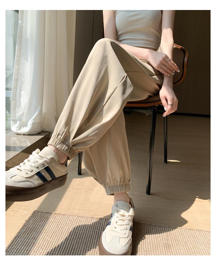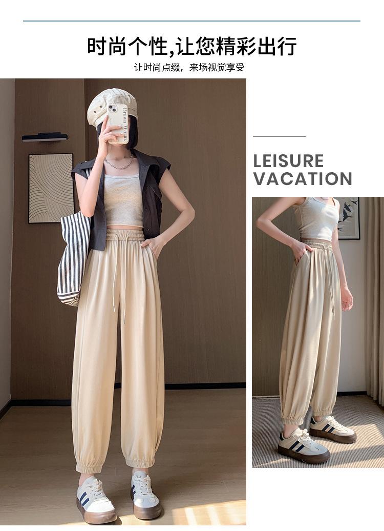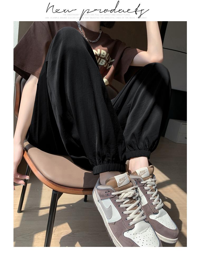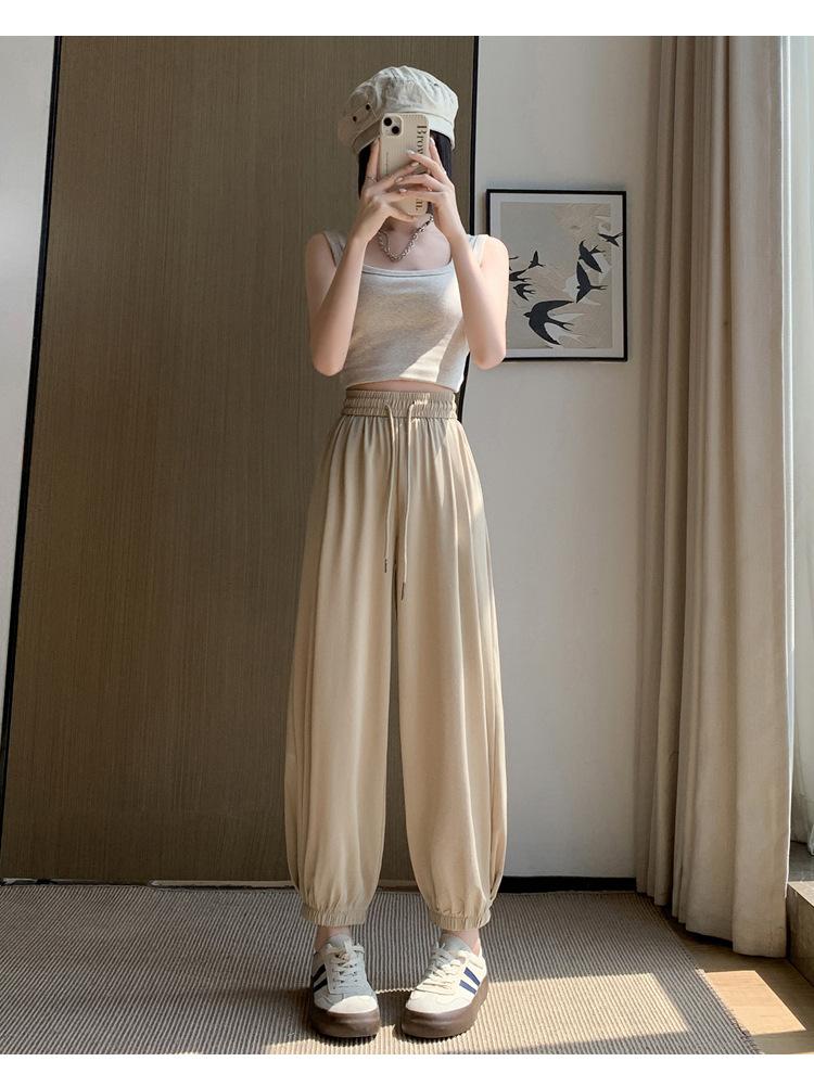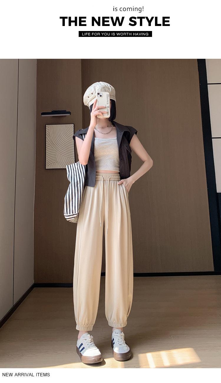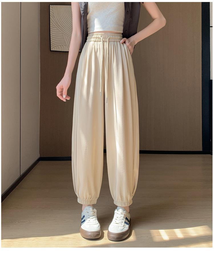 Pantalones bombachos negros con lazo en la pierna para mujer Verano Delgados 2025 Nuevos Cintura alta Slim Casual Nueve puntos Protección solar Harem Zanahoria