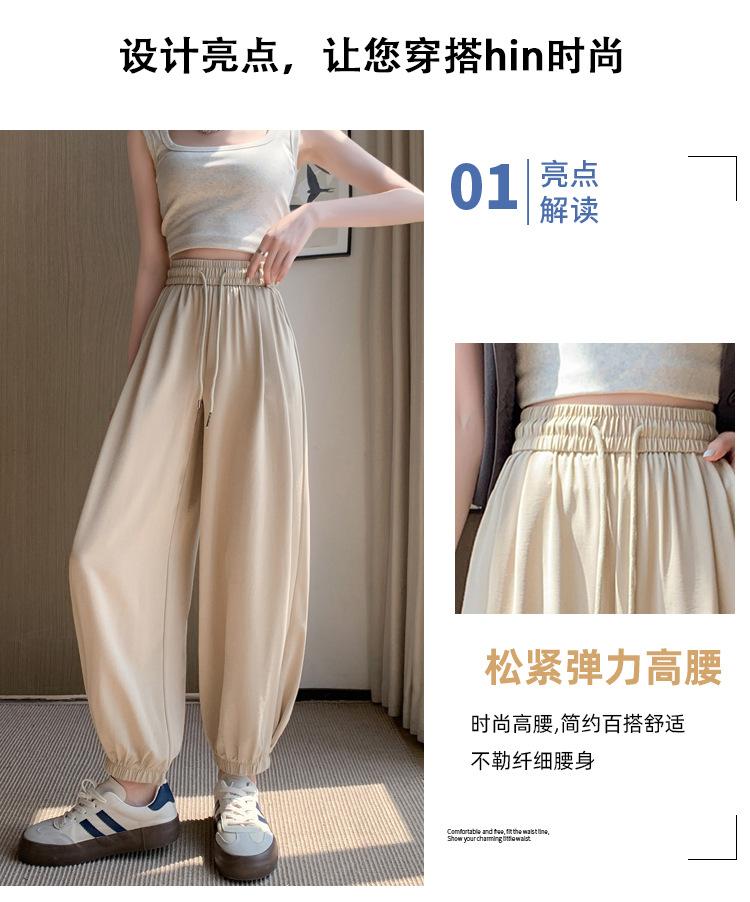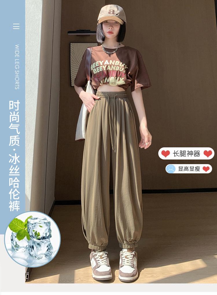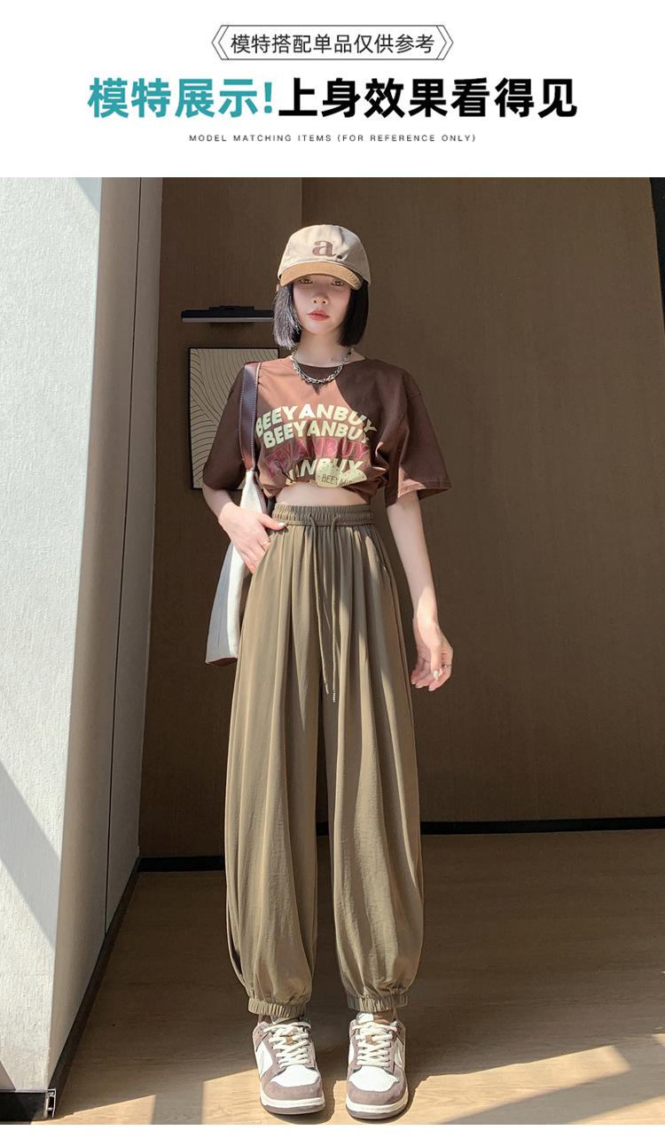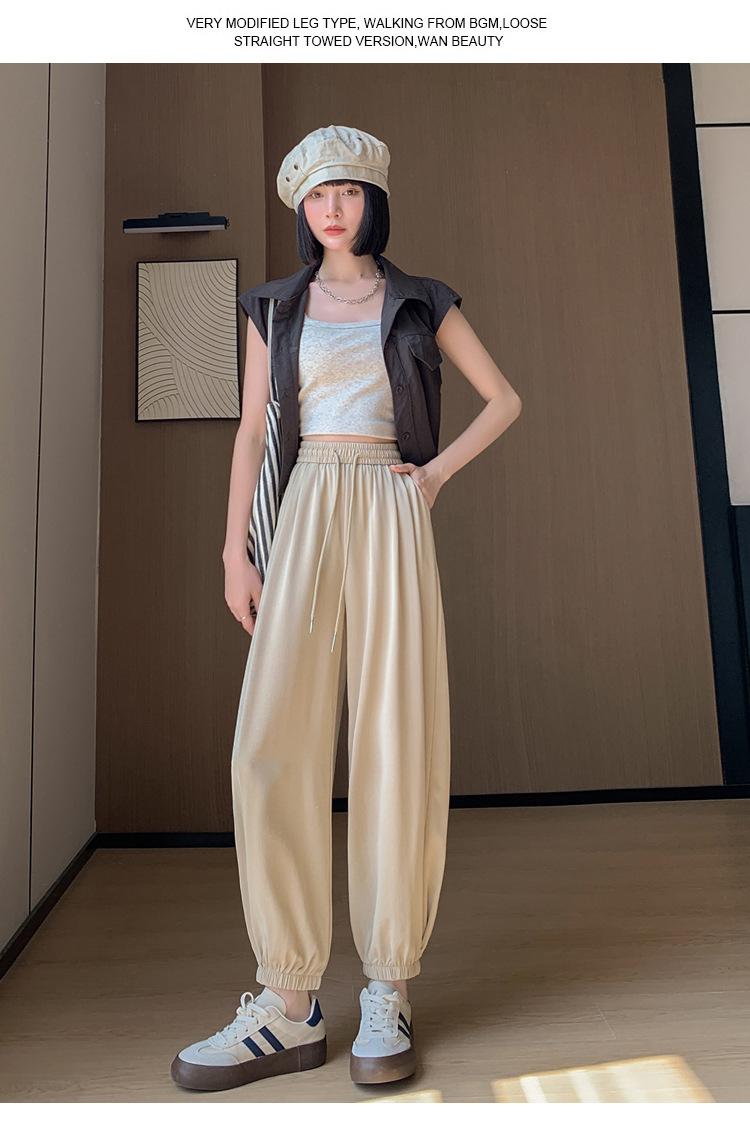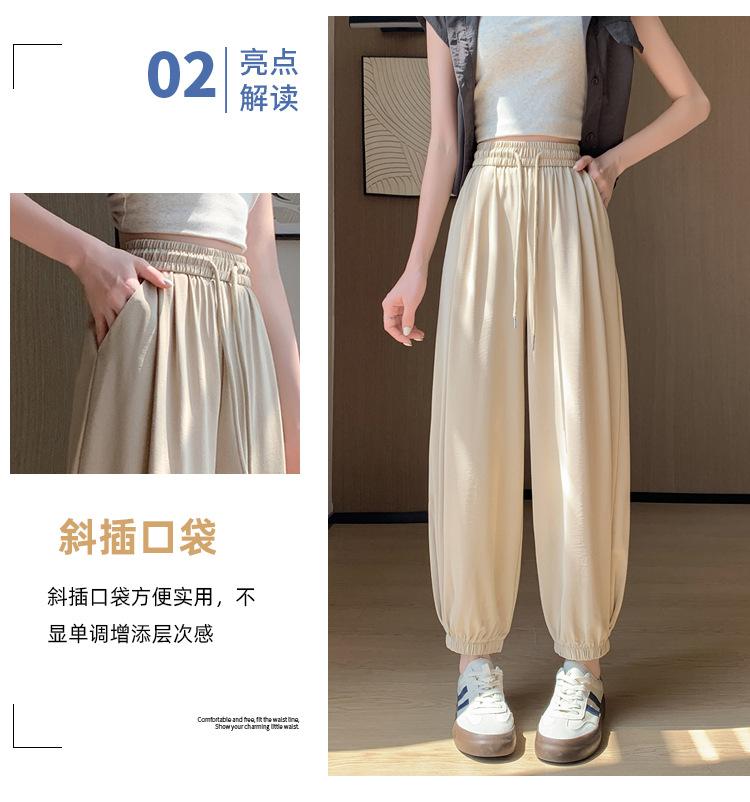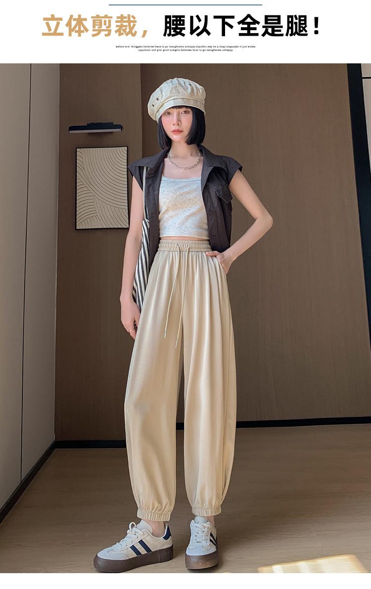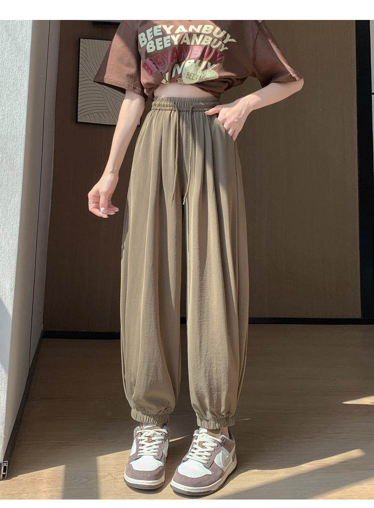 Pantalones bombachos negros con lazo en la pierna para mujer Verano Delgados 2025 Nuevos Cintura alta Slim Casual Nueve puntos Protección solar Harem Zanahoria