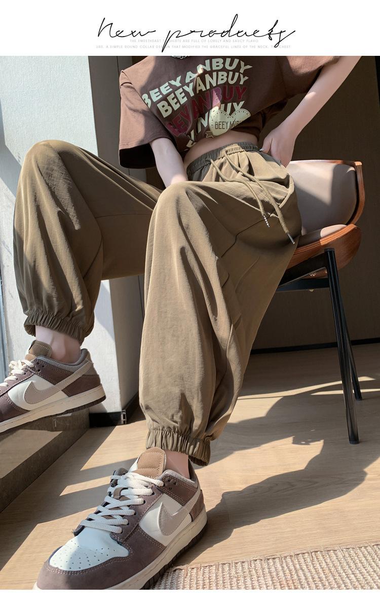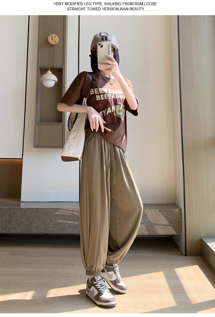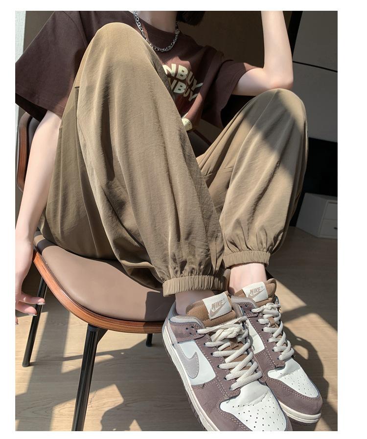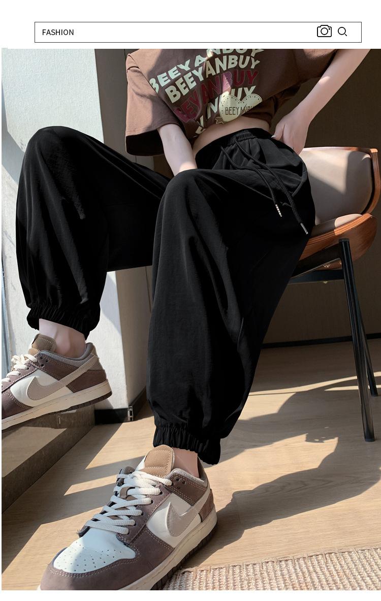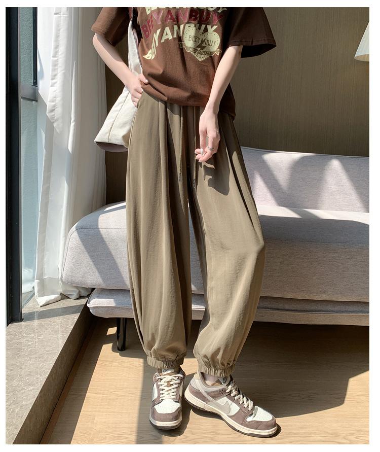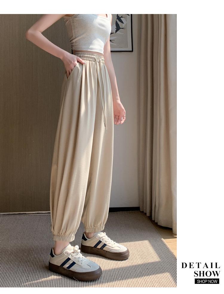 Pantalones bombachos negros con lazo en la pierna para mujer Verano Delgados 2025 Nuevos Cintura alta Slim Casual Nueve puntos Protección solar Harem Zanahoria