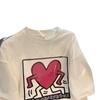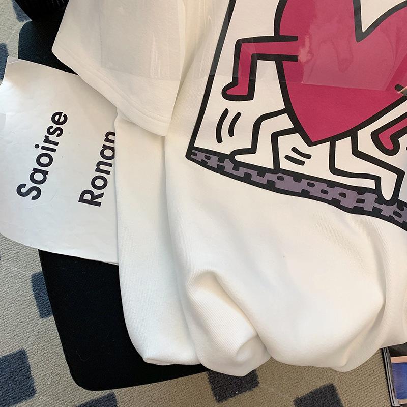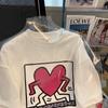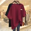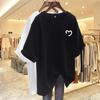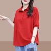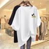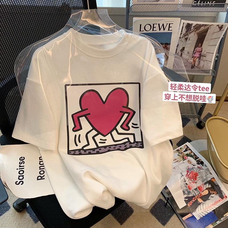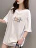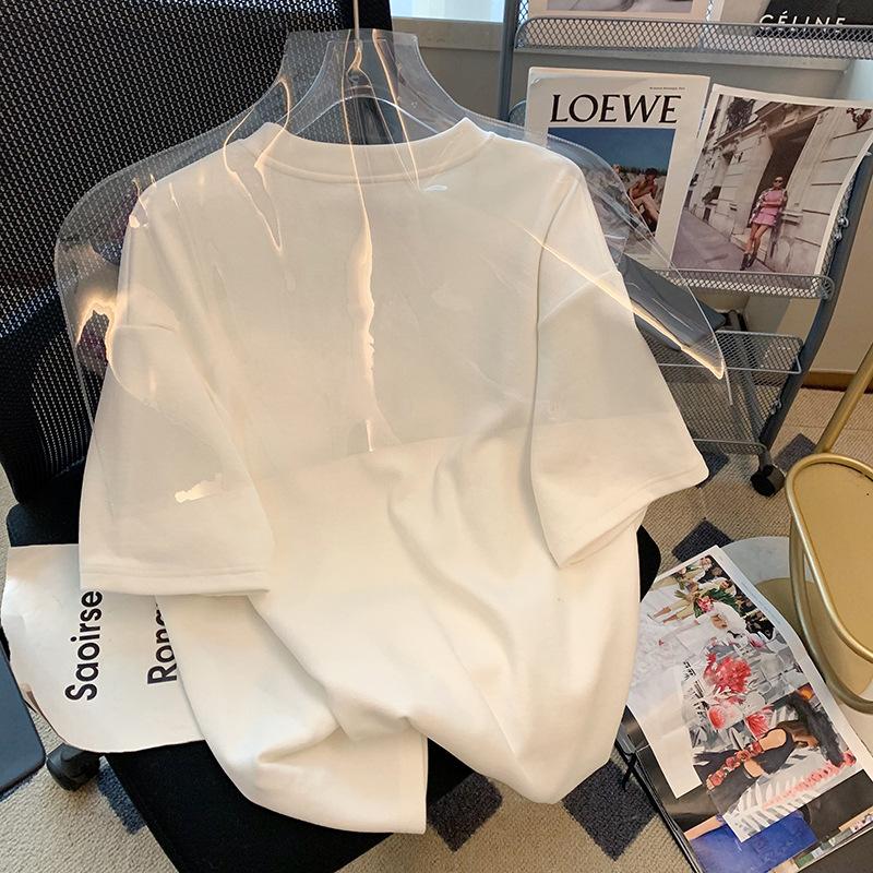 Camiseta blanca de manga corta con cuello de bolsa de algodón para mujer, novedad de verano 2024, top informal versátil con estampado de largo medio y suelto