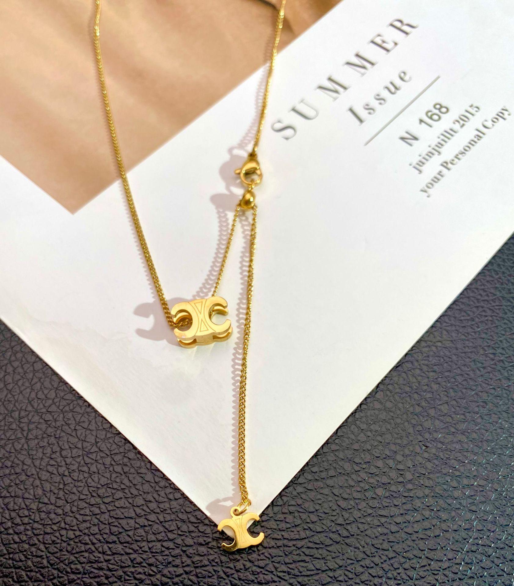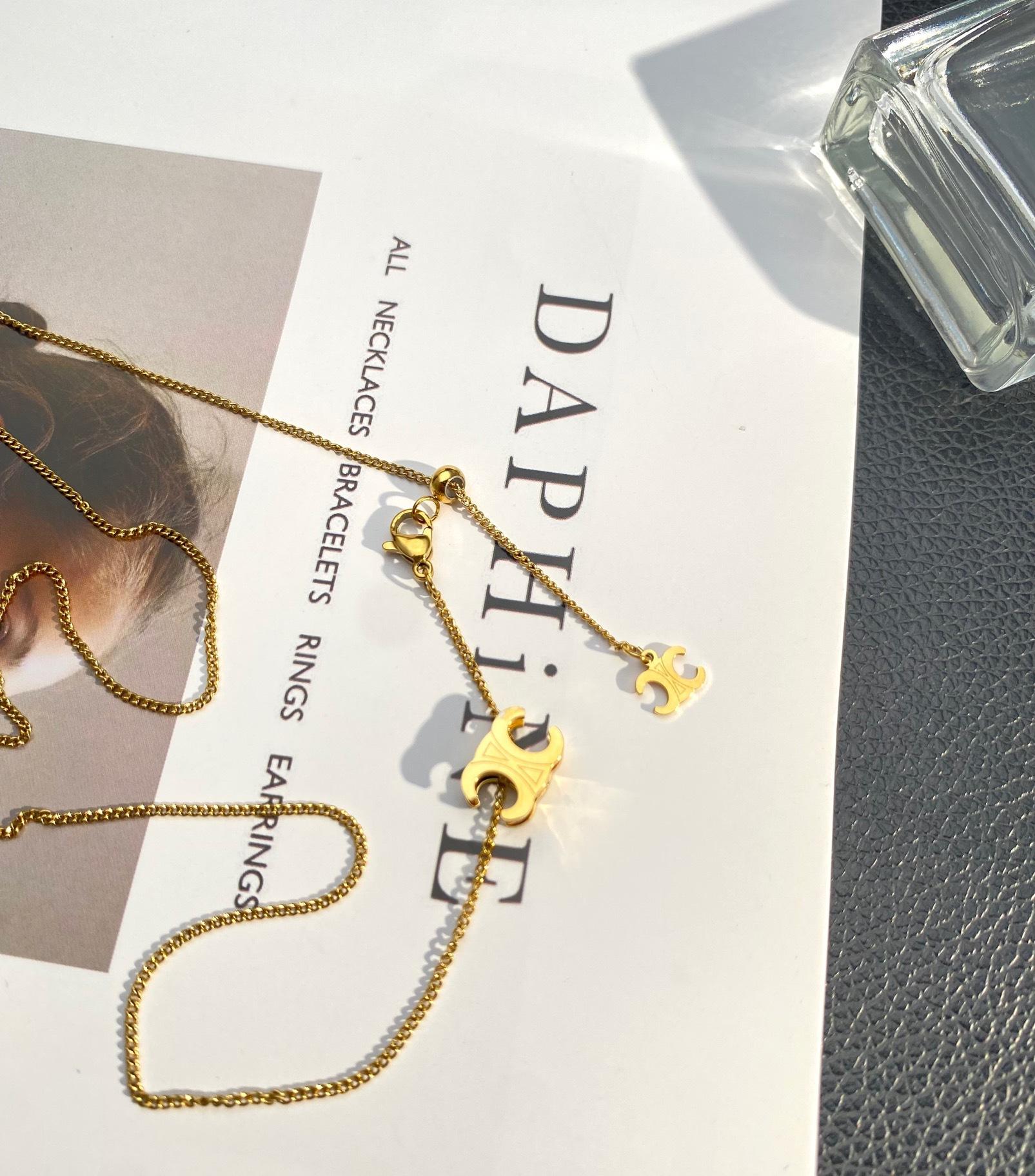 Moda Transfronteriza Europea y Americana Estilo Lujo Ligero Todo Combinable Collar Pull Arco del Triunfo Joyería de Acero de Titanio de Alta Calidad que no se Decolora para Mujer