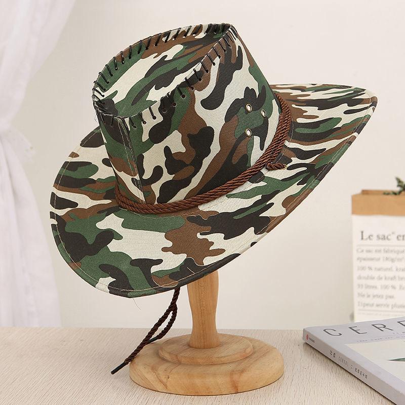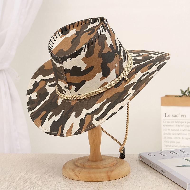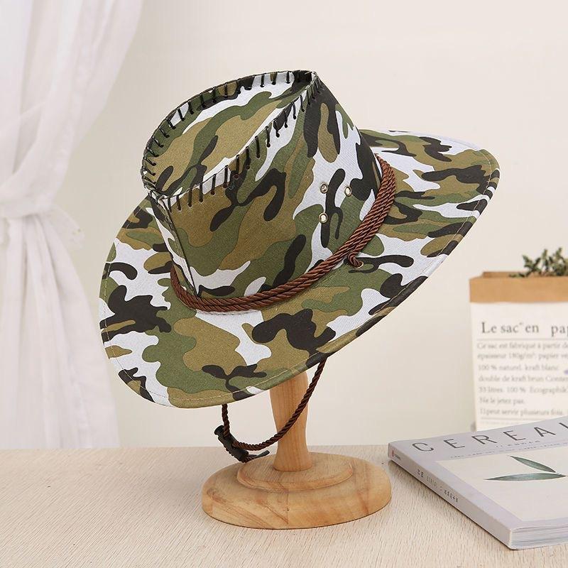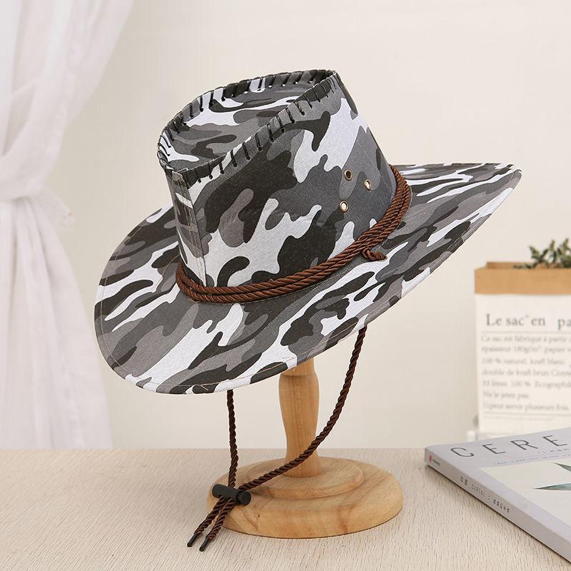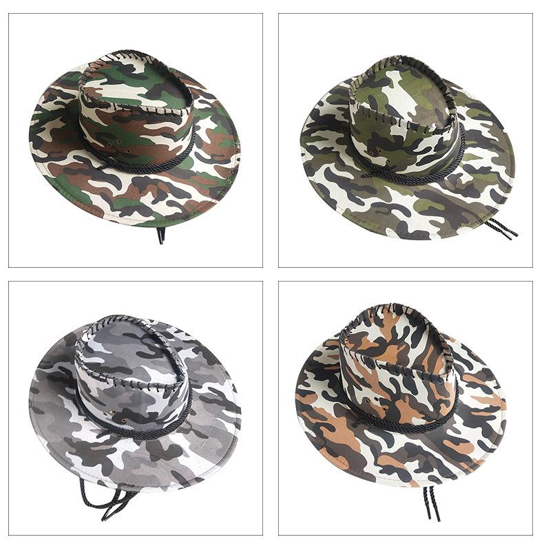 Sombrero de vaquero occidental táctico de camuflaje, sombrero de abanico militar europeo y americano, sombrero de ala grande para exteriores, sombrero parasol deportivo para hombre, sombrero de pesca a prueba de viento