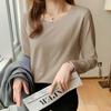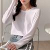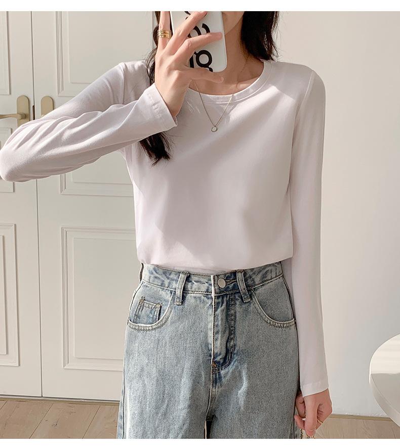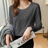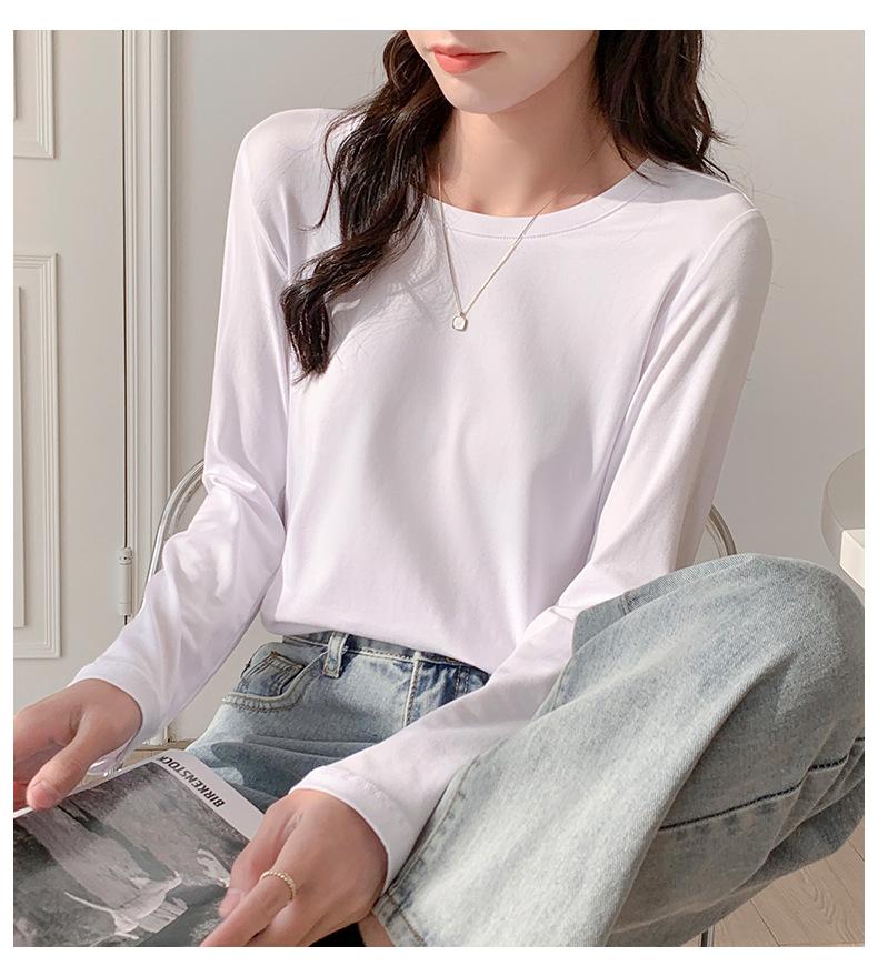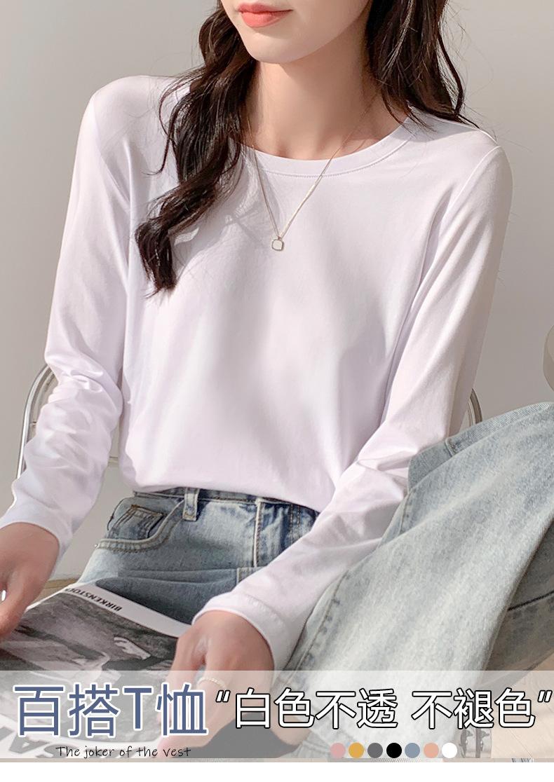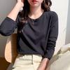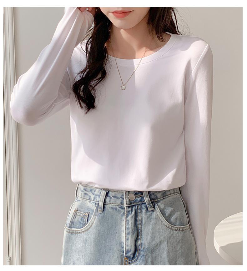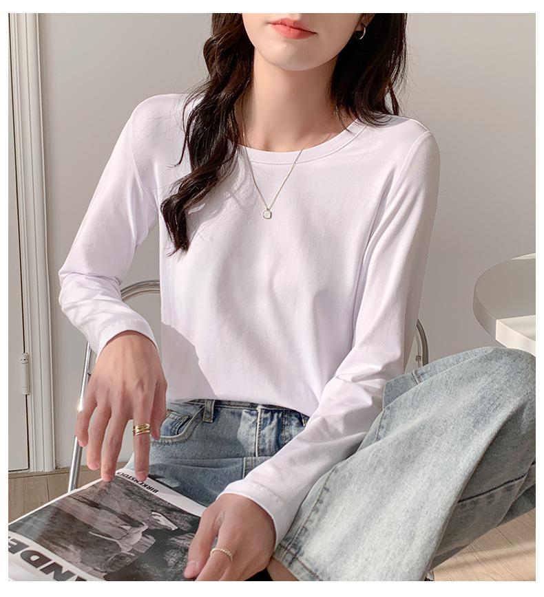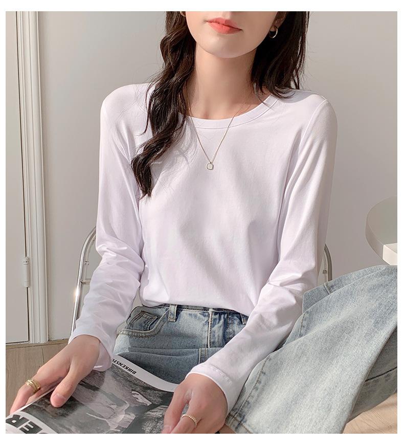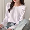 Camiseta básica holgada de algodón de manga larga para mujer, primavera y otoño 2025, nueva camiseta blanca sencilla que combina con todo.