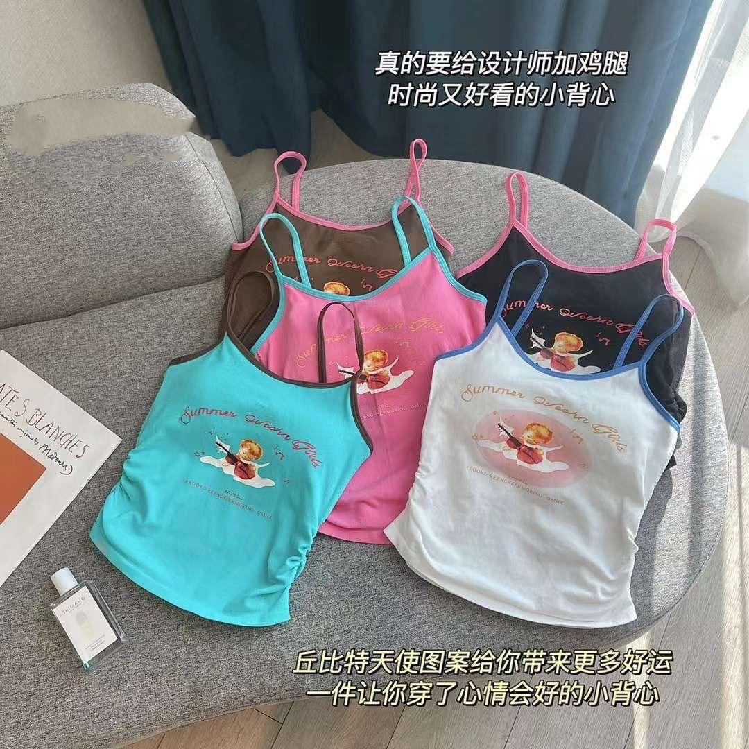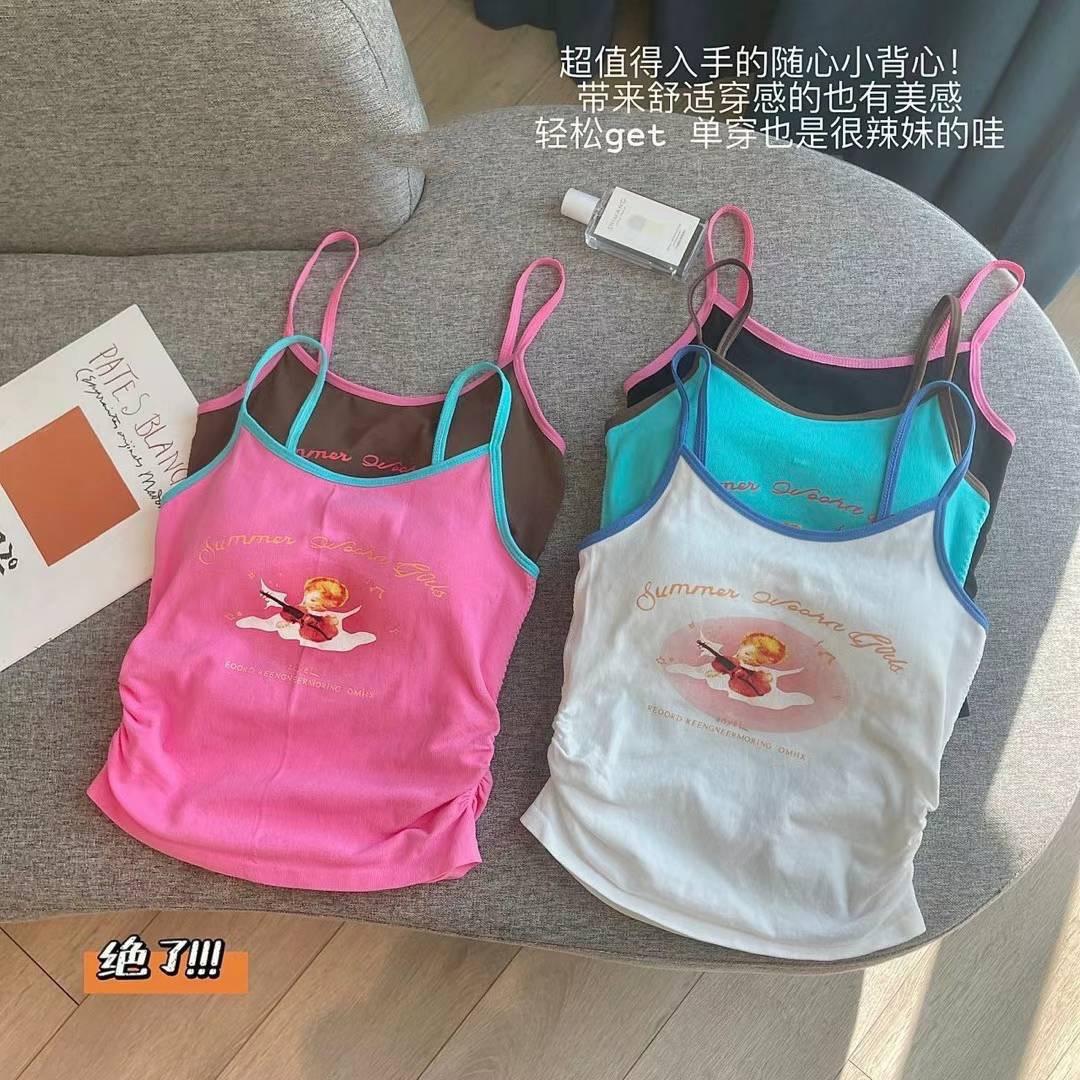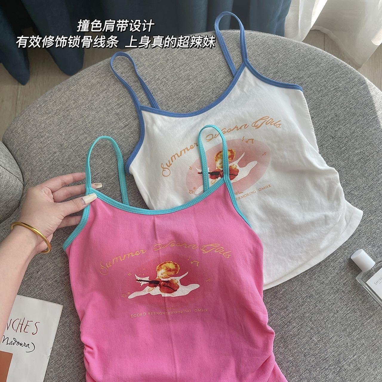 Camisola pequeña con pecho interior envuelto en color de contraste para chica sexy, ropa exterior de verano para mujer, top corto tipo tubo con ombligo
