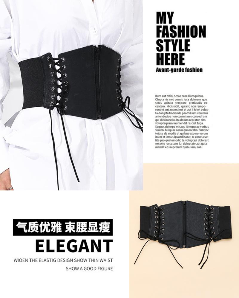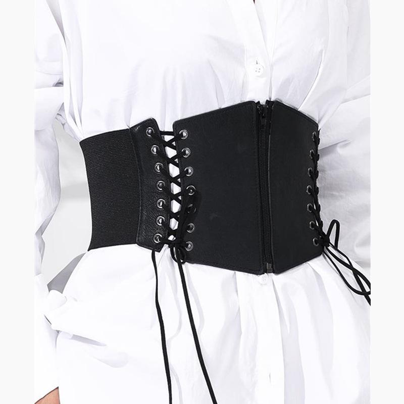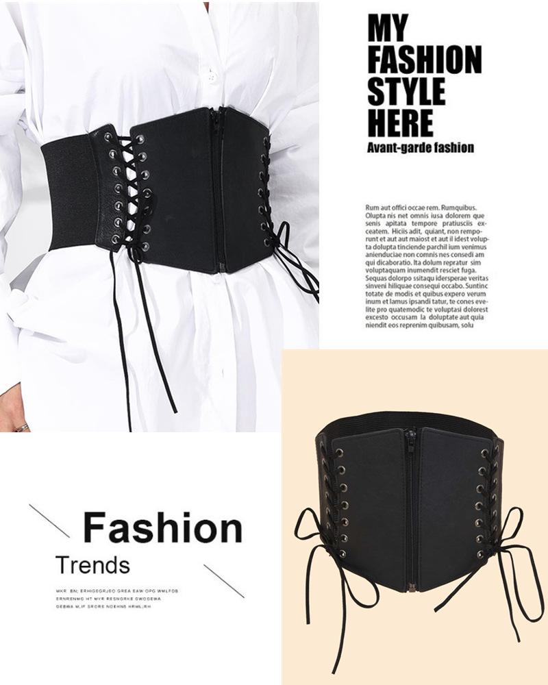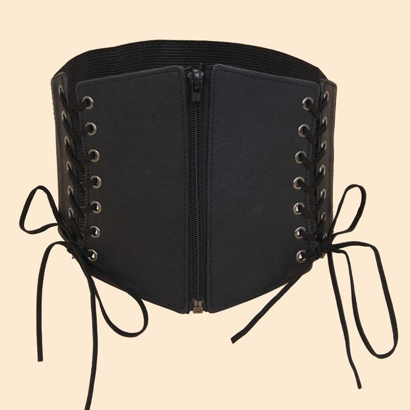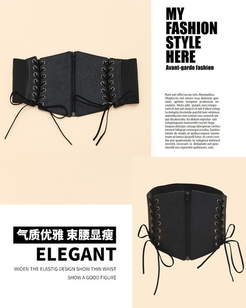 Europeo y Americano Transfronterizo para Mujer Cremallera Elástico Sello de Cintura Diseño de Hilos con Cremallera Cinturón Ancho Cintura de Plástico Cinturón a Juego para Vestido