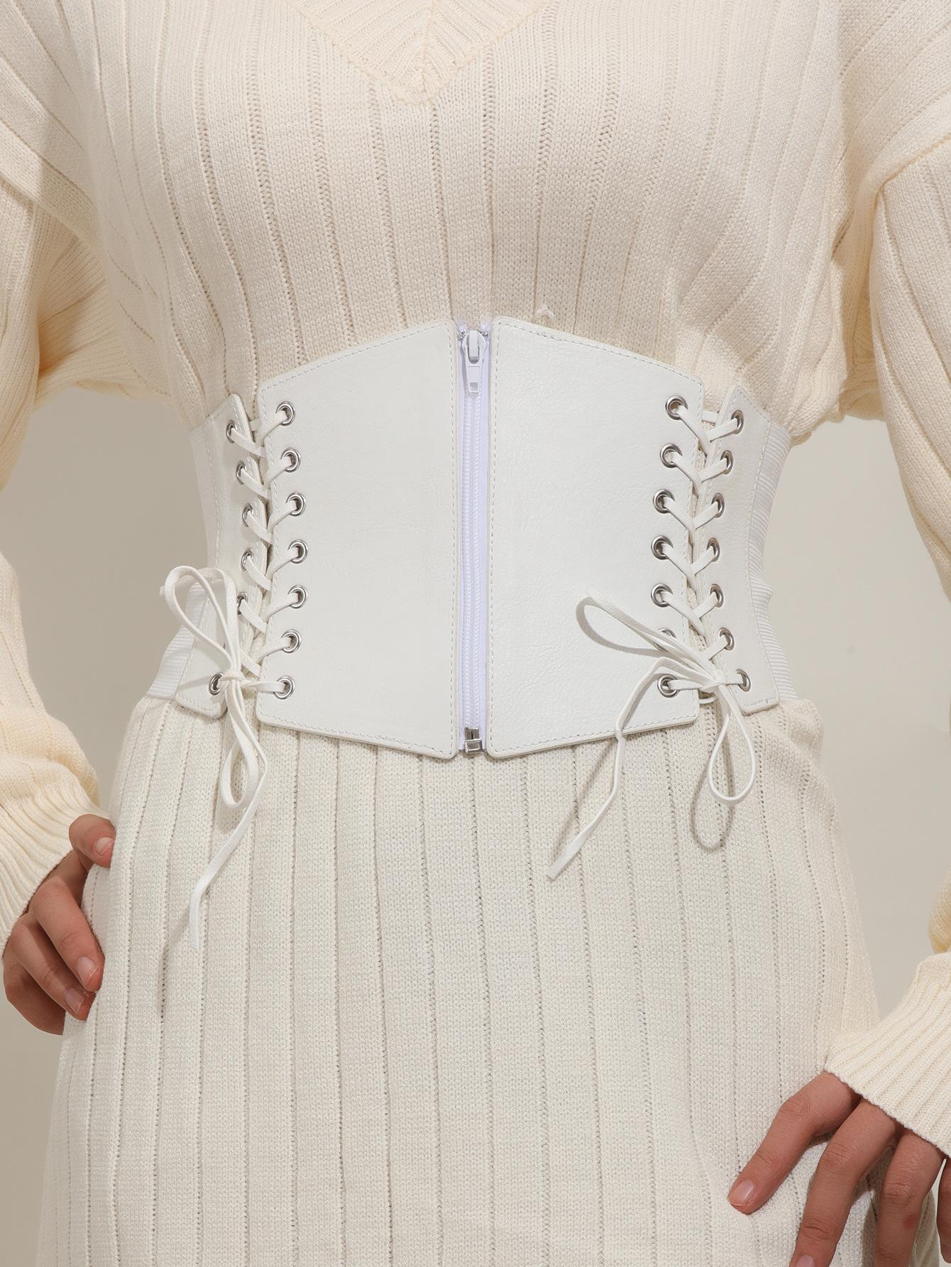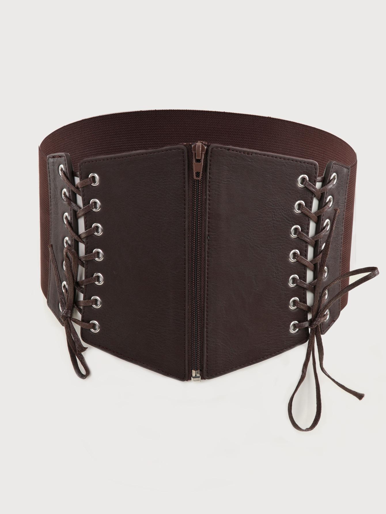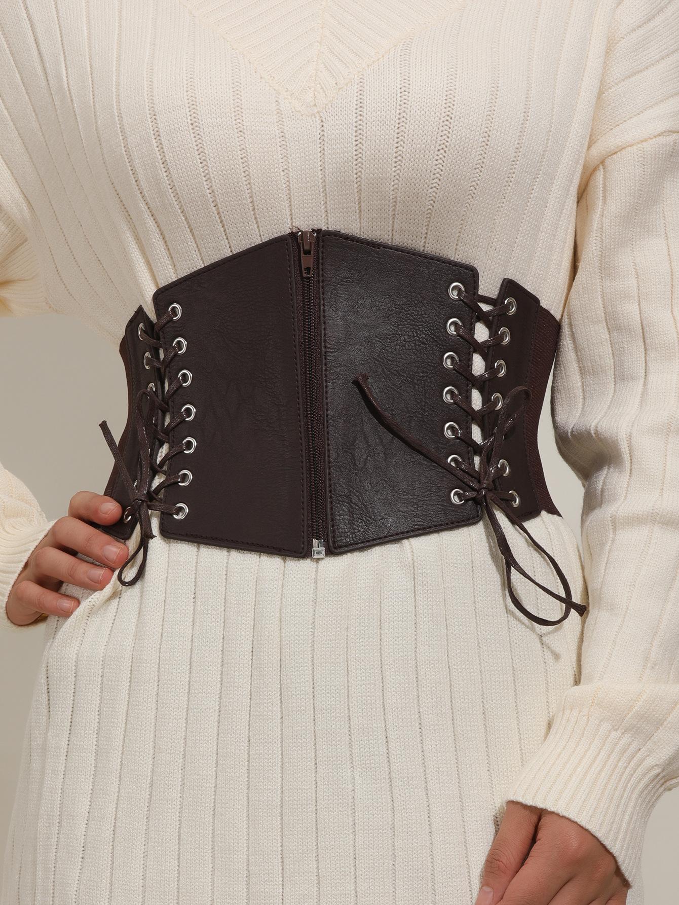 Europeo y Americano Transfronterizo para Mujer Cremallera Elástico Sello de Cintura Diseño de Hilos con Cremallera Cinturón Ancho Cintura de Plástico Cinturón a Juego para Vestido