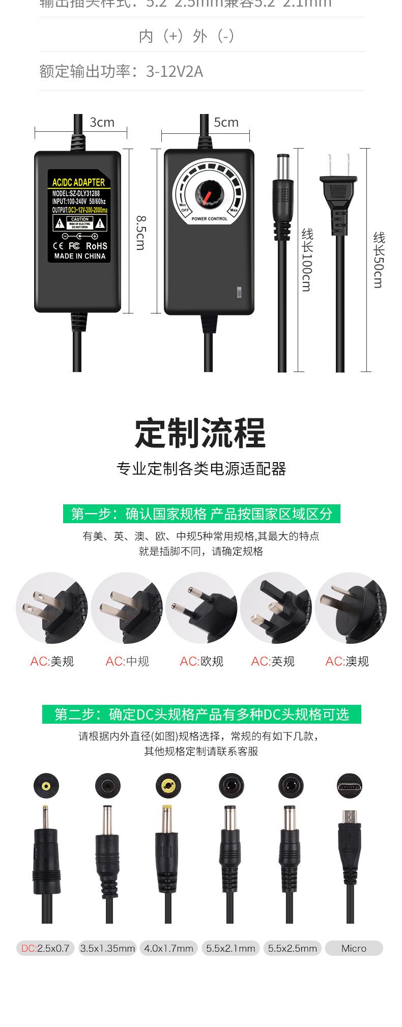 Interfaz de alimentación: La interfaz predeterminada es 5.5*2.5 (también 5.5*2.1), 4.0x1.7, 3.5*1.35, 2.5*1.7. Si necesita estas tres interfaces, ¡póngase en contacto con el propietario para obtener instrucciones!
