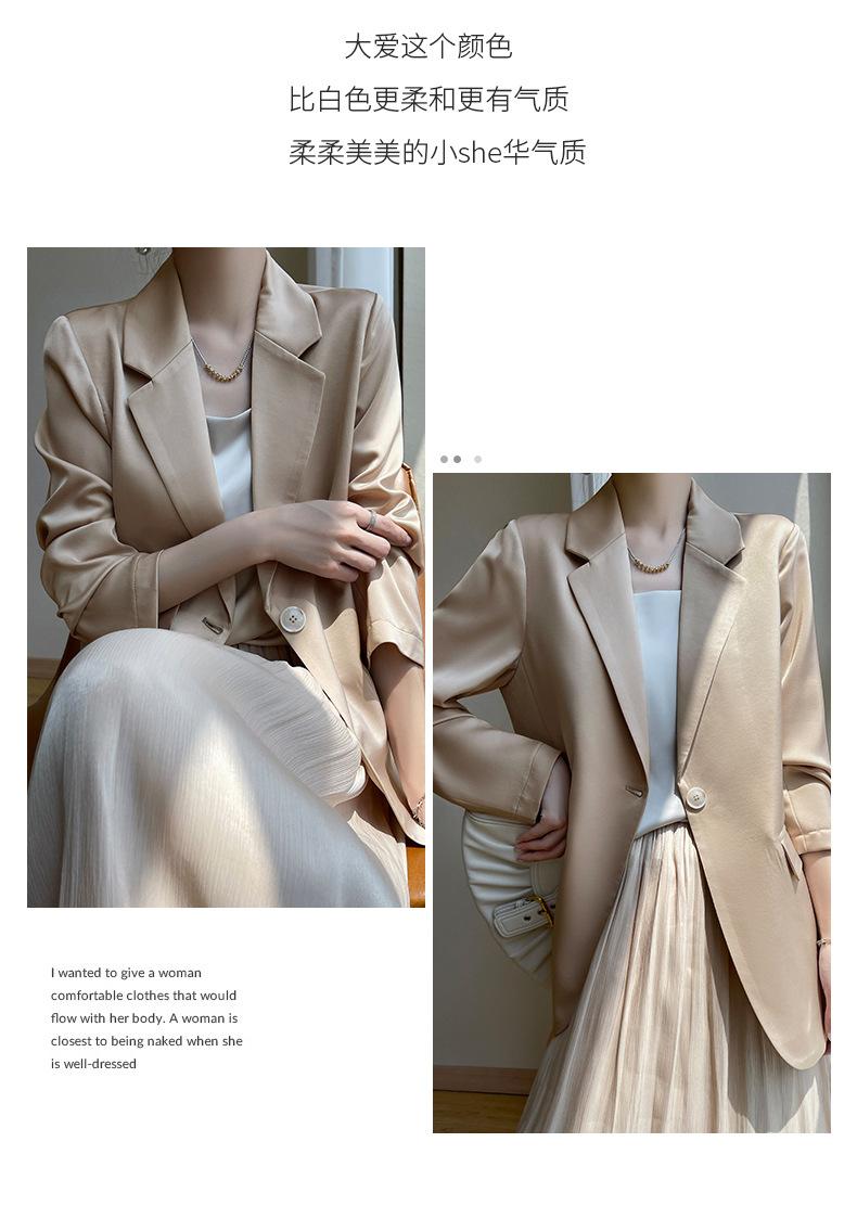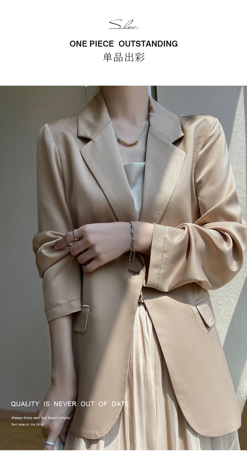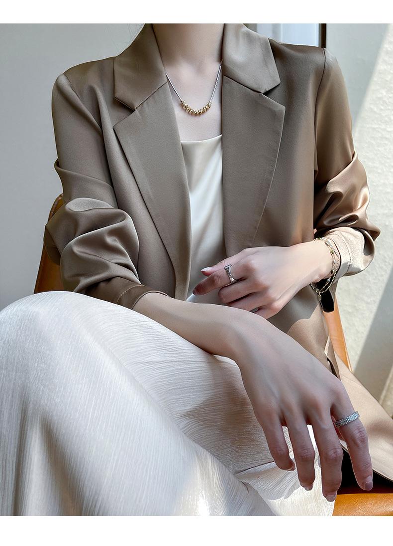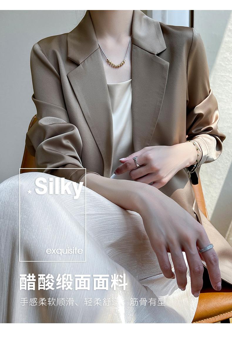 Chaqueta de traje pequeña de lujo ligera para mujer 2023 Primavera y Otoño Nuevo traje pequeño de satén versátil adelgazante de corte entallado de moda