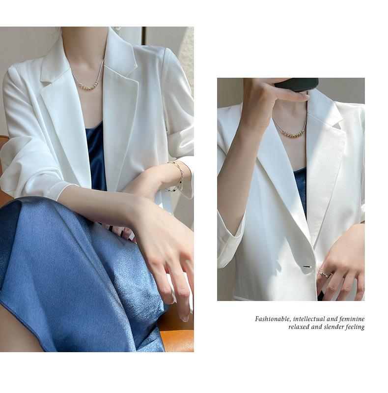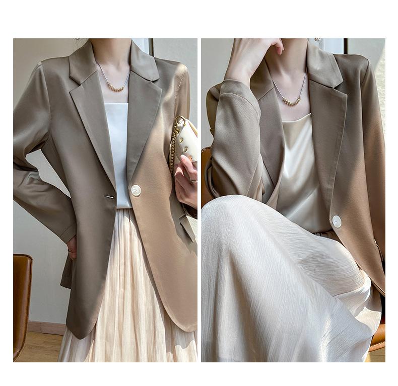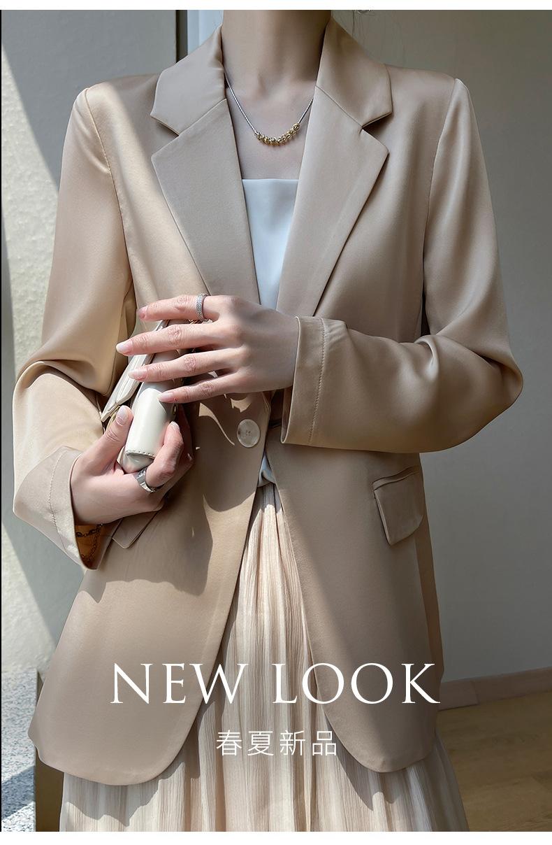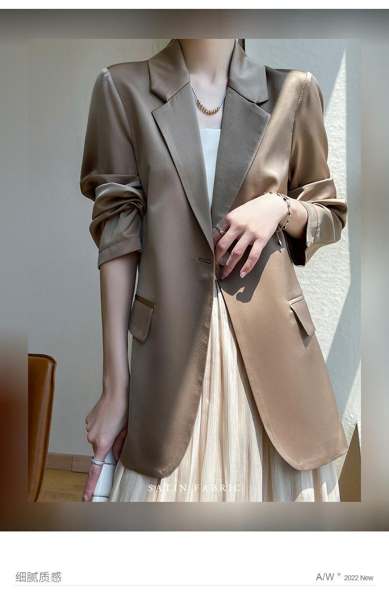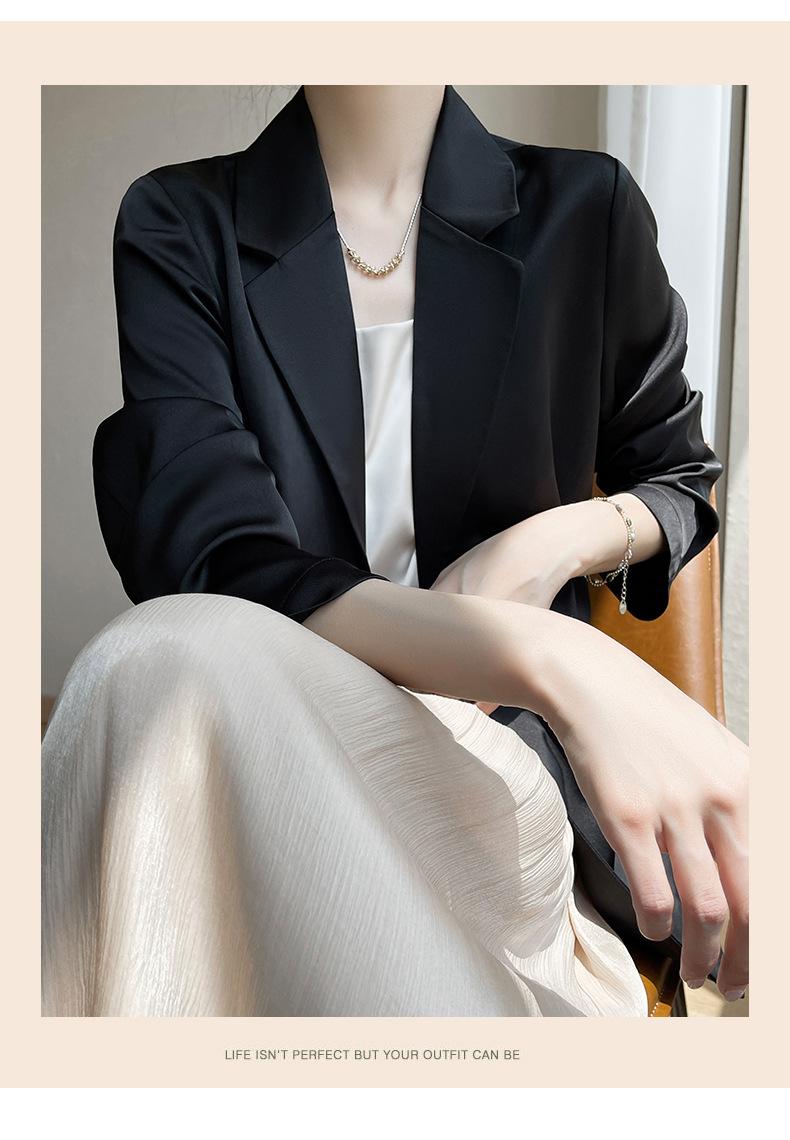 Chaqueta de traje pequeña de lujo ligera para mujer 2023 Primavera y Otoño Nuevo traje pequeño de satén versátil adelgazante de corte entallado de moda