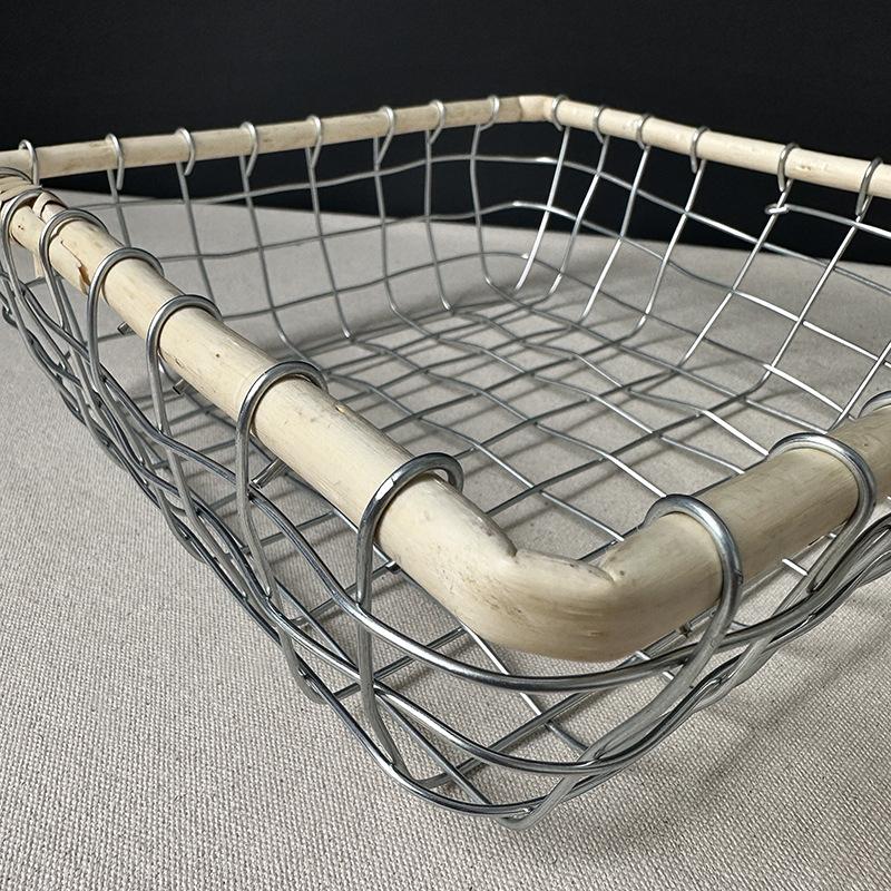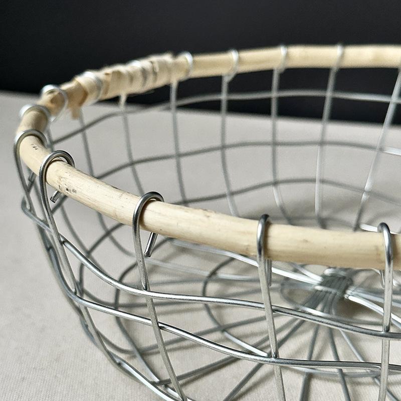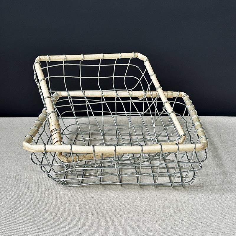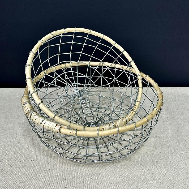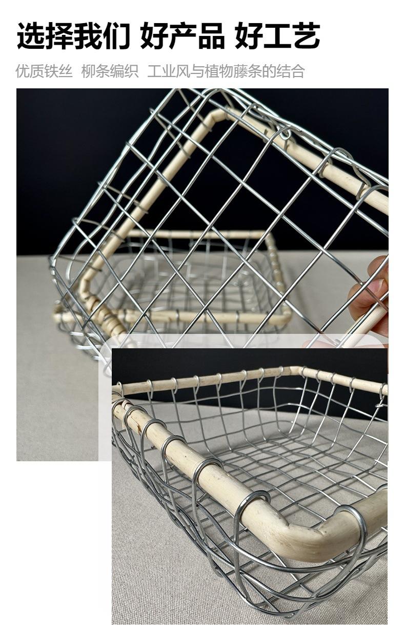 Cesta de almacenamiento de hierro de estilo nórdico, cesta de escritorio para frutas, aperitivos, pan, cesta tejida de alambre hecha a mano.