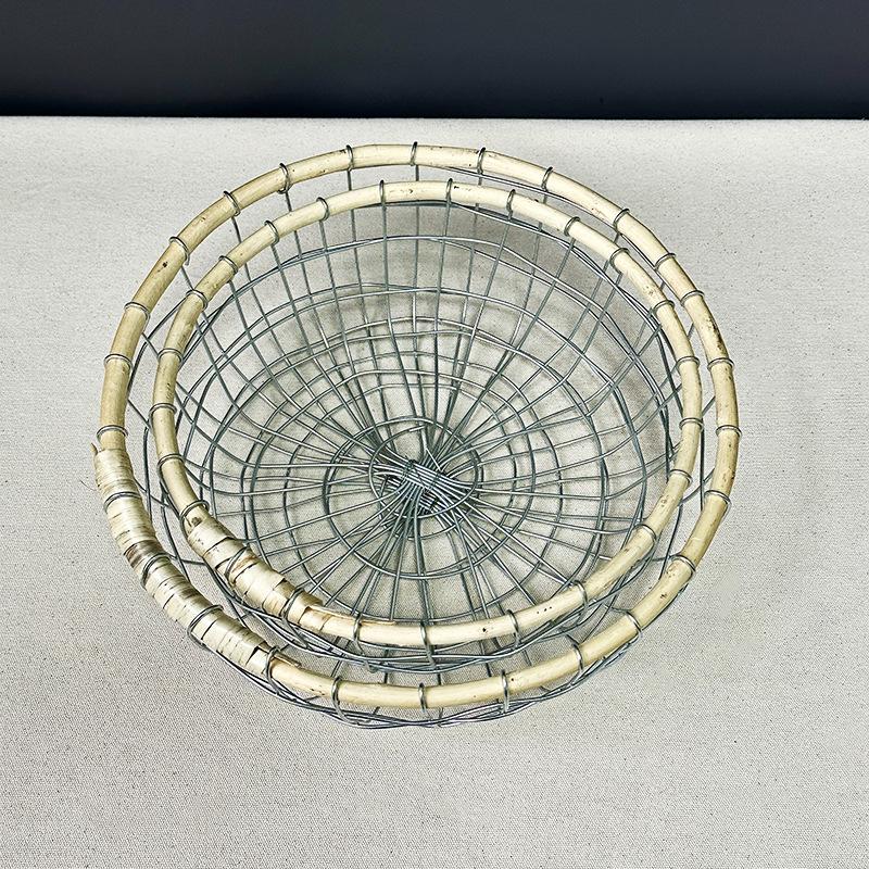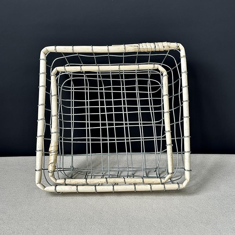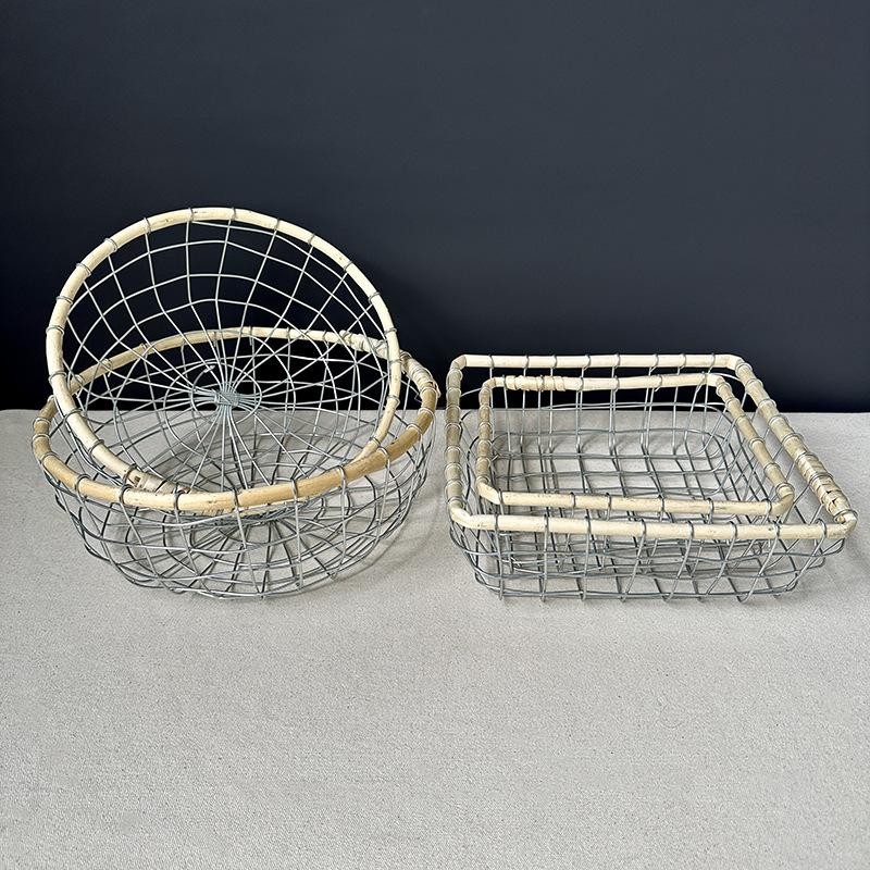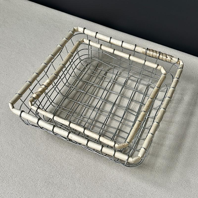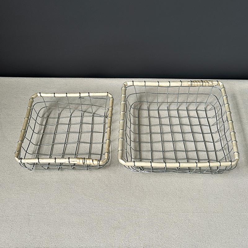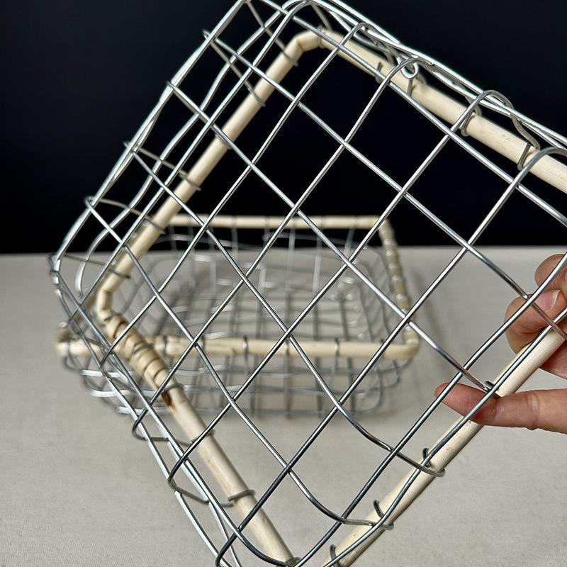 Cesta de almacenamiento de hierro de estilo nórdico, cesta de escritorio para frutas, aperitivos, pan, cesta tejida de alambre hecha a mano.