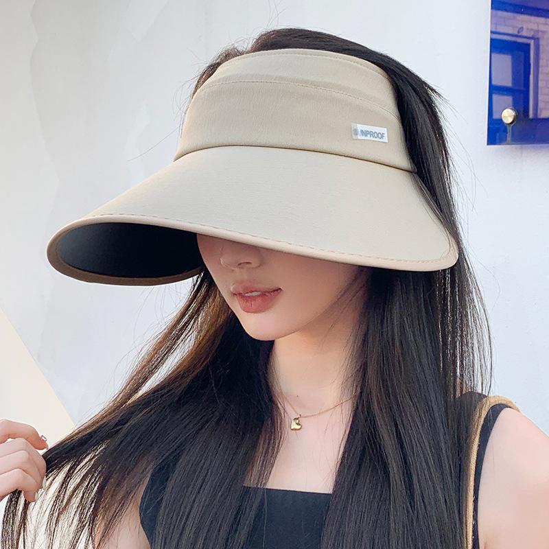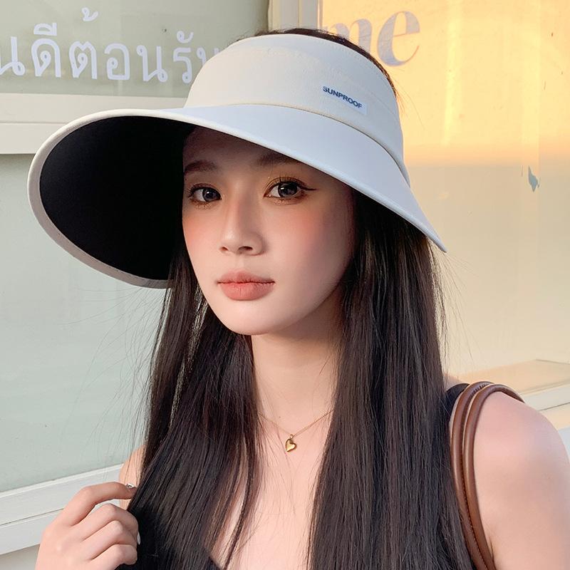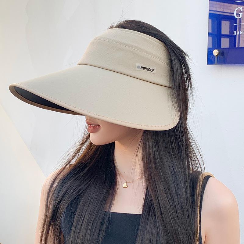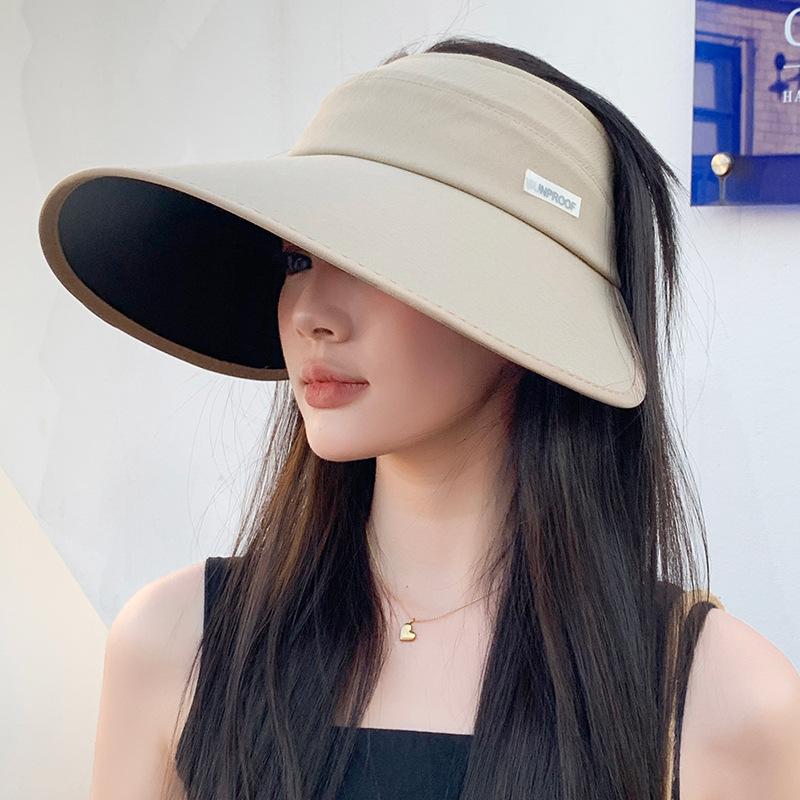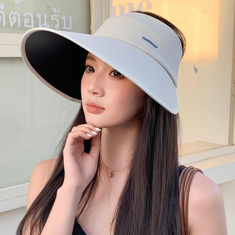 Sombrero de protección solar de goma negra para mujer, sombrero de pescador de ala grande versátil para exteriores, primavera y verano, sombrero para el sol plegable con parte superior vacía.