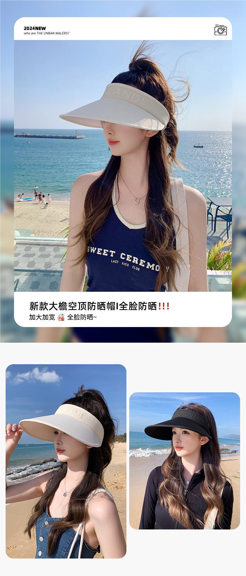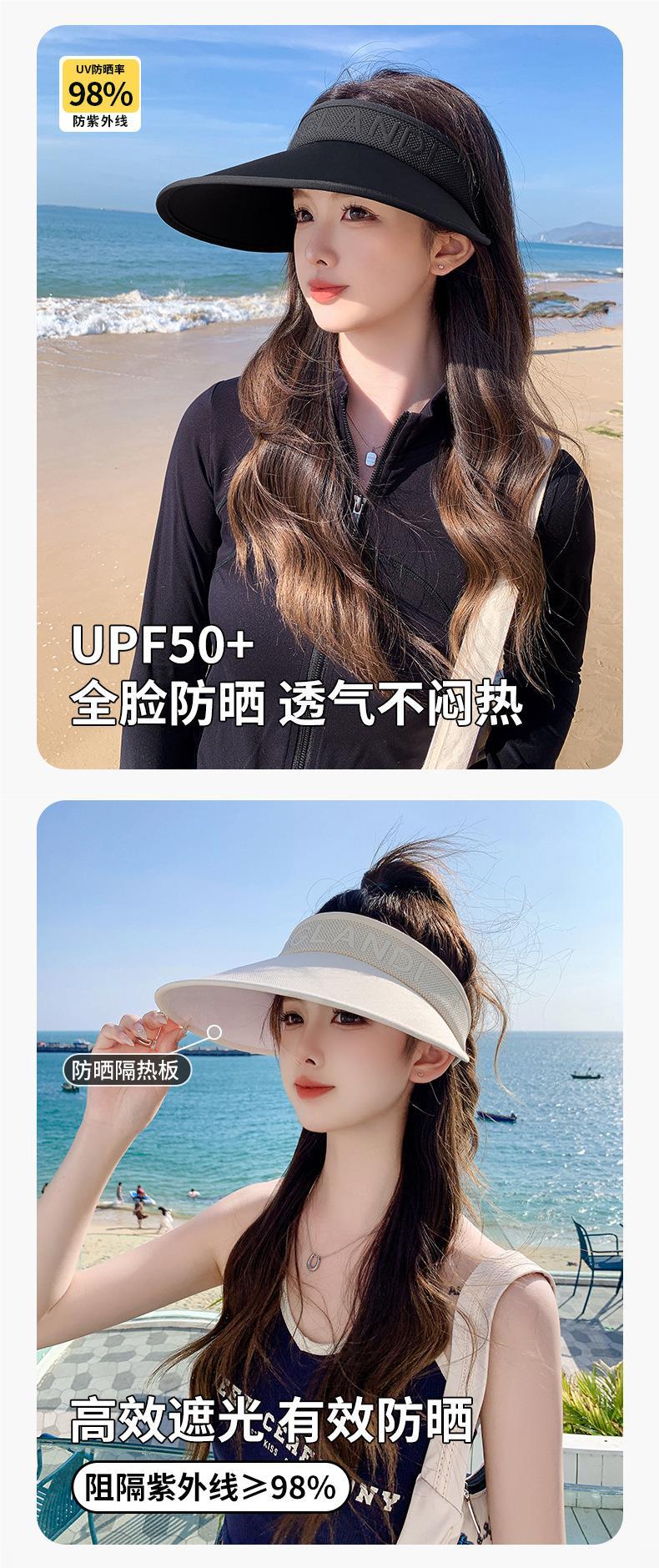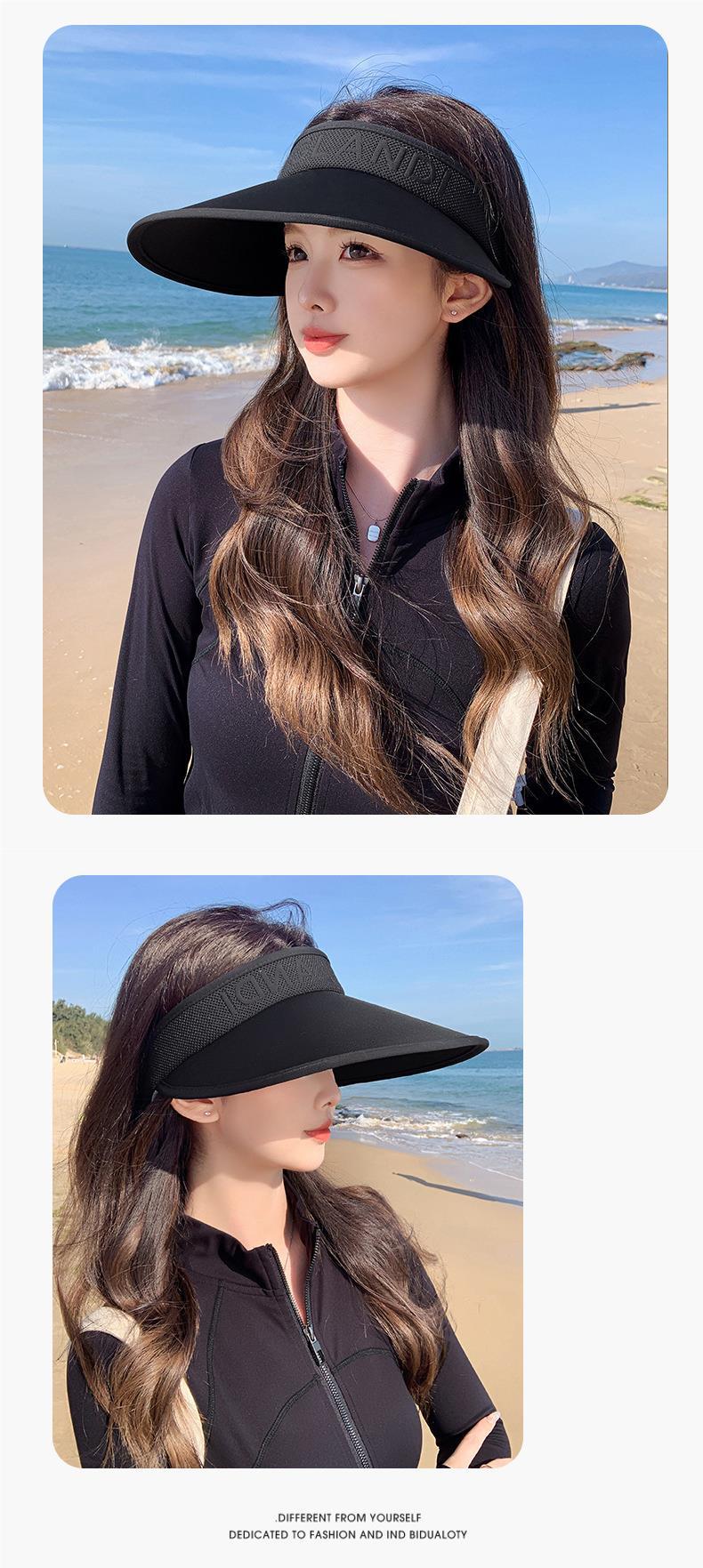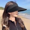 Sombrero de ala ancha de goma negra para mujer, protección UV, tapa vacía, para el sol, plegable, para verano