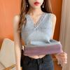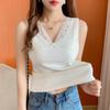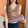 Chaleco Cálido para Mujer Otoño e Invierno Forrado de Felpa Engrosado Tirantes Integrados Felpa Cálida Top para Mujer Cuello en V Hombro Ancho Camiseta Interior Base