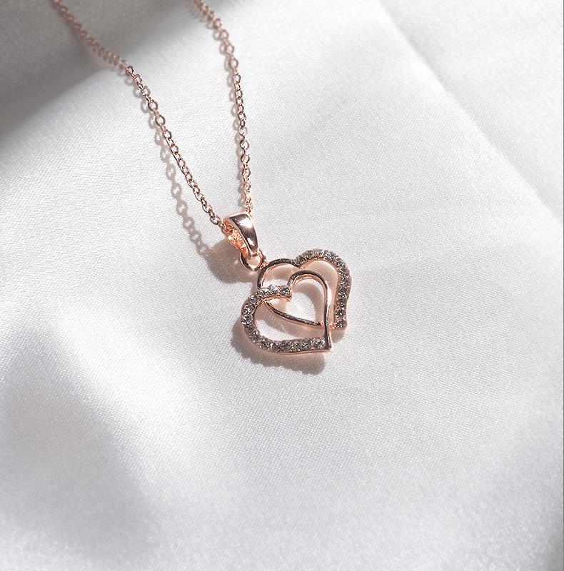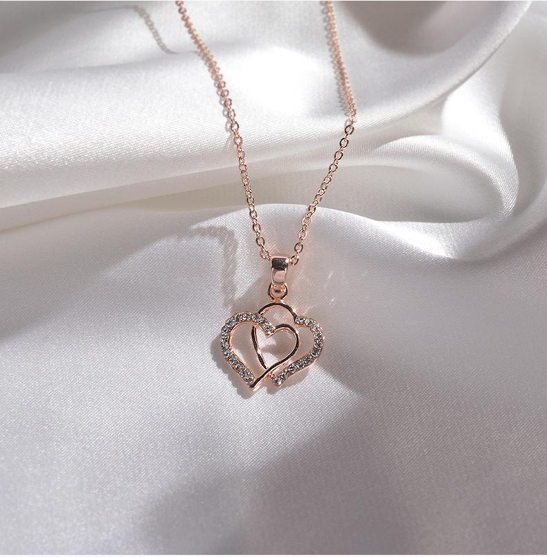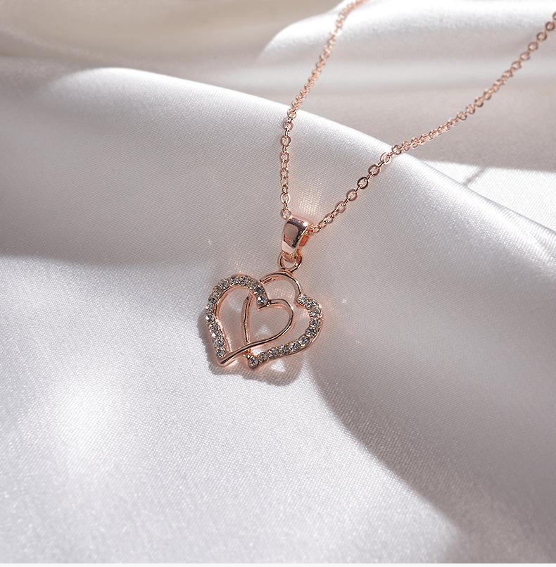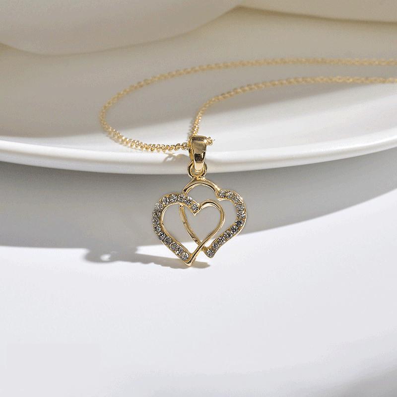 Collar con colgante de corazón de dos gatos de ópalo azul y blanco de Wish AliExpress, bonito collar hueco para mujer. |