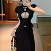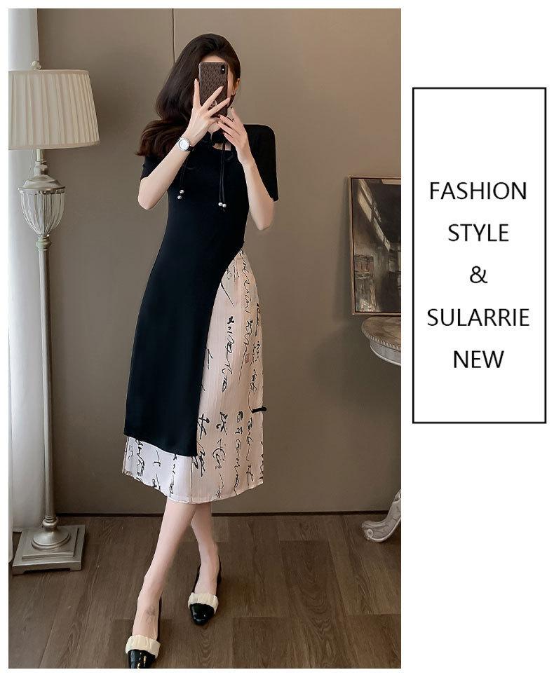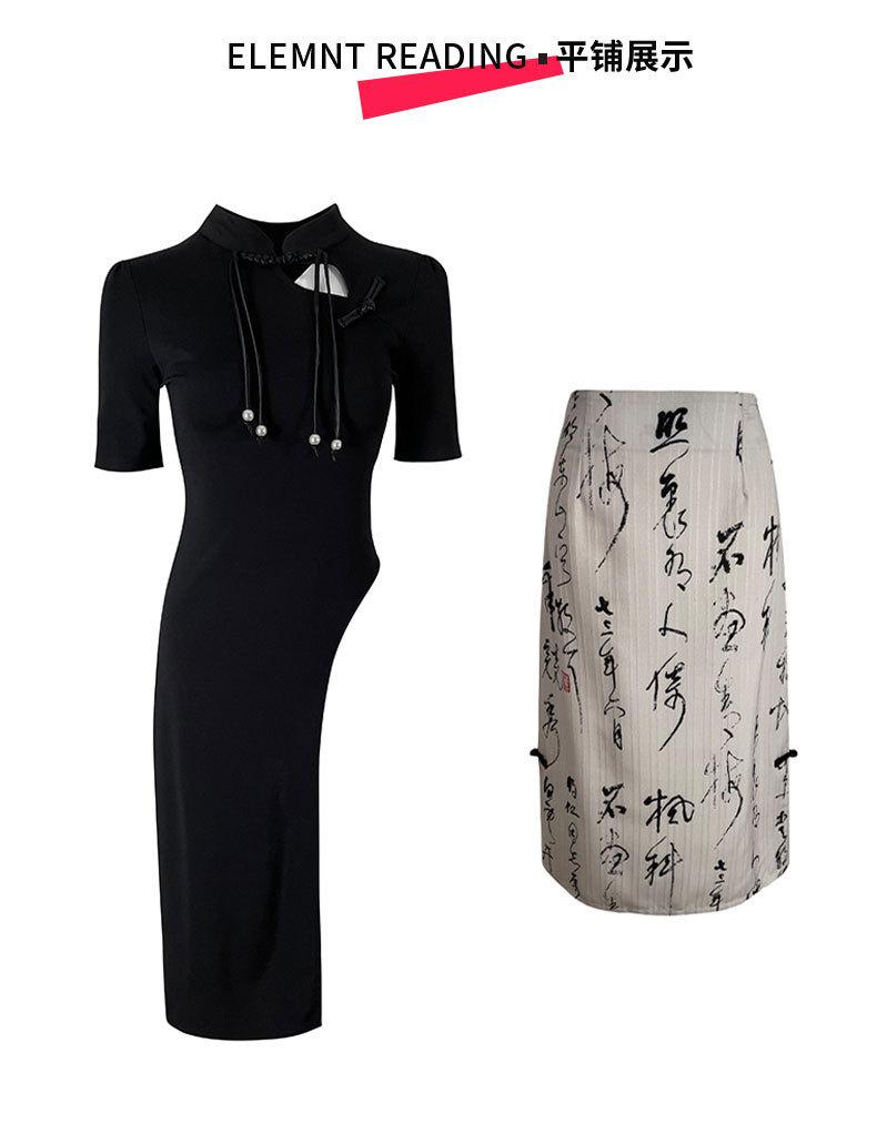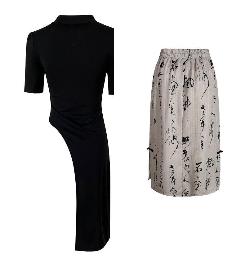 Traje de moda de estilo nacional chino para mujer, verano 2024, nuevo conjunto de dos piezas de falda de manga corta irregular de temperamento de alta gama