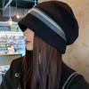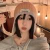 Gorro femenino de otoño e invierno de lana de color contrastante que combina con todo, gorro femenino de punto cálido a prueba de frío con protección para las orejas, gorro pequeño con cara de estudiante